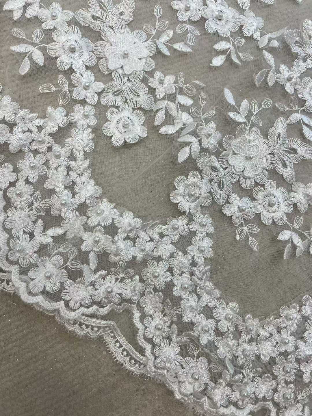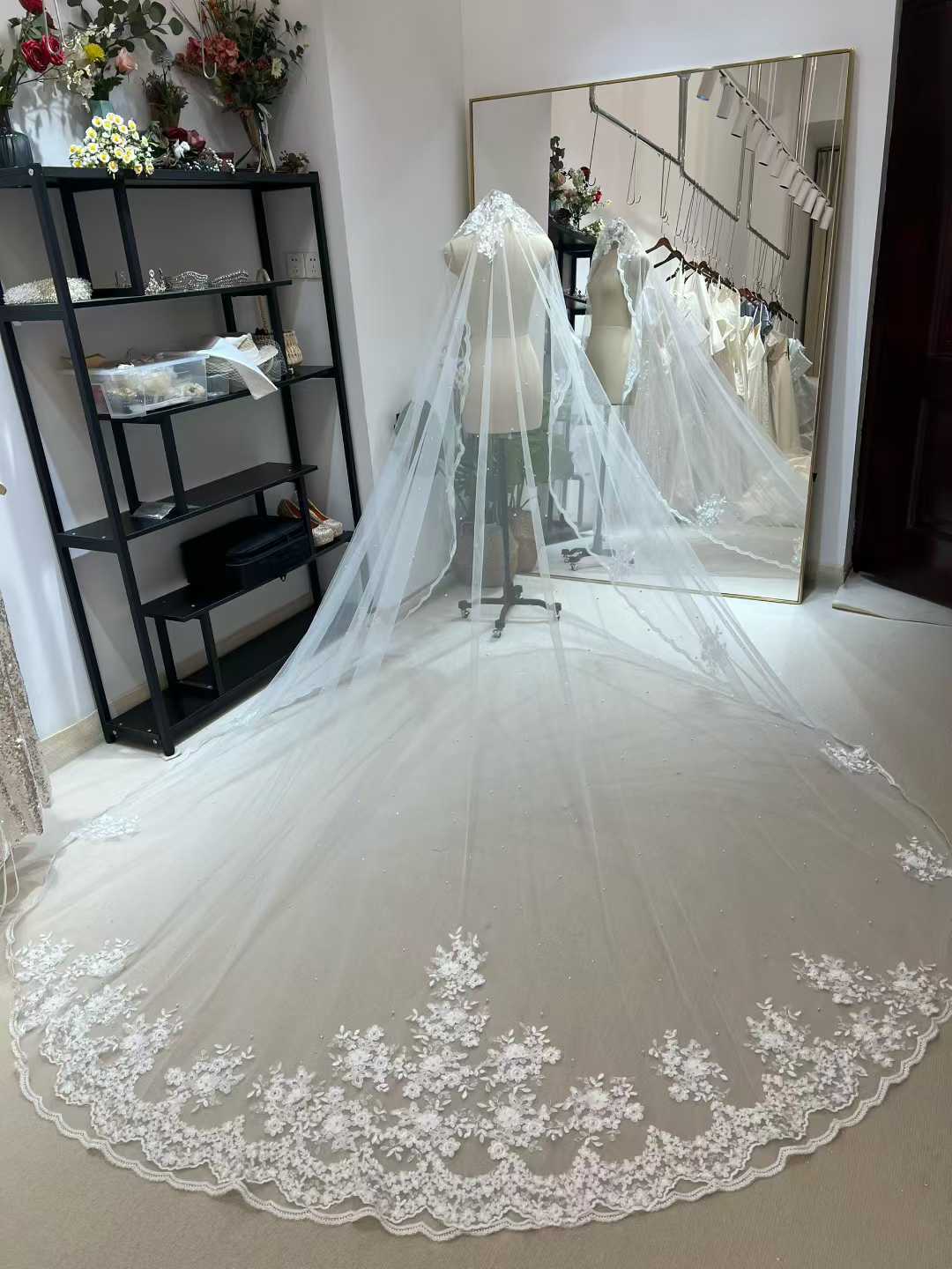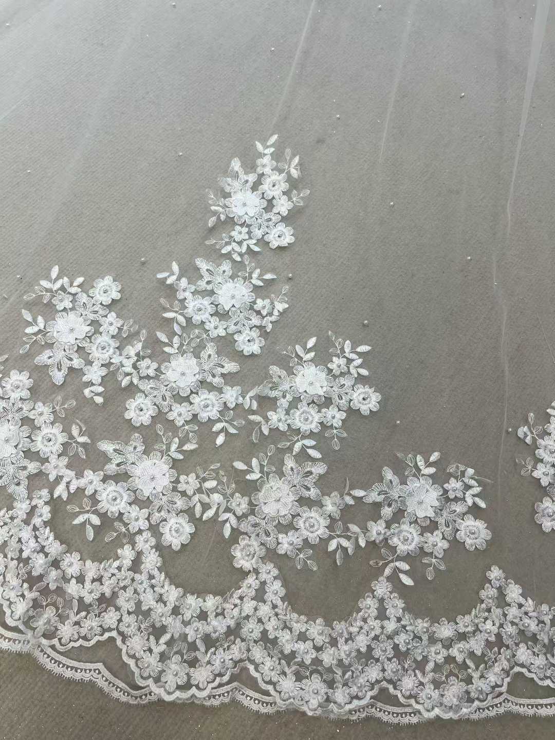 ロングベール ウェディングドレス ソフトチュール 3D立体レース刺繍 オフホワイト 結婚式