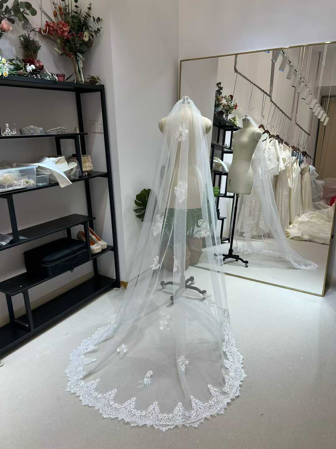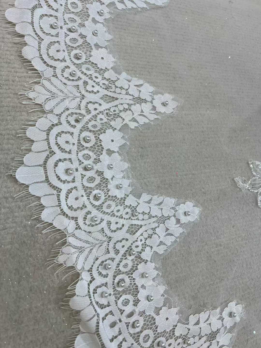 ミドルベール ウェディングドレス 魅惑の花レース ソフトチュール パール オフホワイト 結婚式