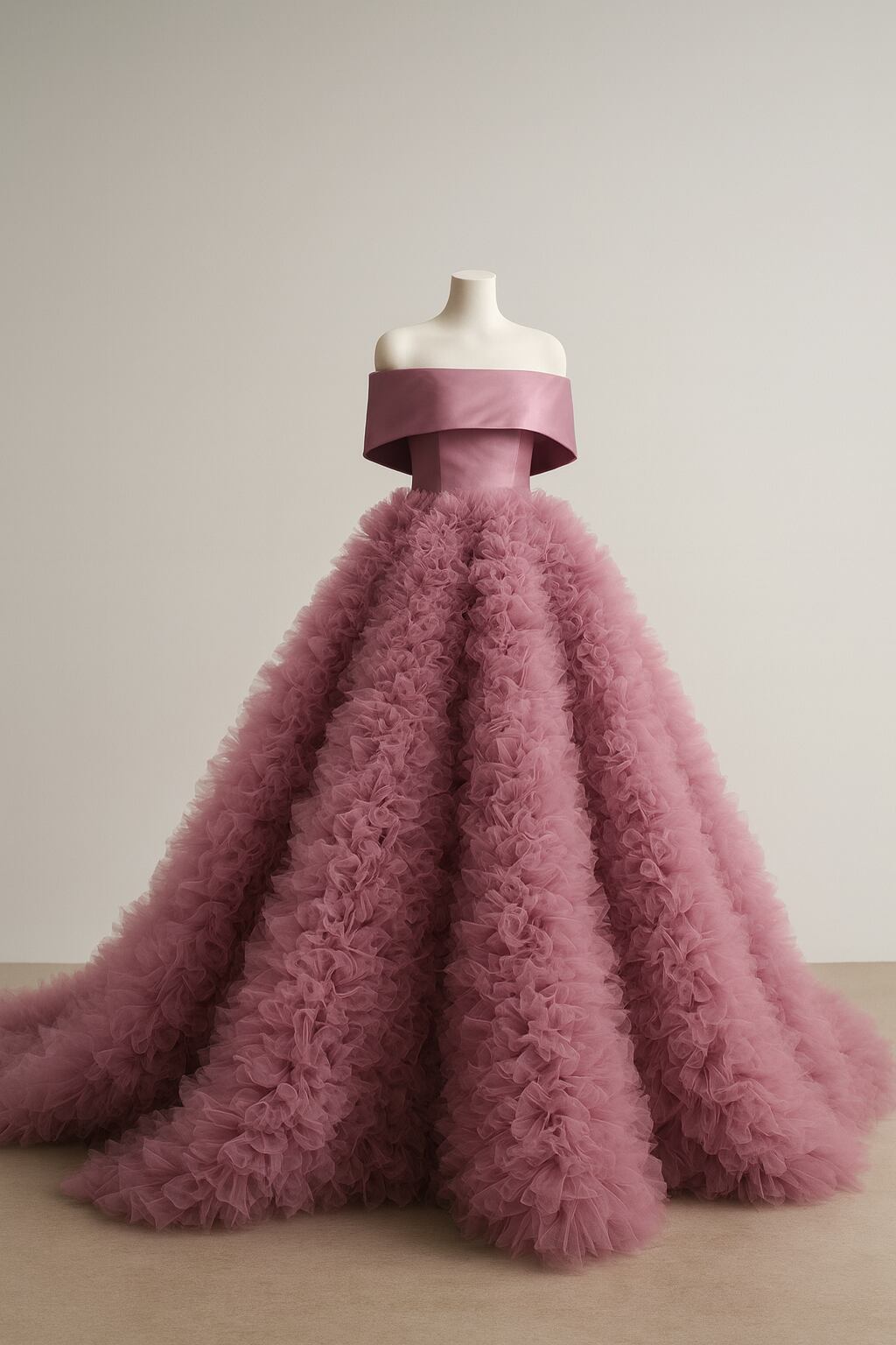 カラードレス ラベンダーピンク オフショルダー もこもこドレス 結婚式 プリンセスライン 憧れのドレス 結婚式