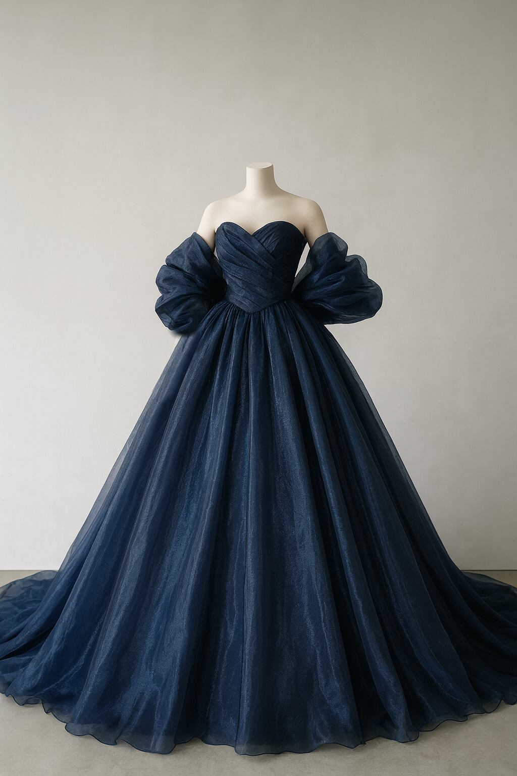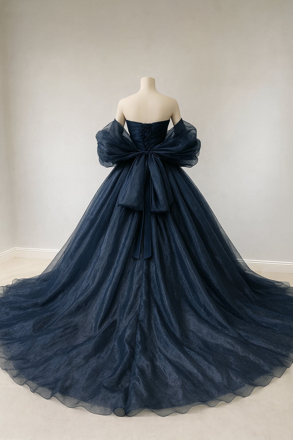 カラードレス ネイビー 上質オーガンジー ふっくら柔らかなバックリボン エレガント ブライダル クラシカル