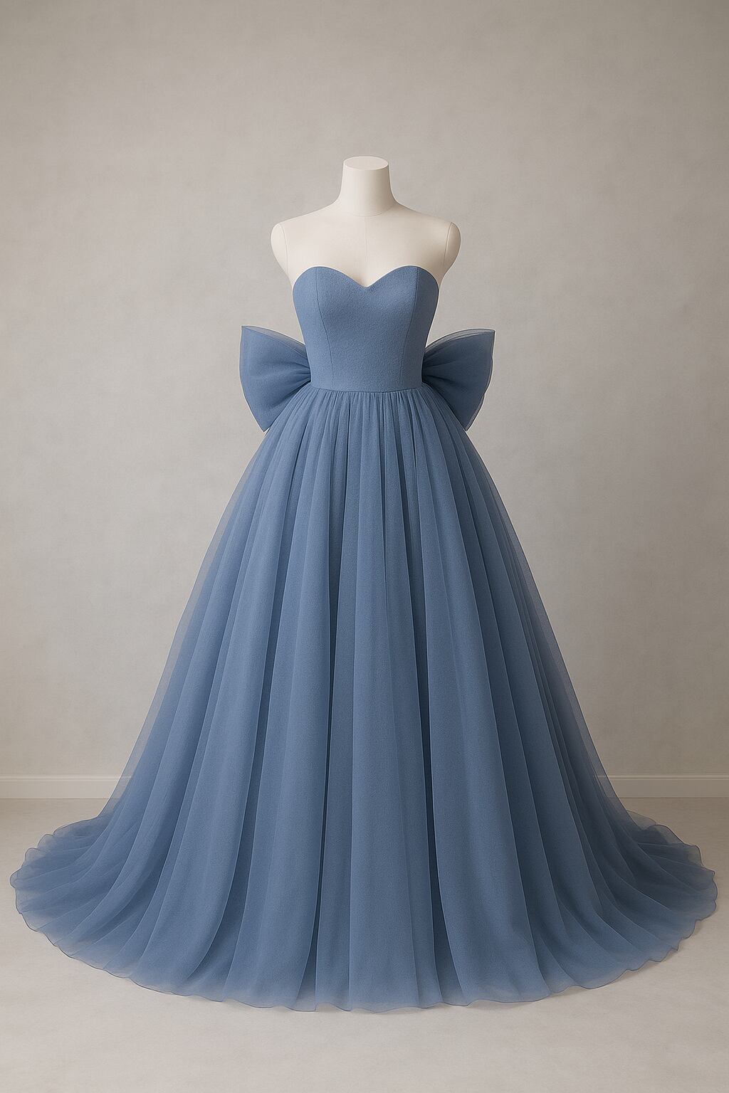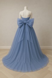カラードレス ブルーグレー ふっくら柔らかなバックリボン ビスチェドレス ファスナー 披露宴 Aライン