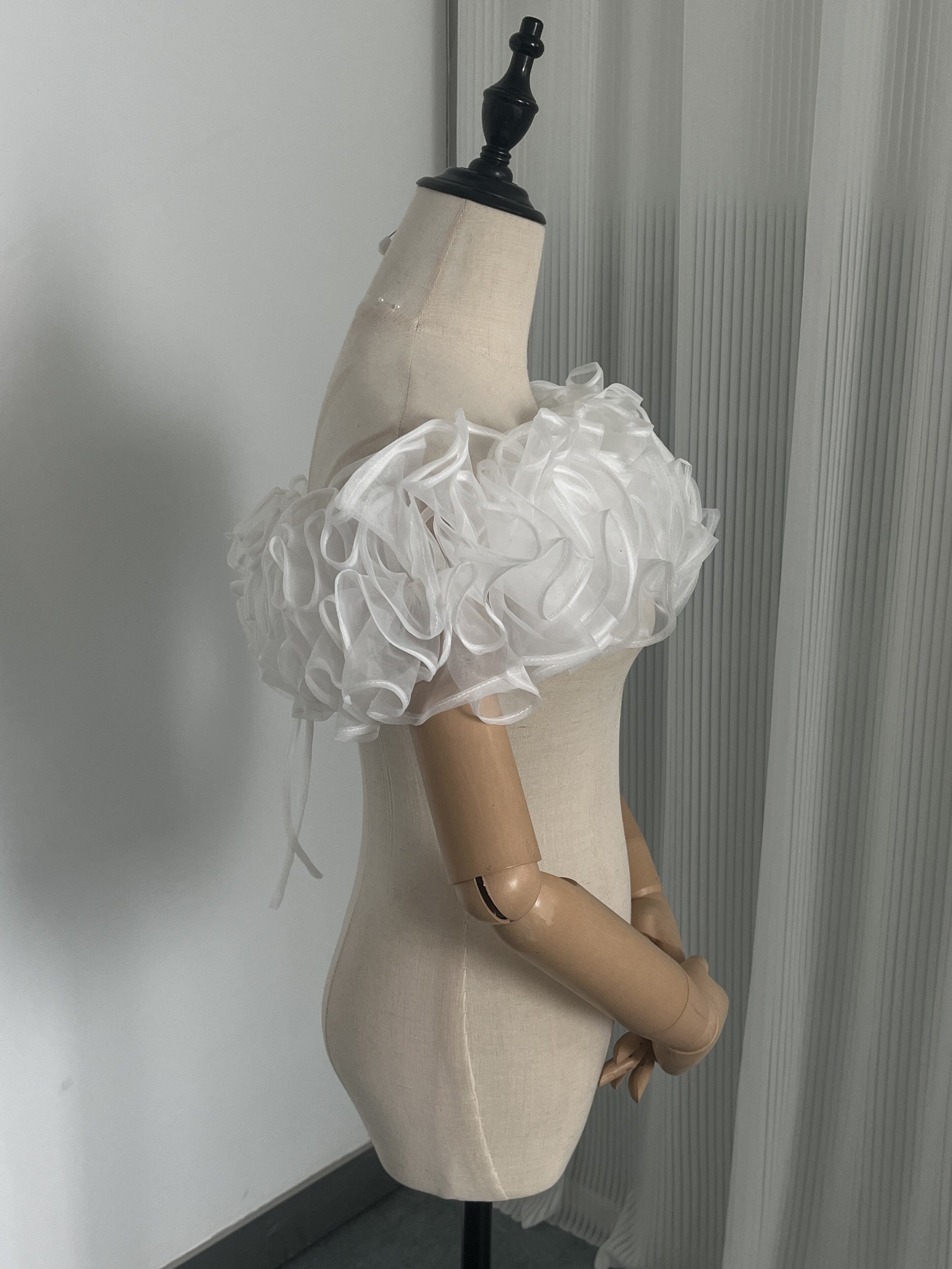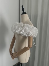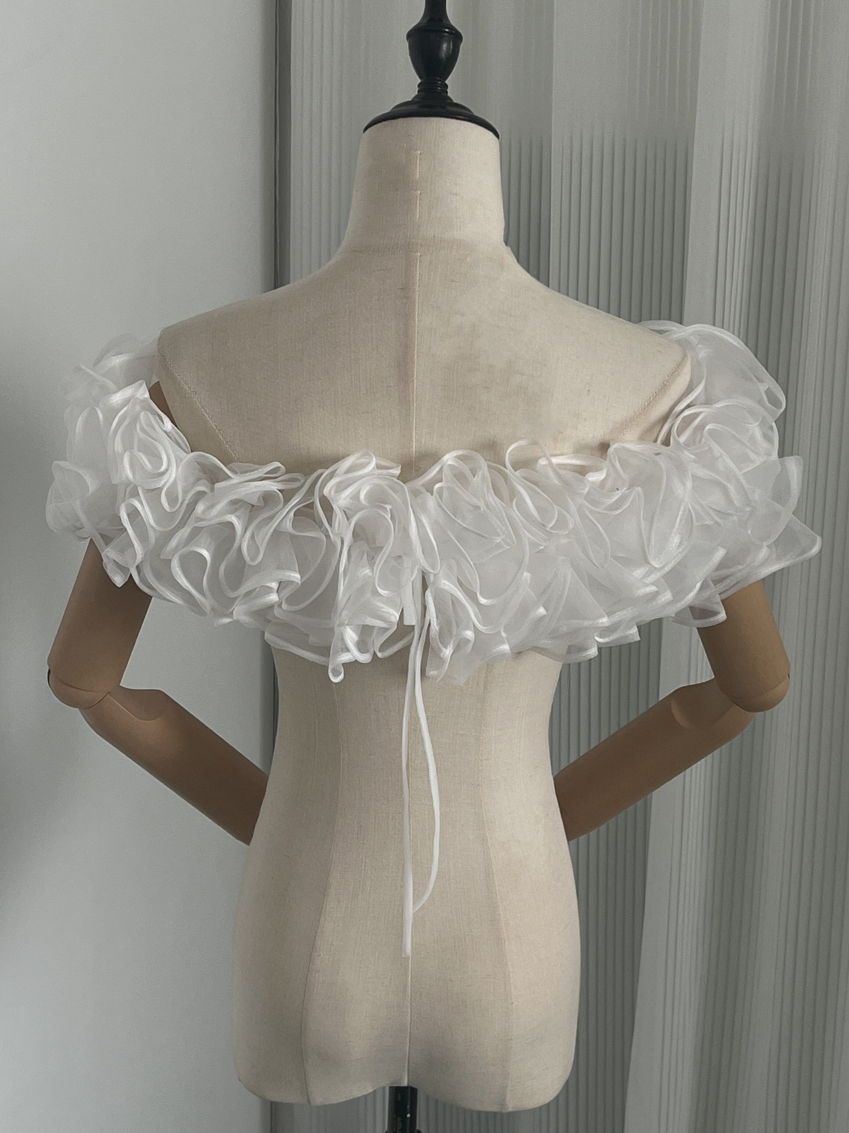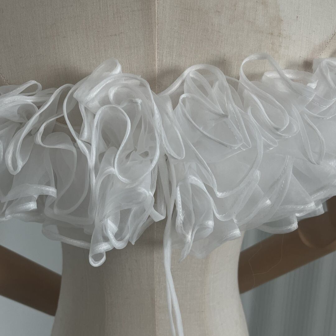 取り外しオフショルダー オーガンジー 編み上げ ラッフルフリル 花嫁/ウェディングドレス 色直し