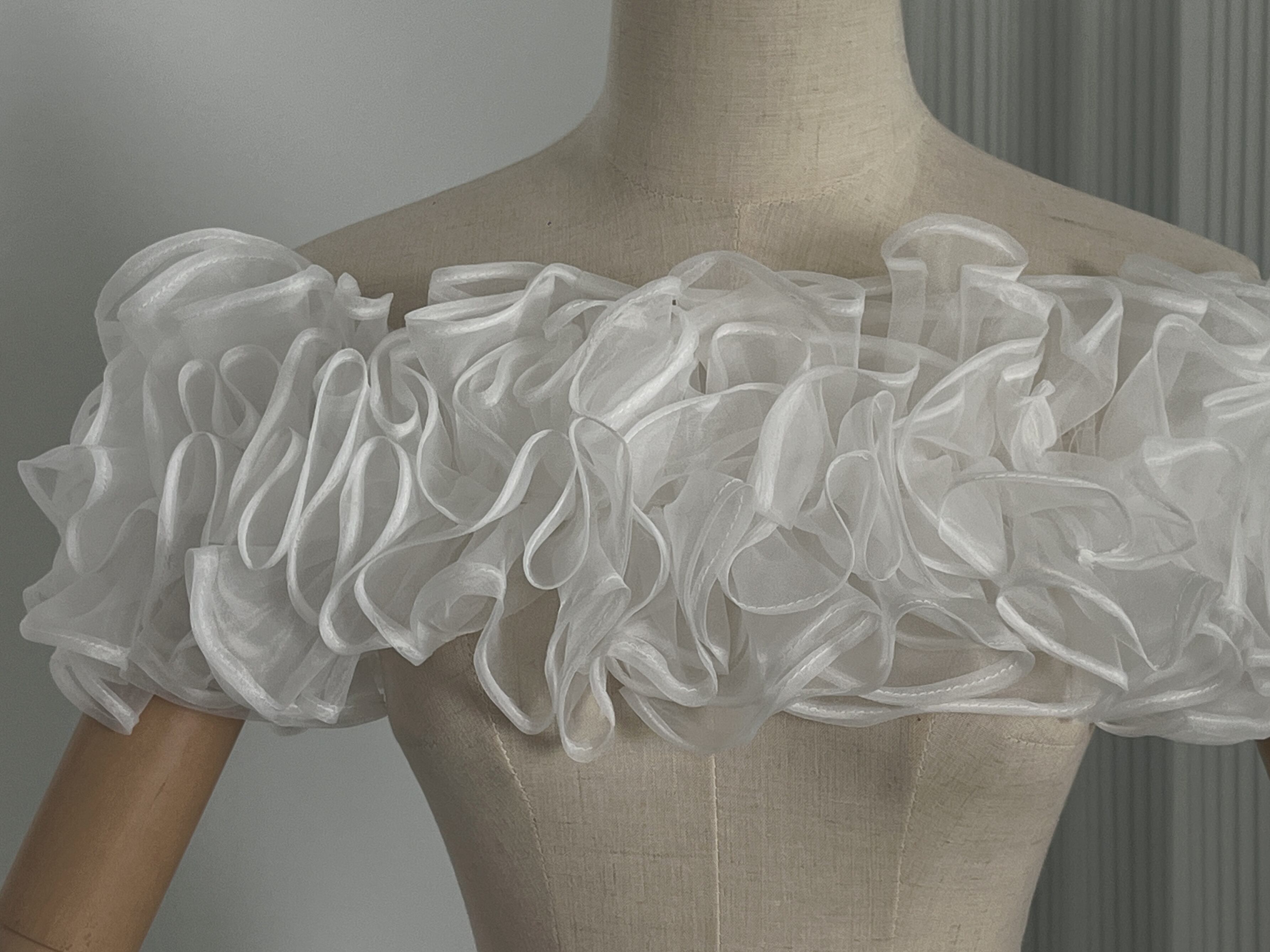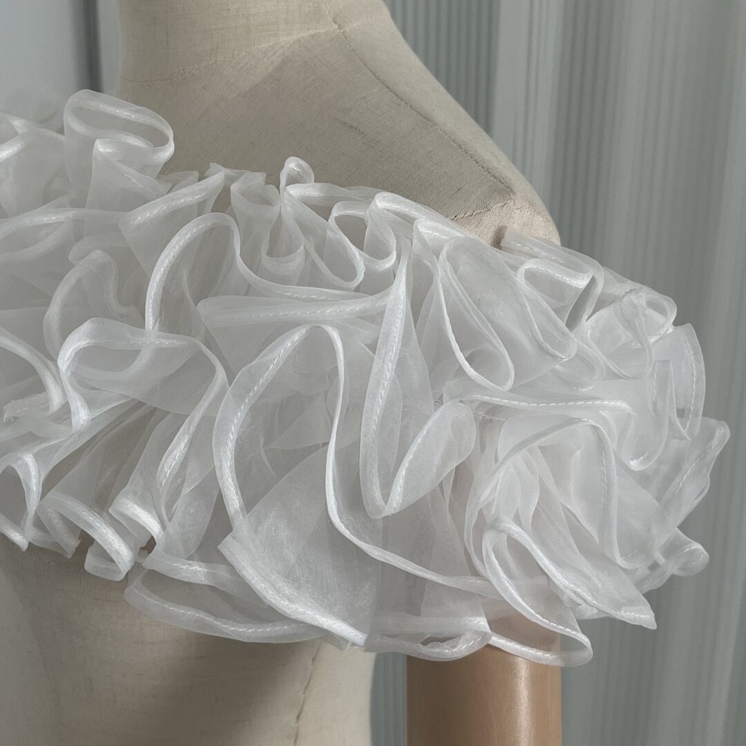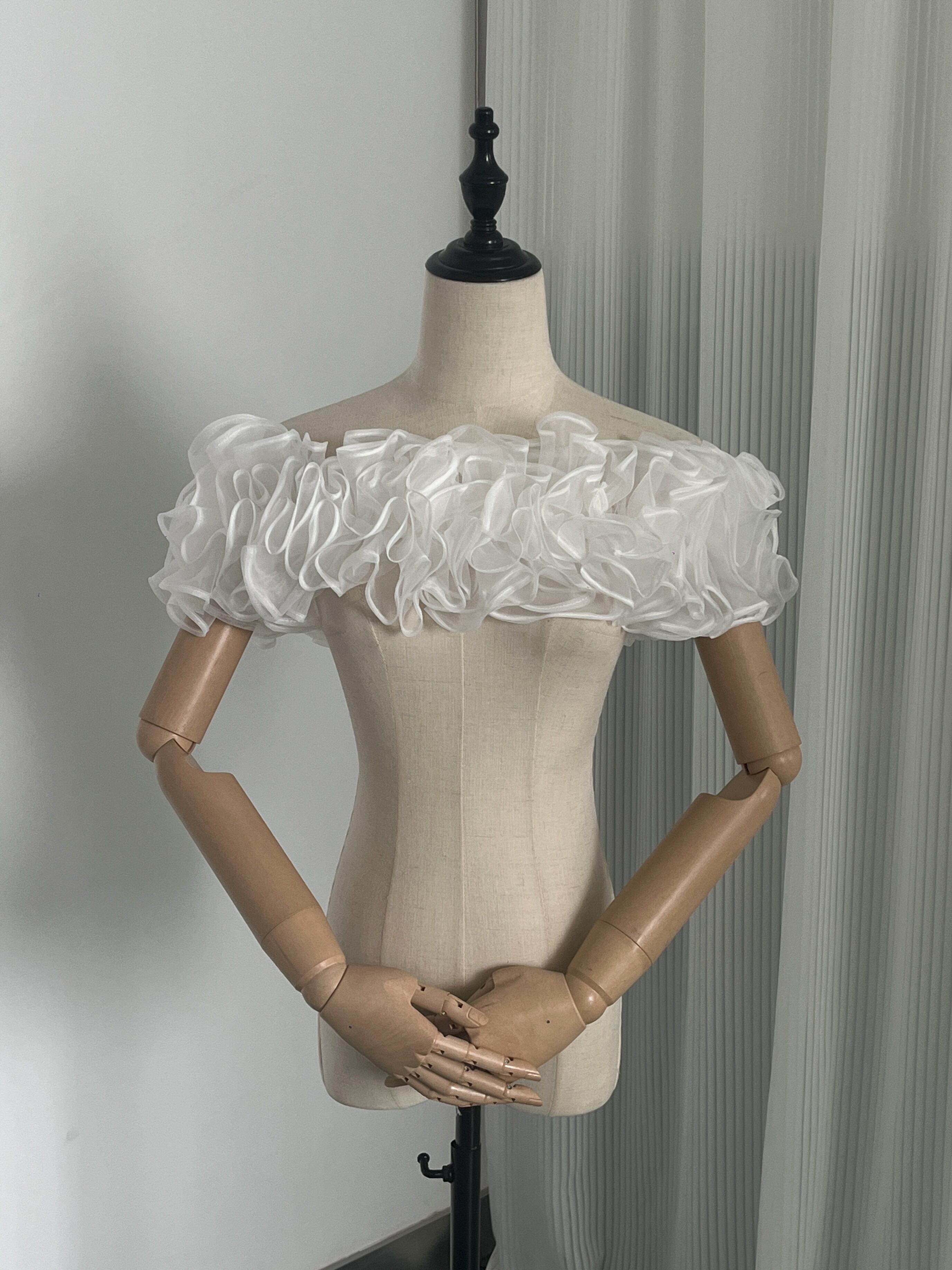 取り外しオフショルダー オーガンジー 編み上げ ラッフルフリル 花嫁/ウェディングドレス 色直し