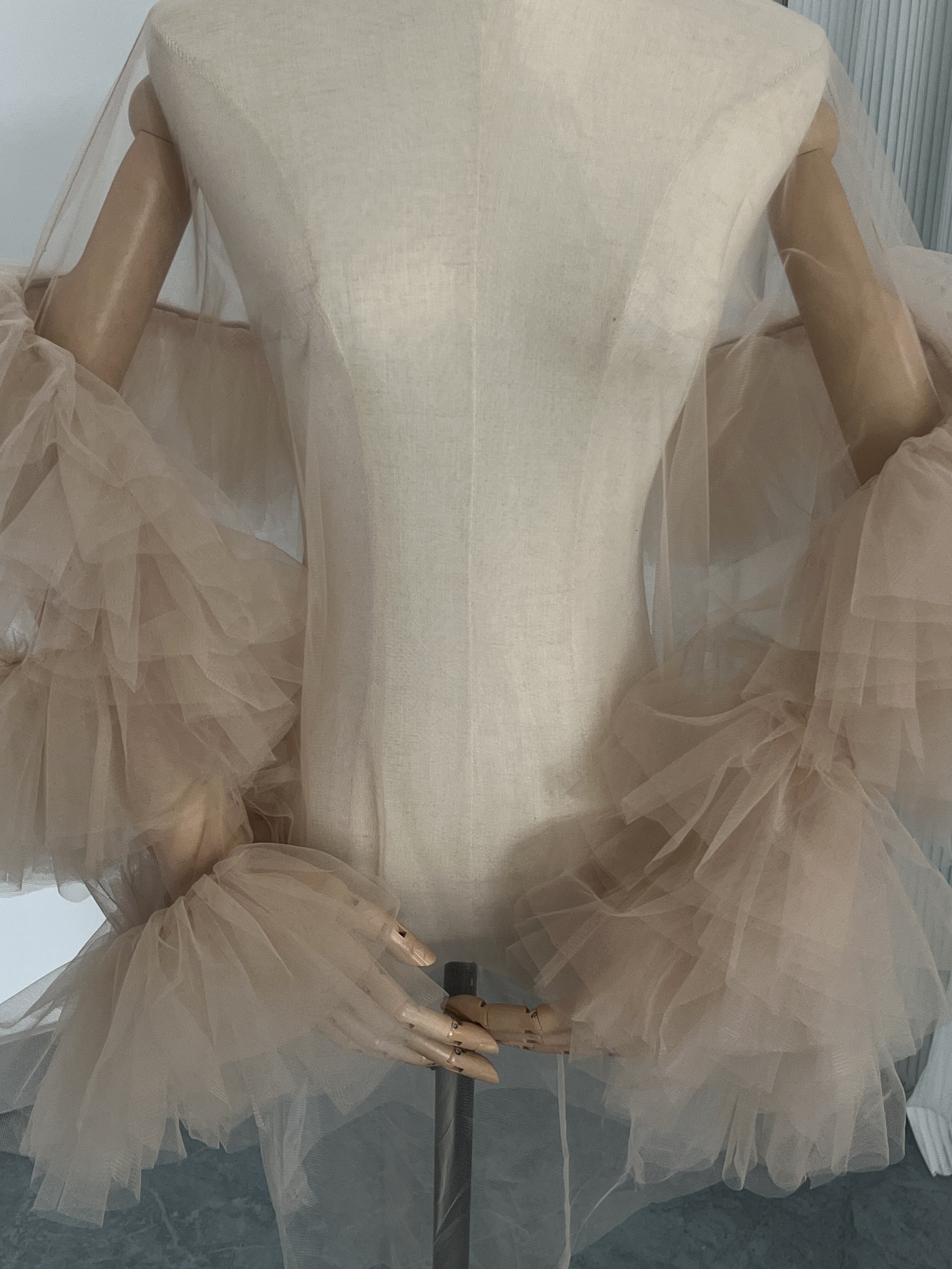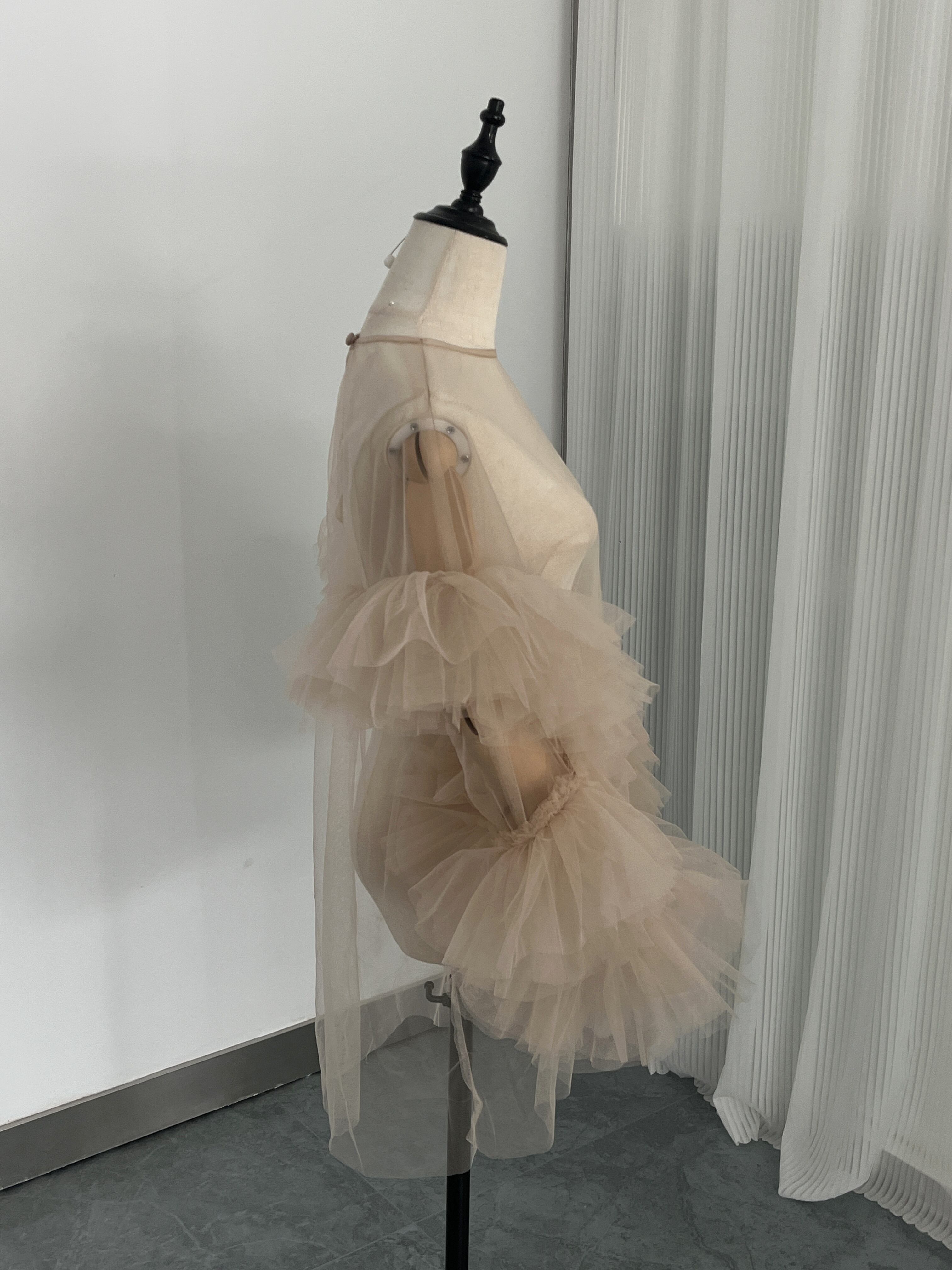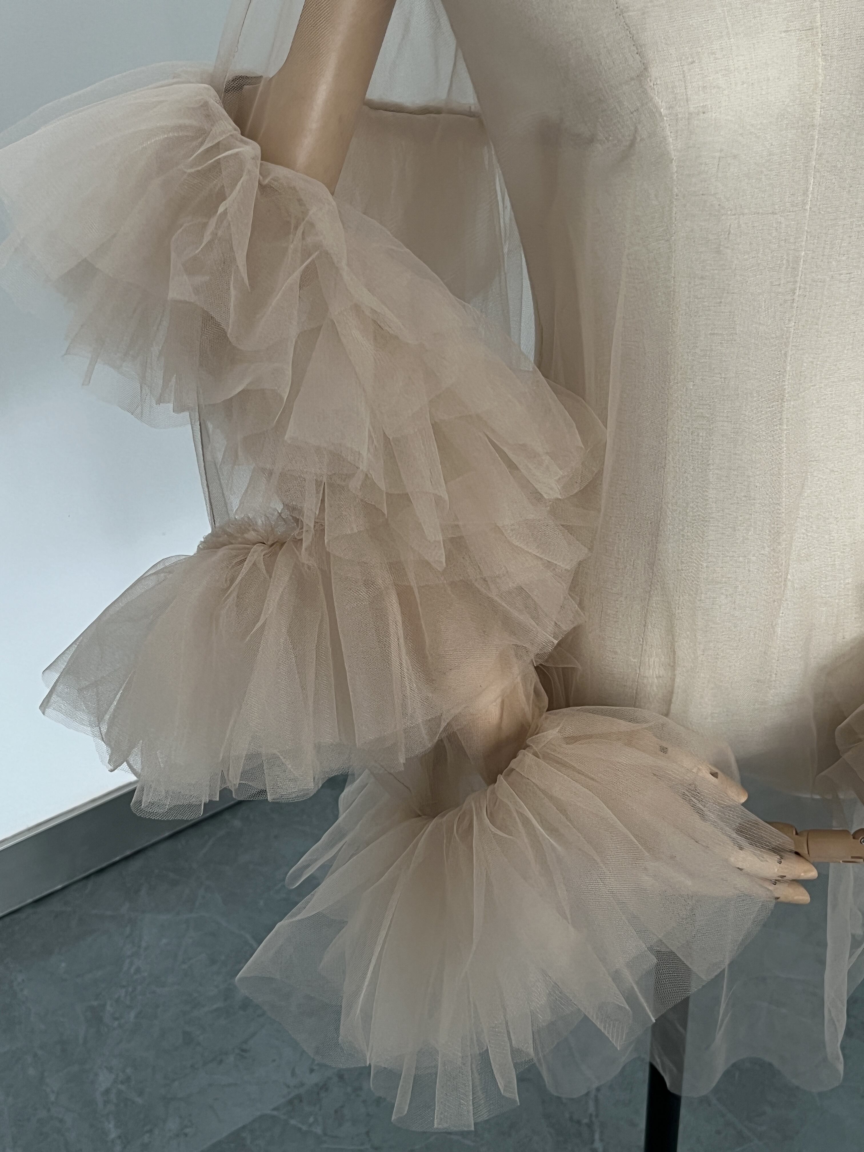 トップス ロングスリーブ ベージュ ソフトチュール ラッフルフリル 花嫁/ウェディングドレス