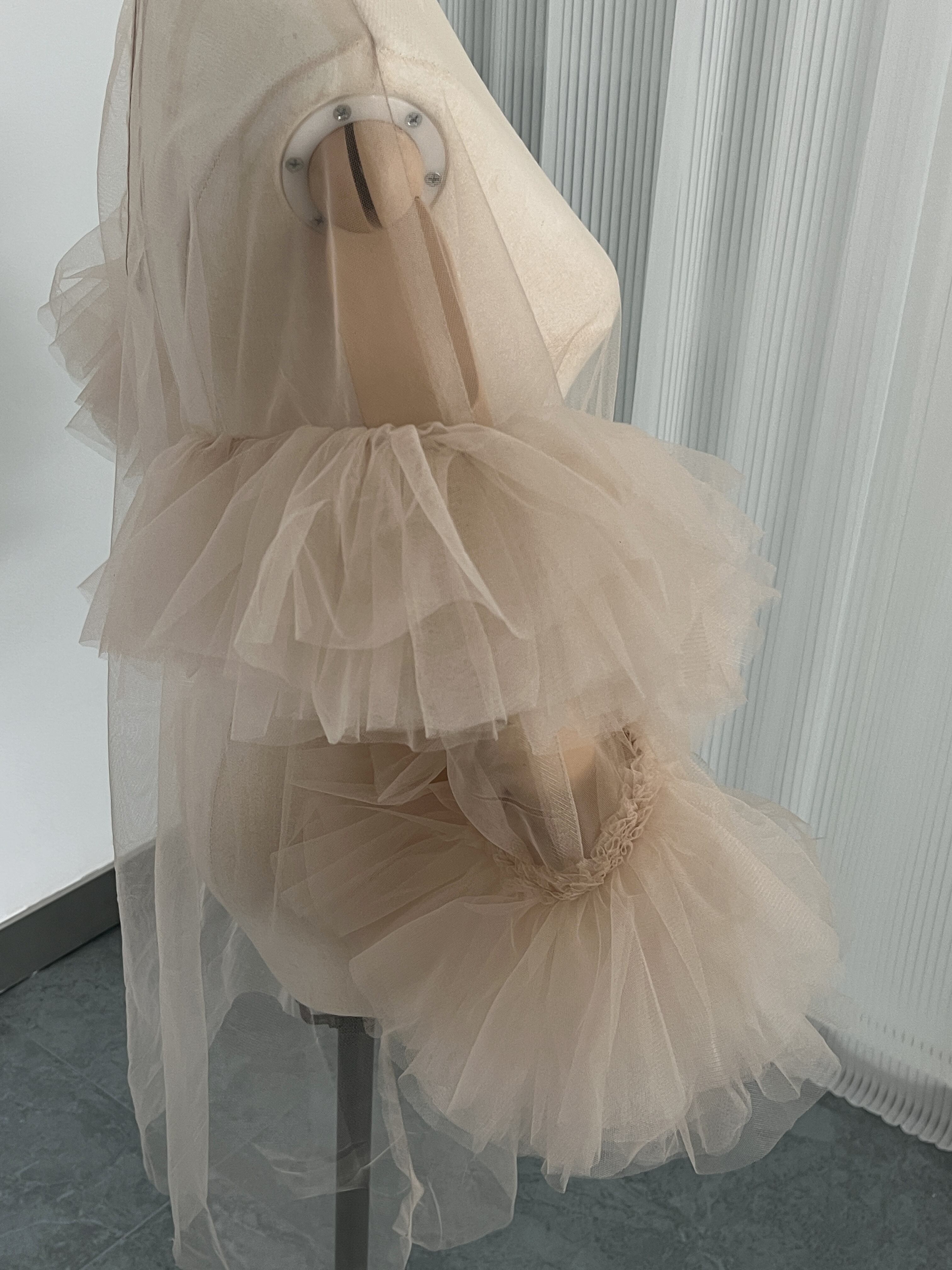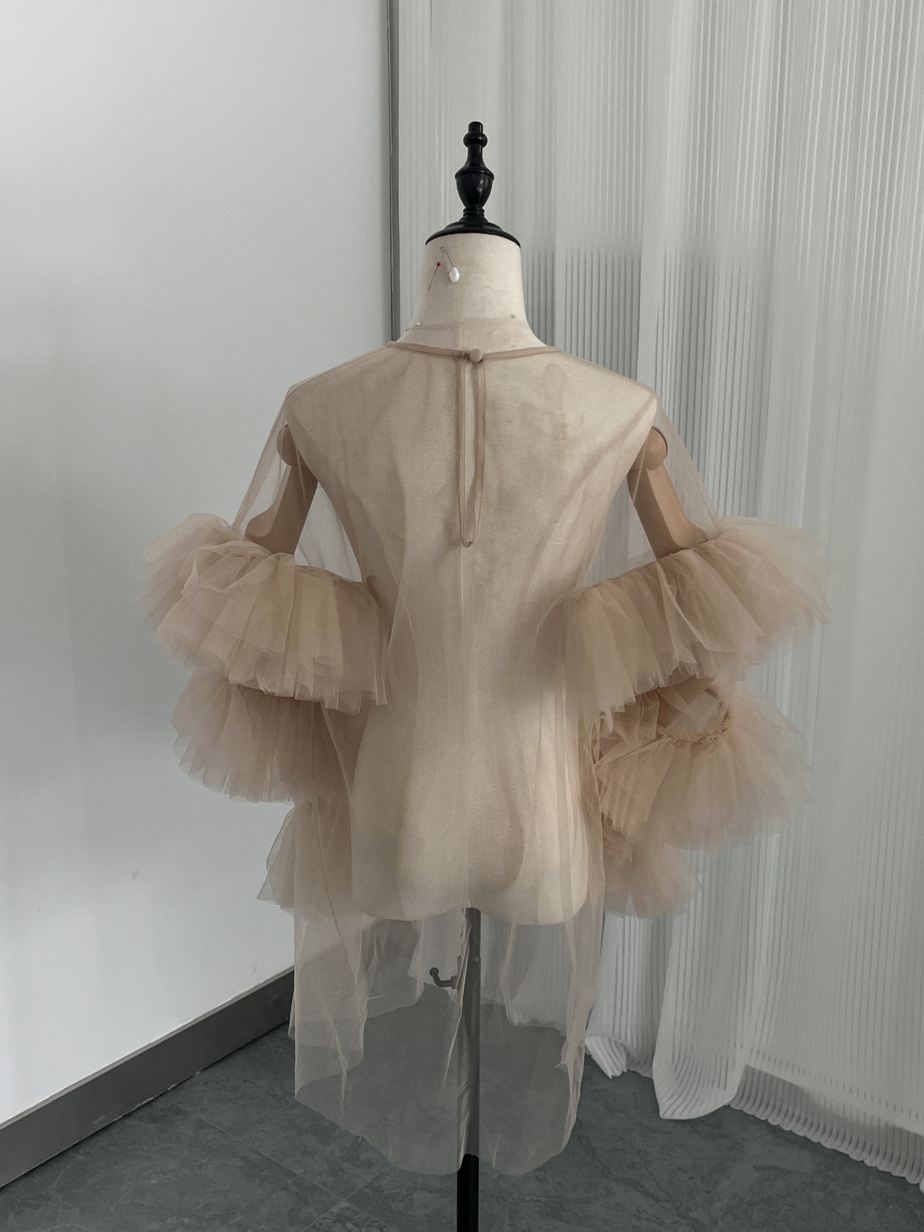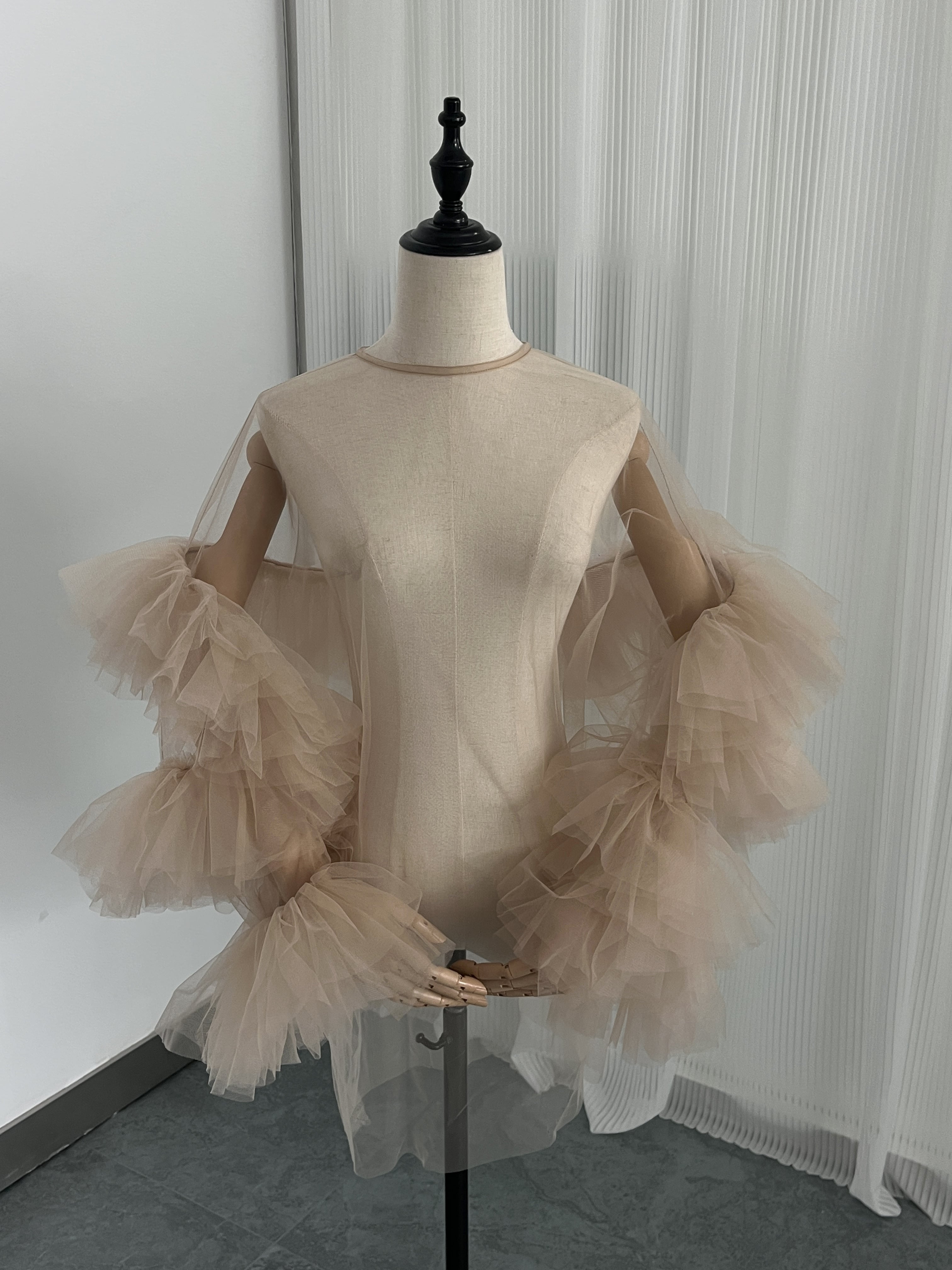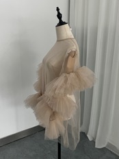 トップス ロングスリーブ ベージュ ソフトチュール ラッフルフリル 花嫁/ウェディングドレス