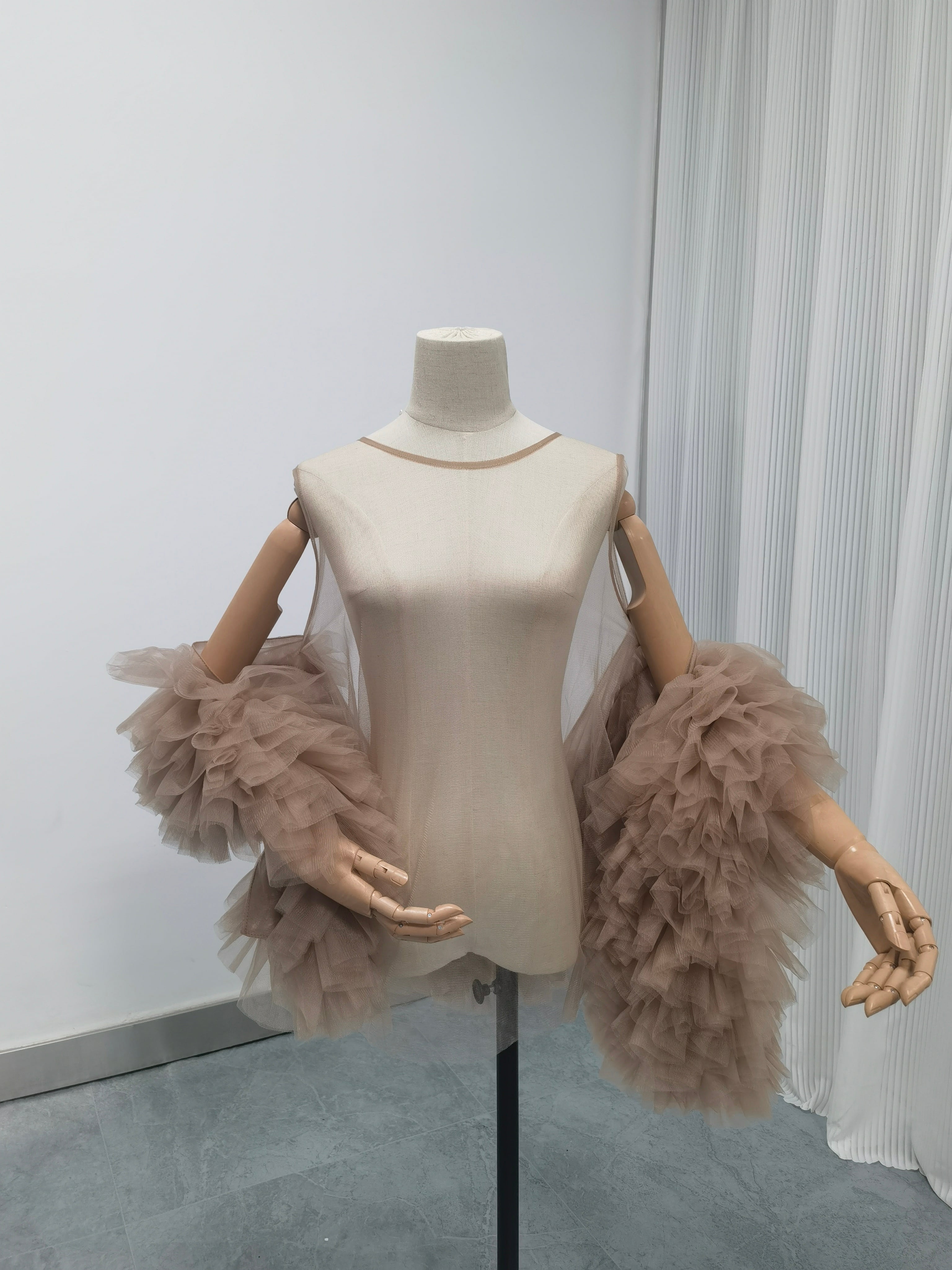 人気上昇! トップス カーキ色 ベージュボレロ ブラウン 色直し 披露宴/結婚式 ウェディングドレス