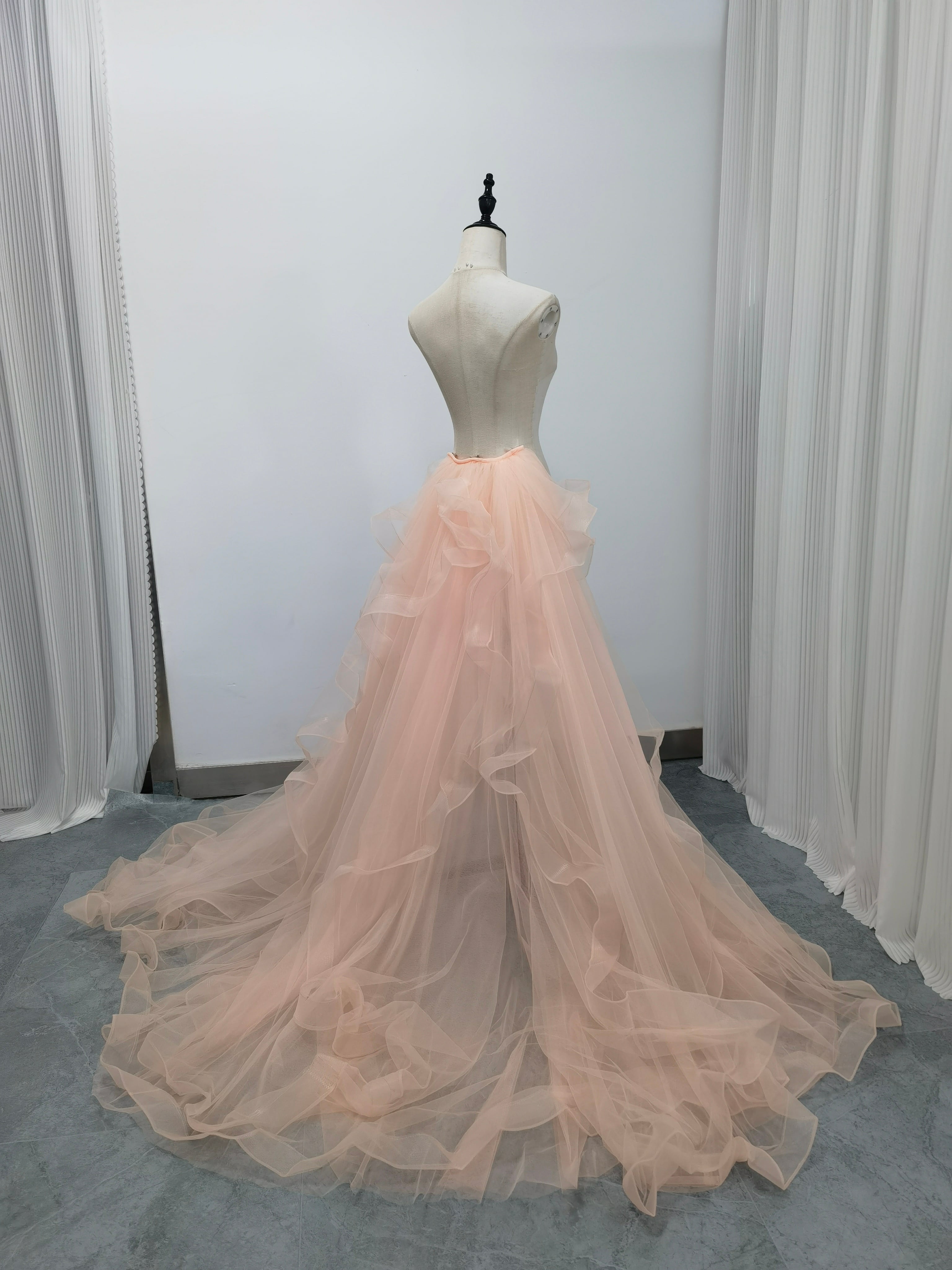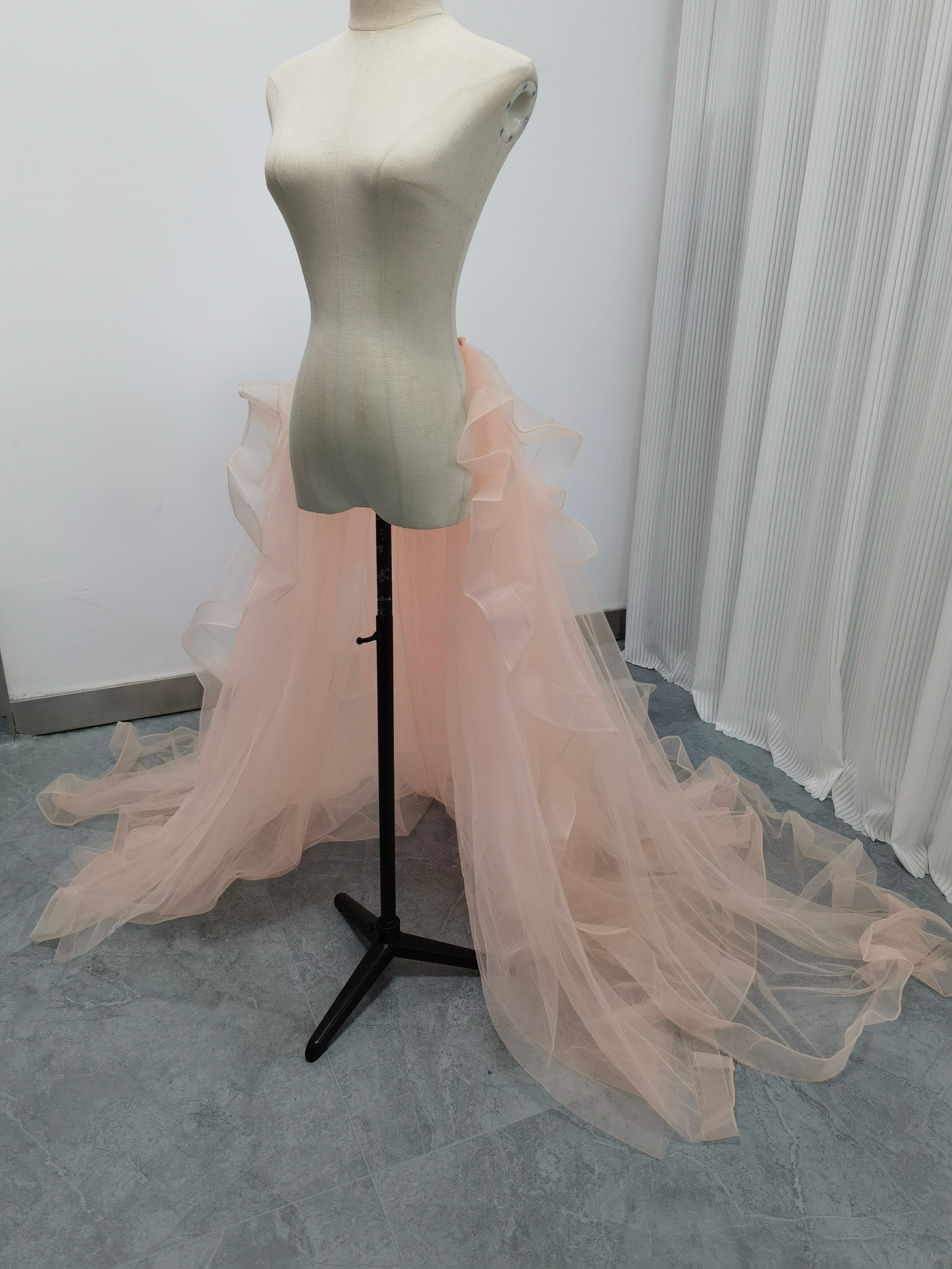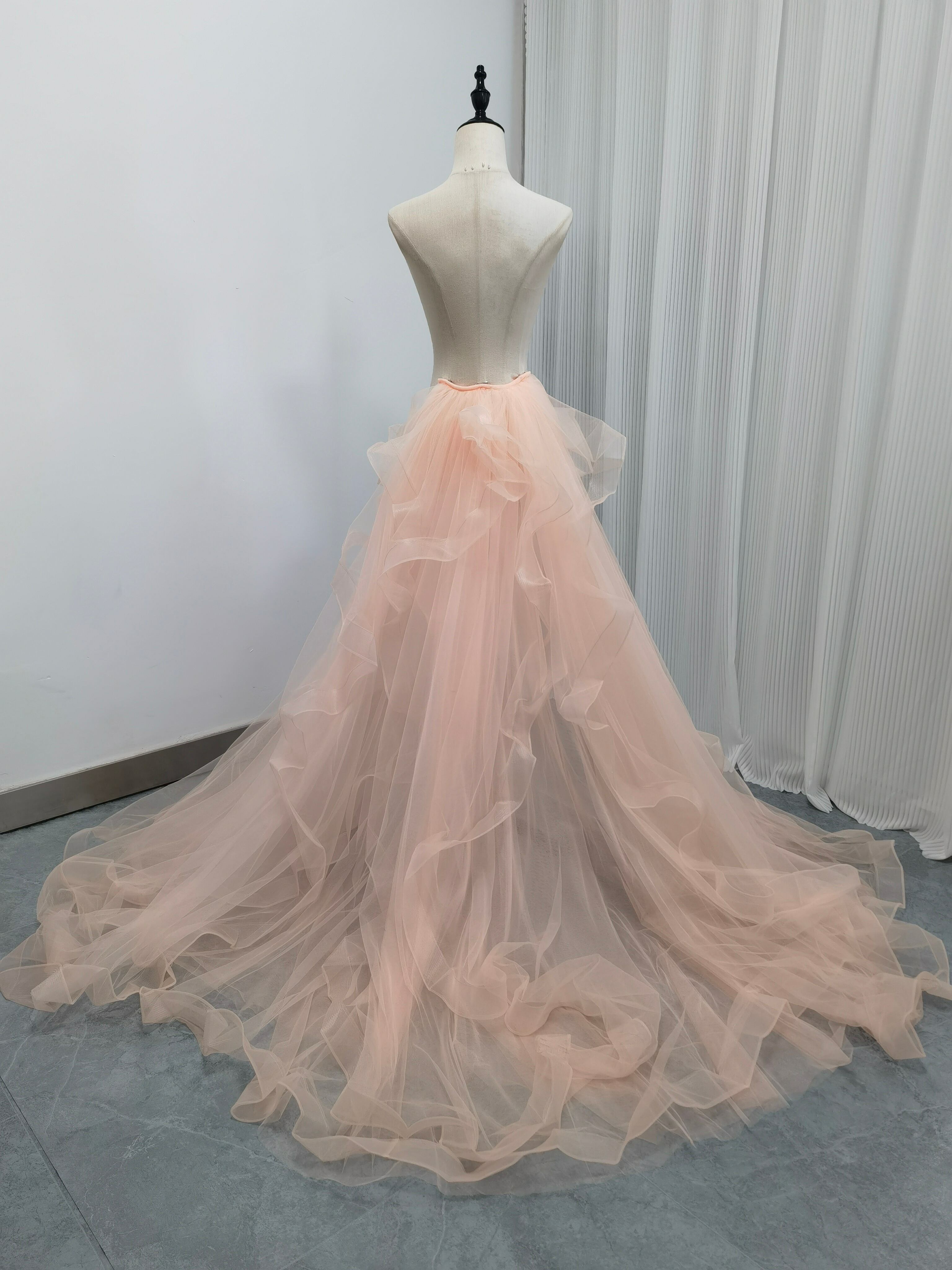 華やかなトレーン 取り外し ピンク ラッフルフリル ソフトチュール 前撮り