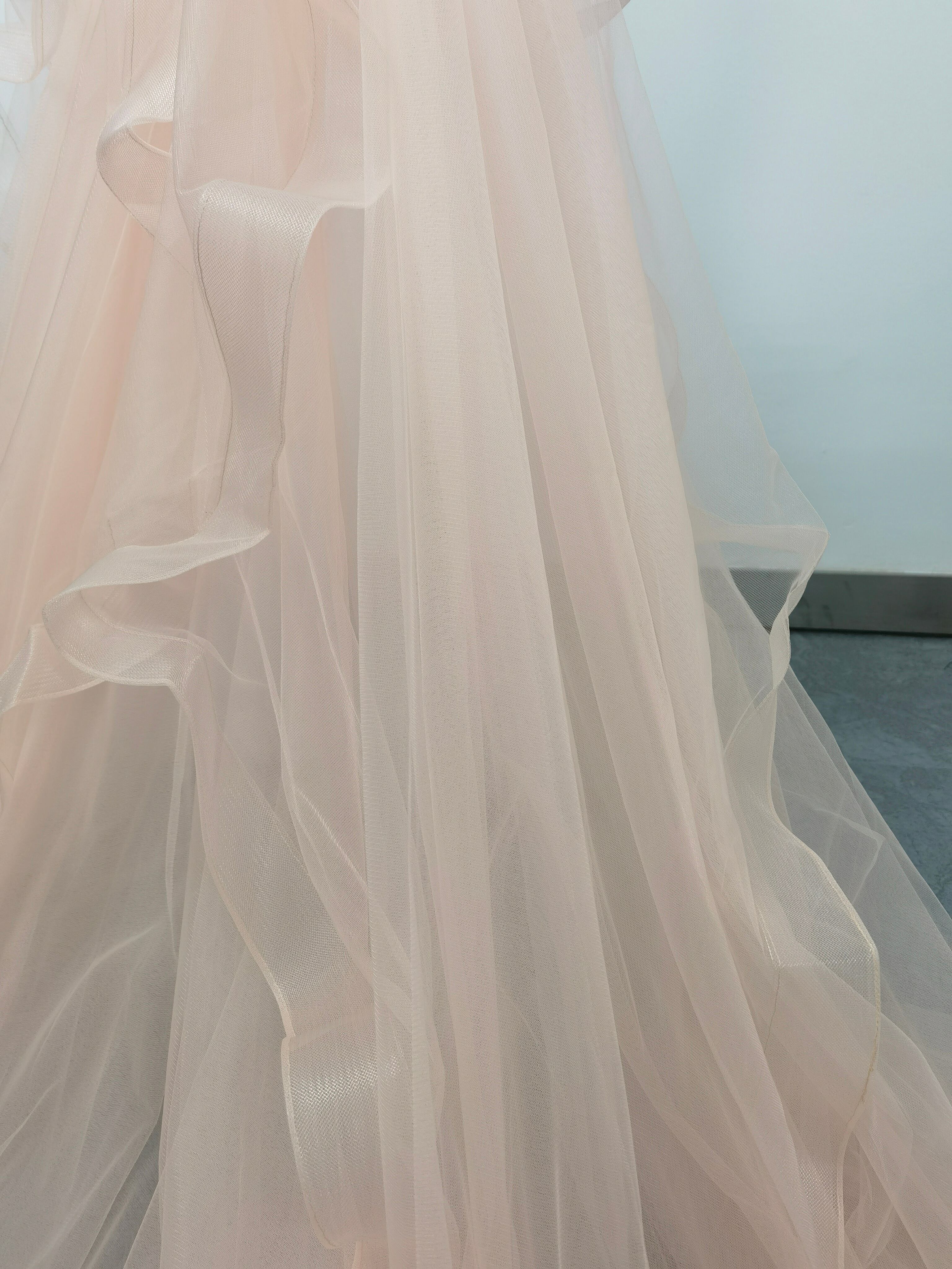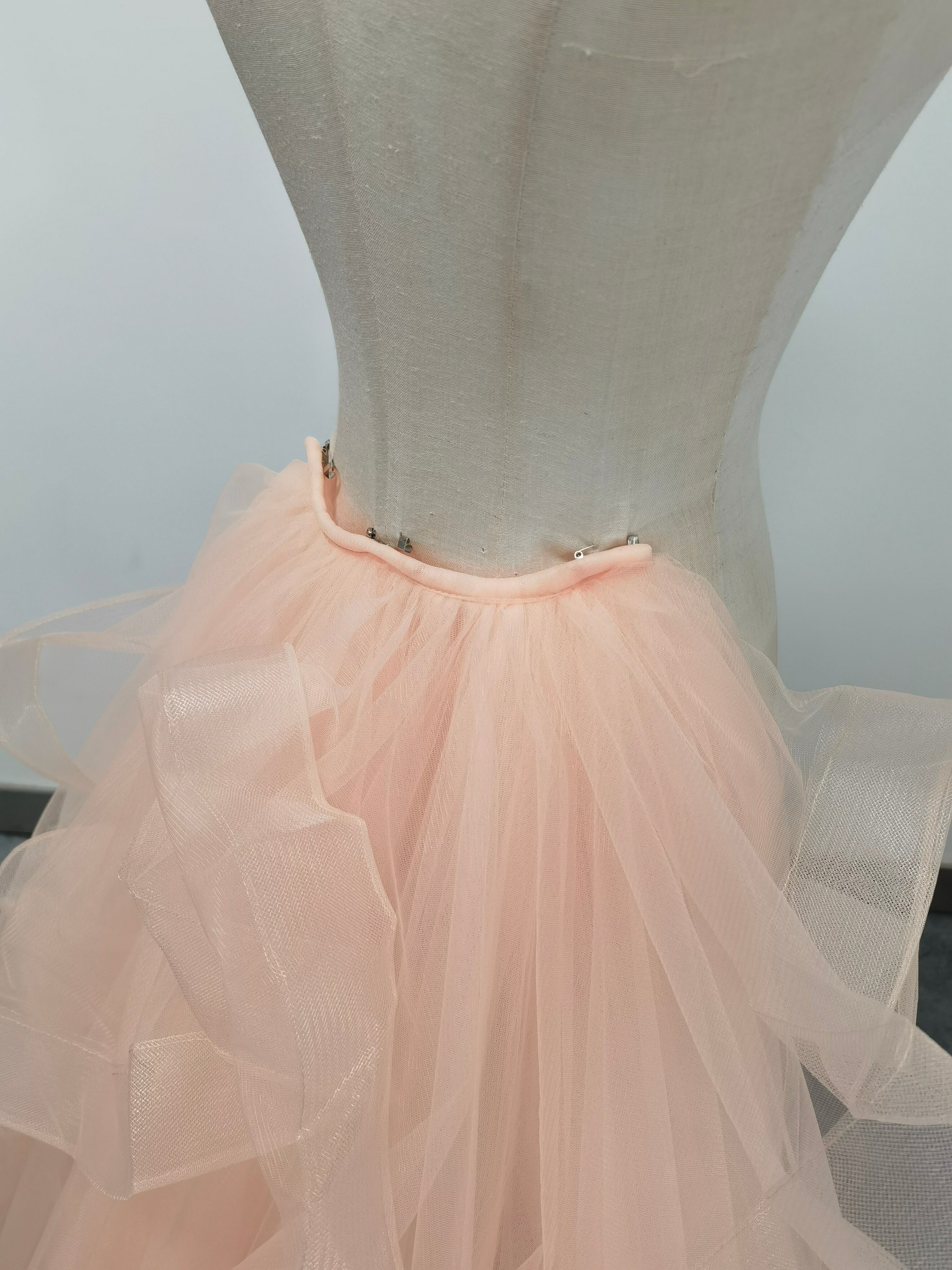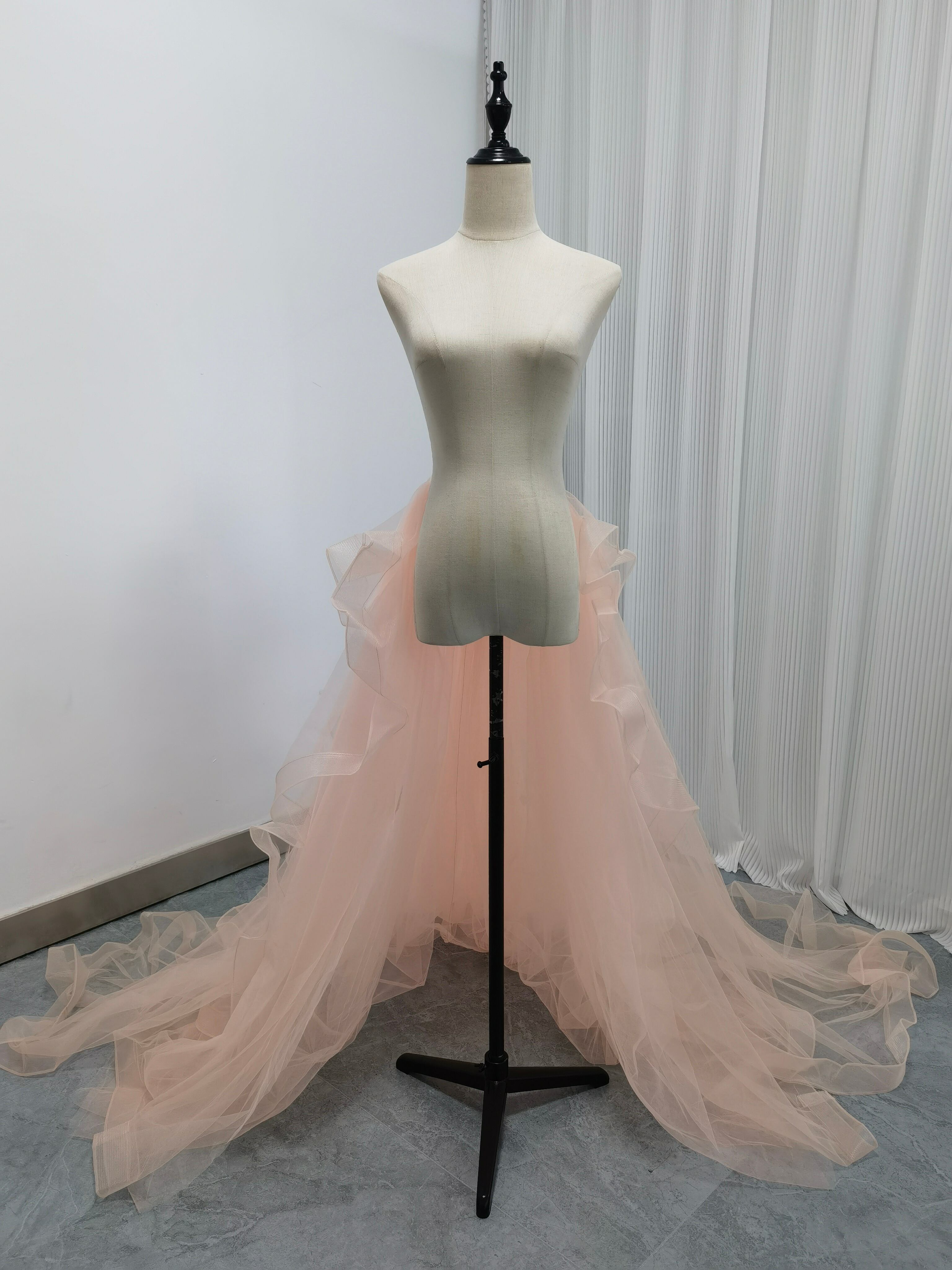 華やかなトレーン 取り外し ピンク ラッフルフリル ソフトチュール 前撮り