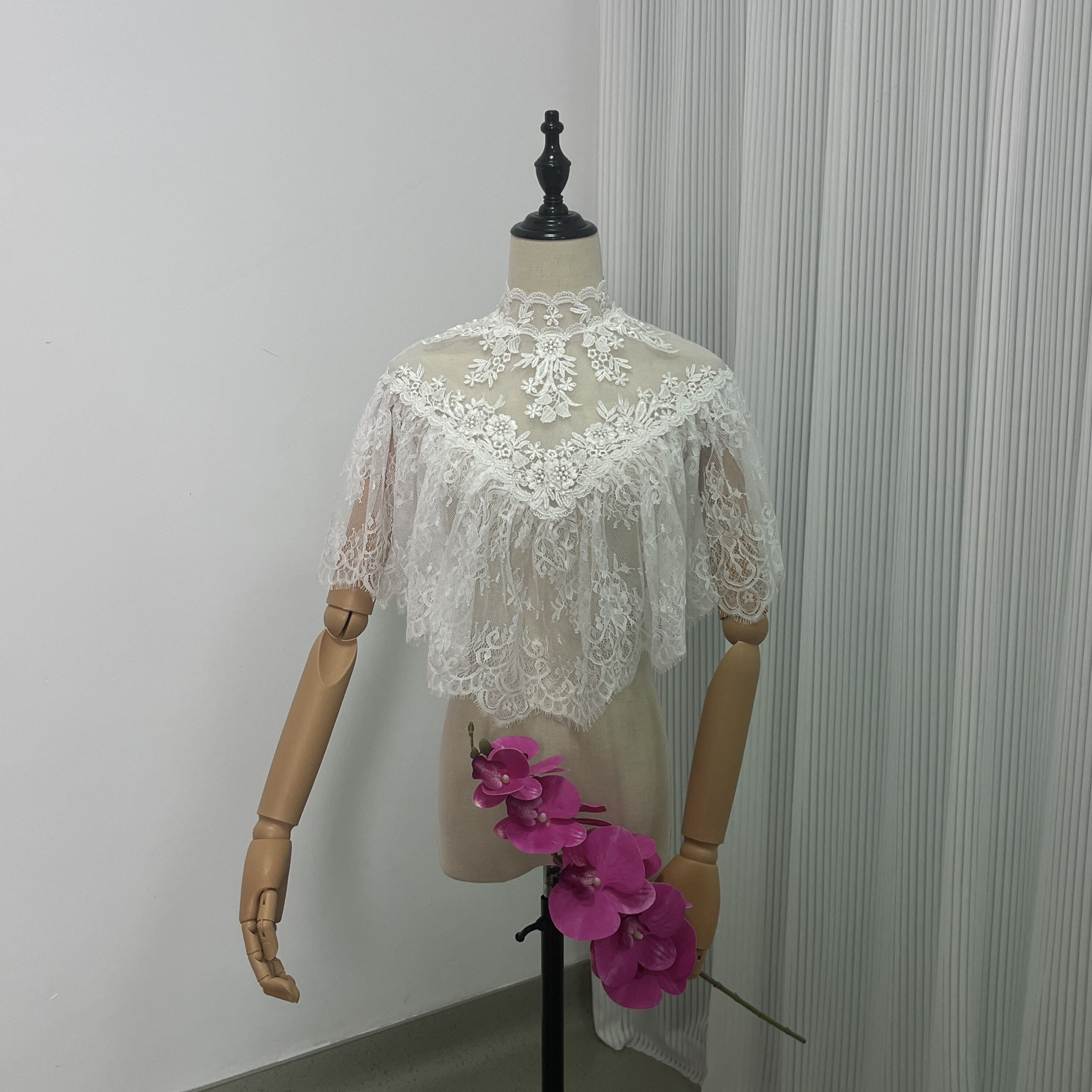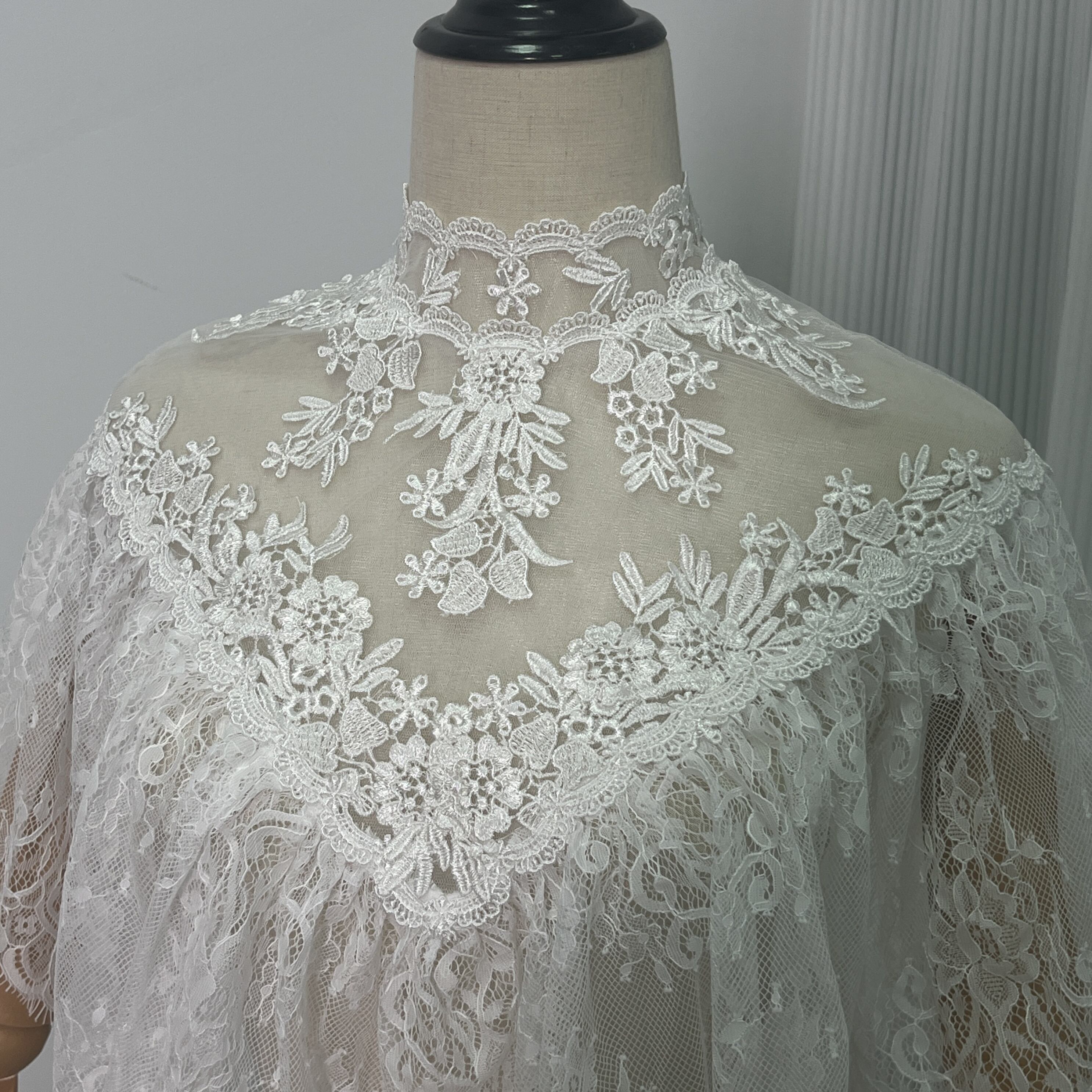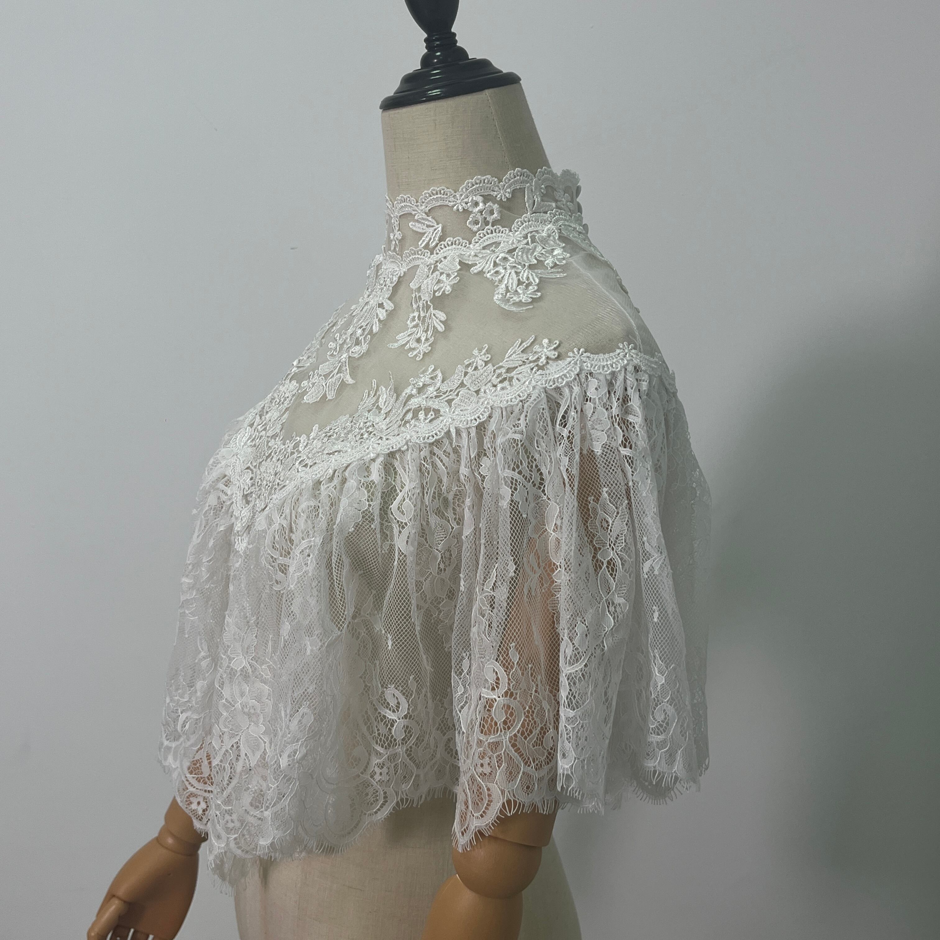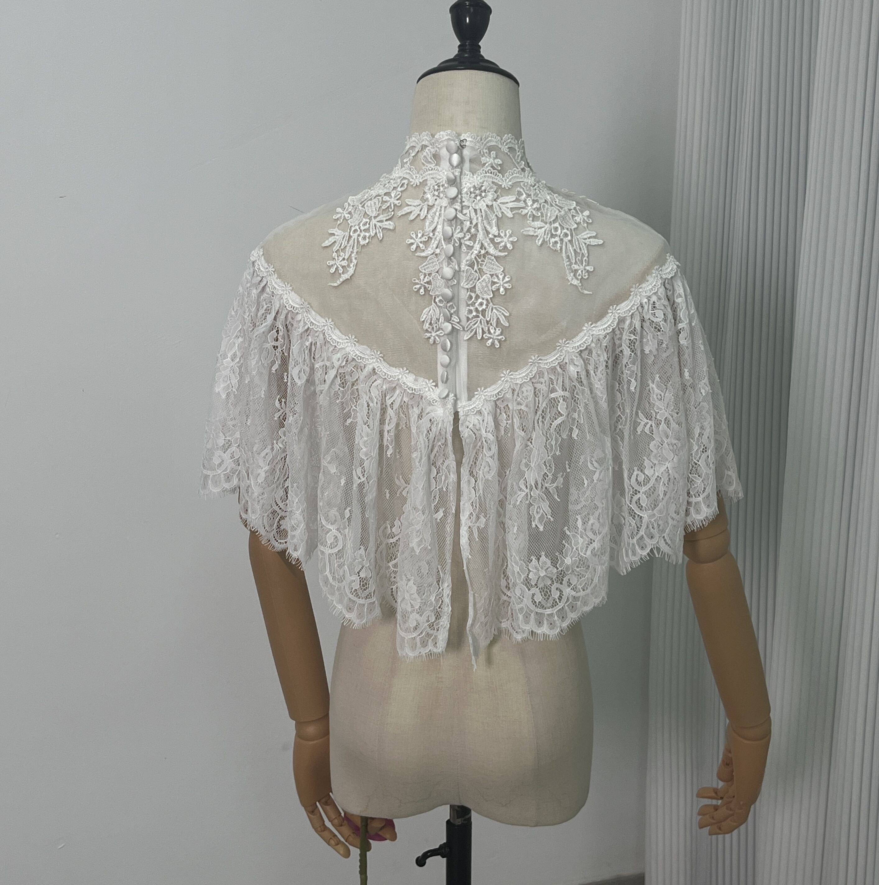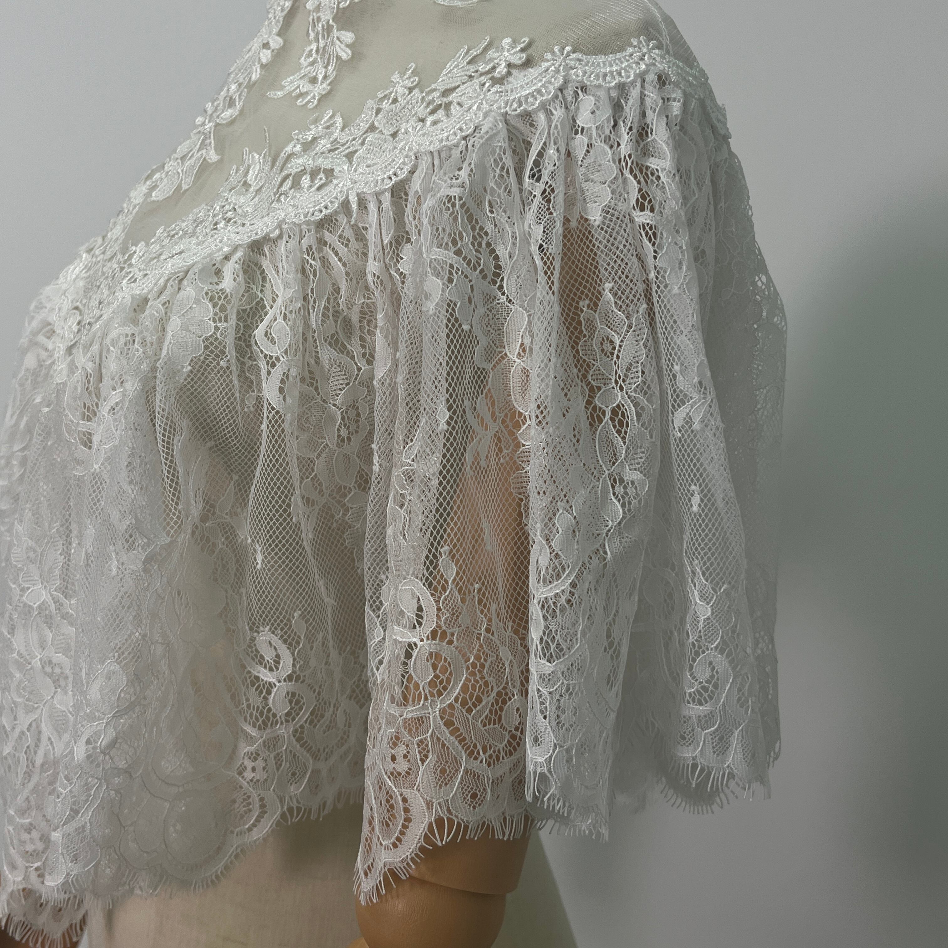 ボレロ ポンチョ 贅沢な総レース デザイン感 くるみボタン 前撮り 結婚式 ブライダル