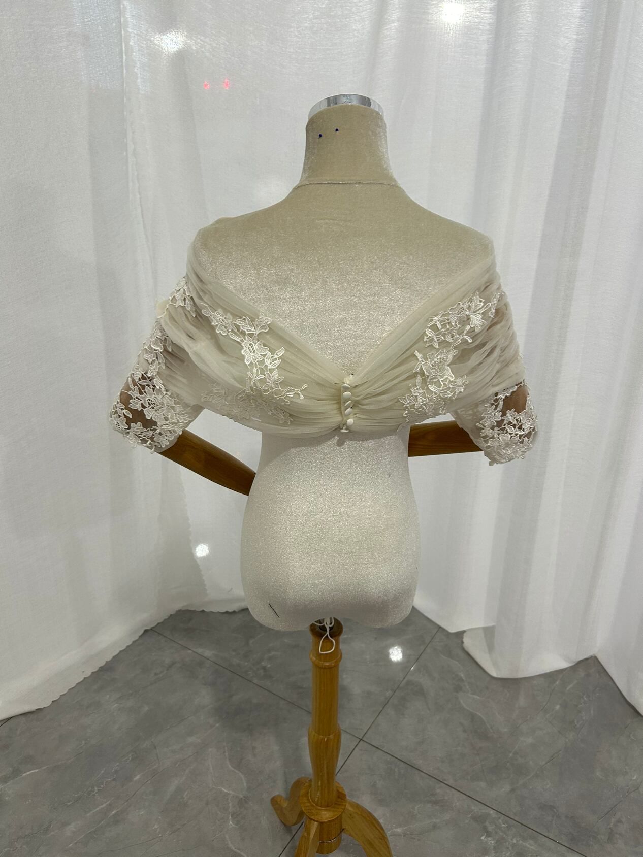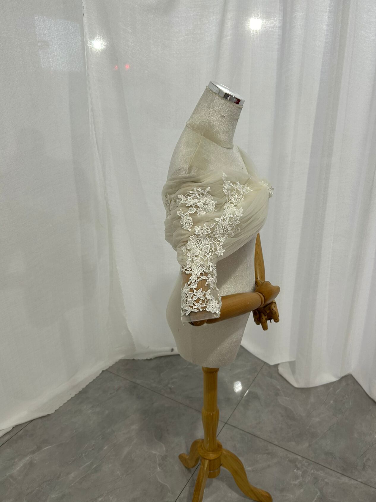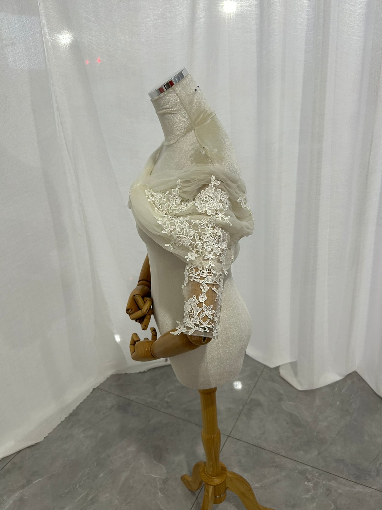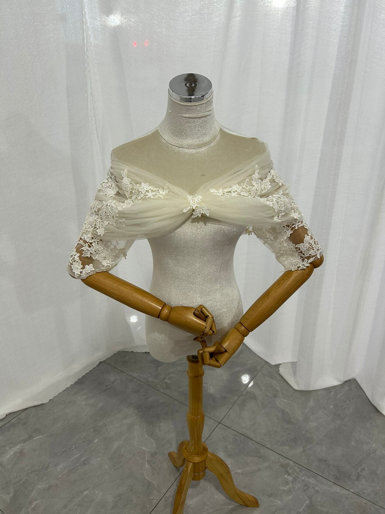 取り外しオフショルダー ボレロ アイボリー 七分袖丈 上品花レース 大人っぽい クラシカル ブライダル