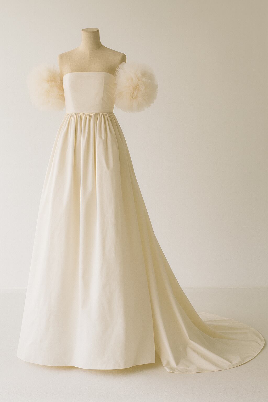 ウエディングドレス 姫袖 Aライン シルクタフタ ブライダル 前撮り スレンダーライン ベアトップ