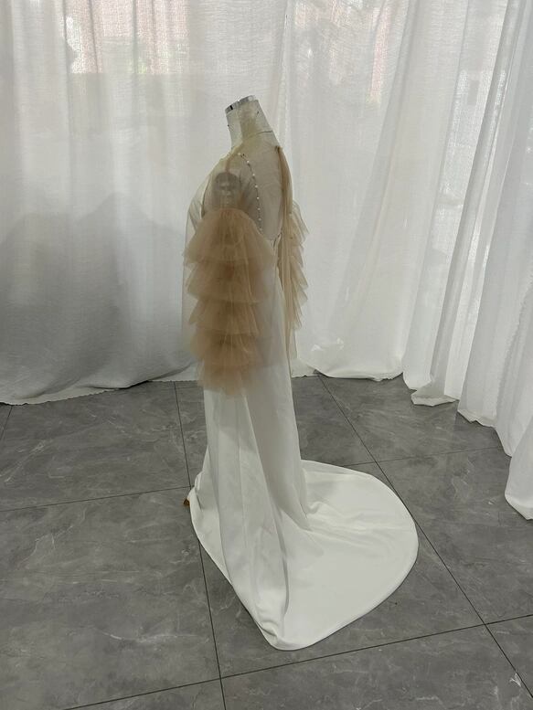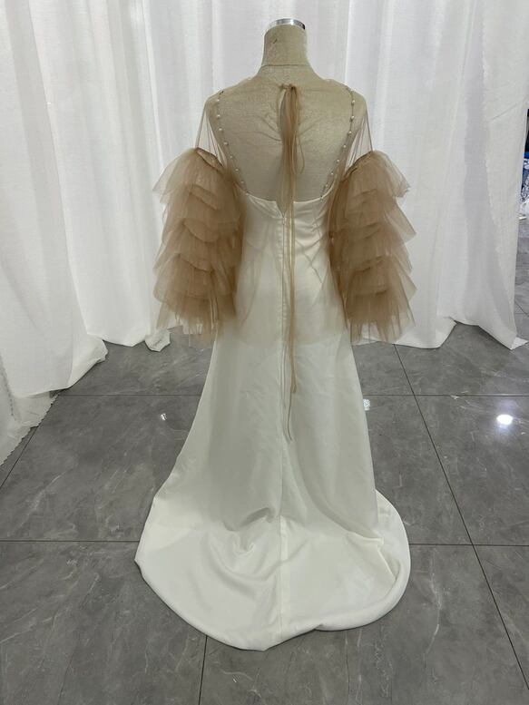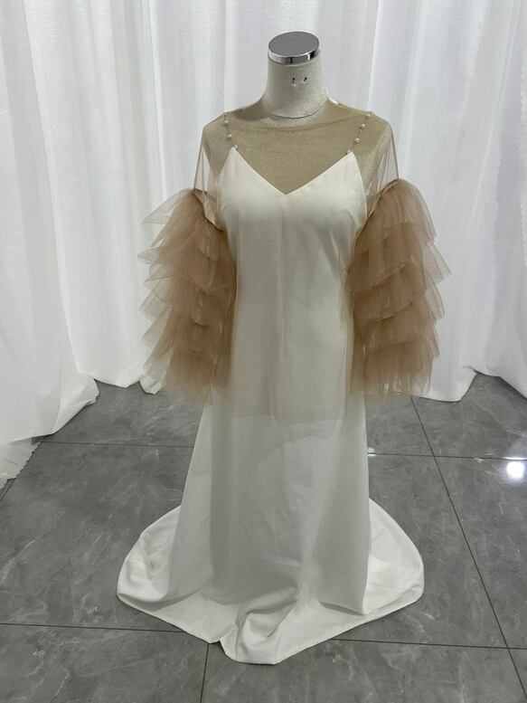 パーティードレス パールキャミソール+トップス フリル袖 ソフトチュール スレンダーライン 二次会