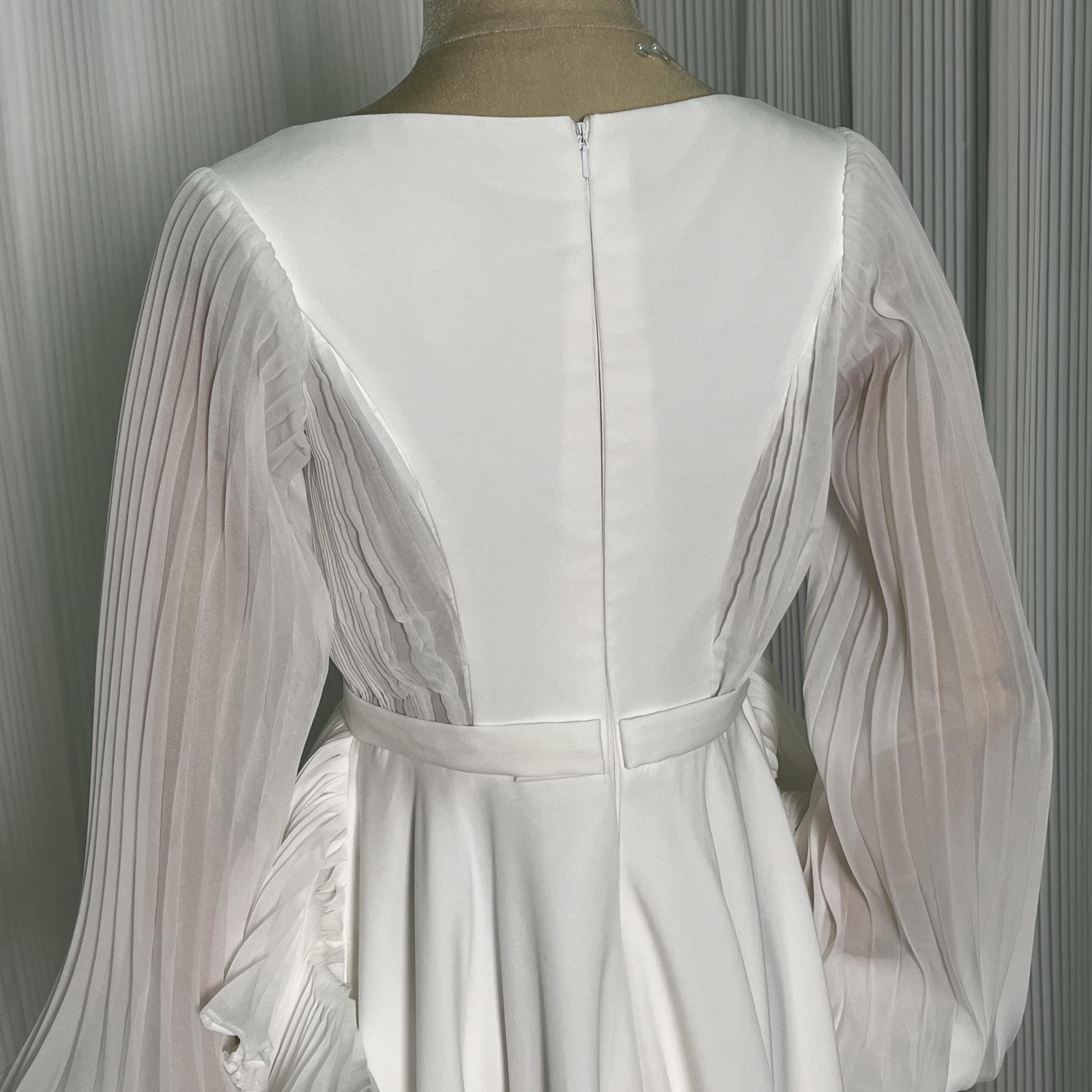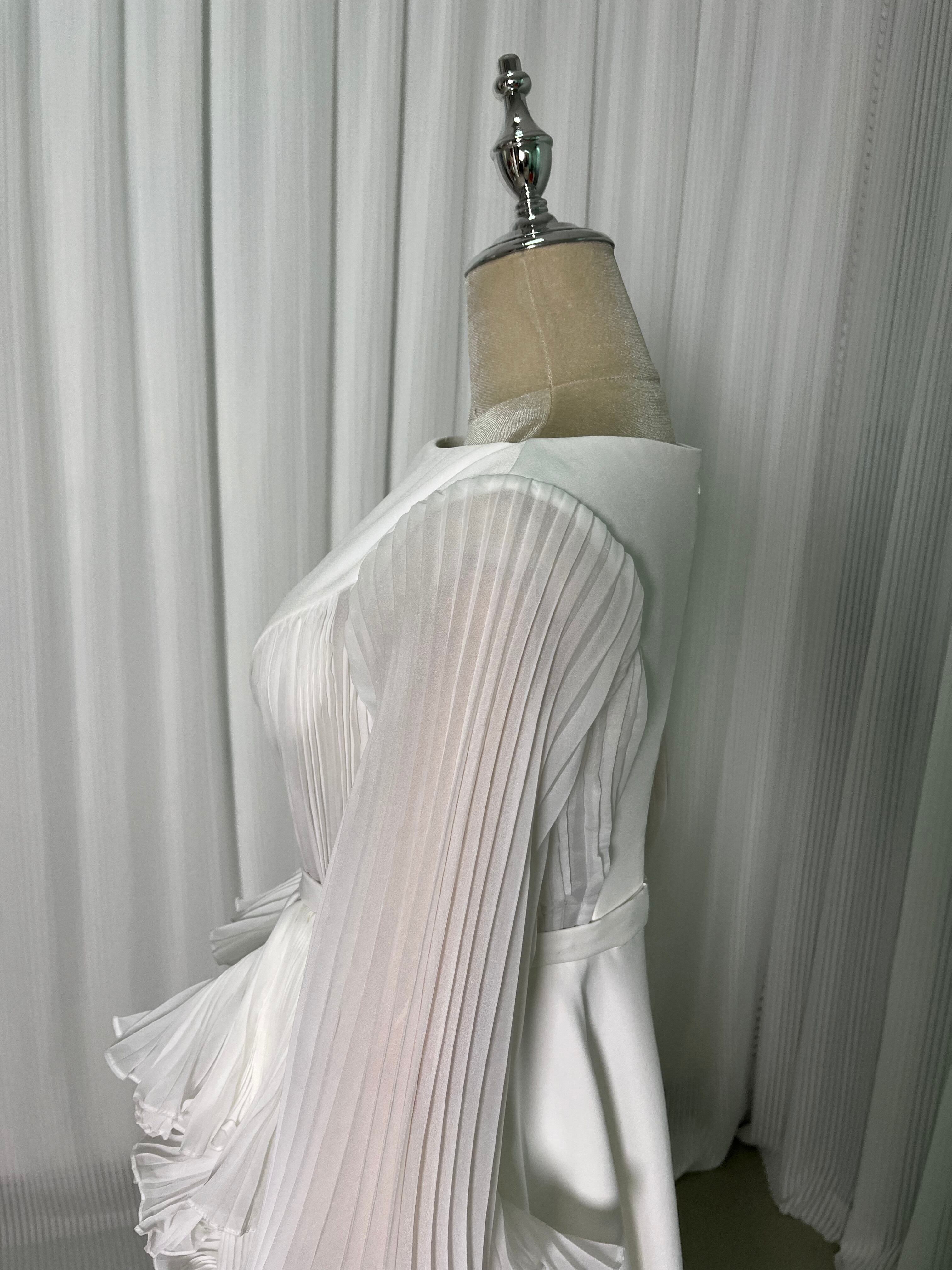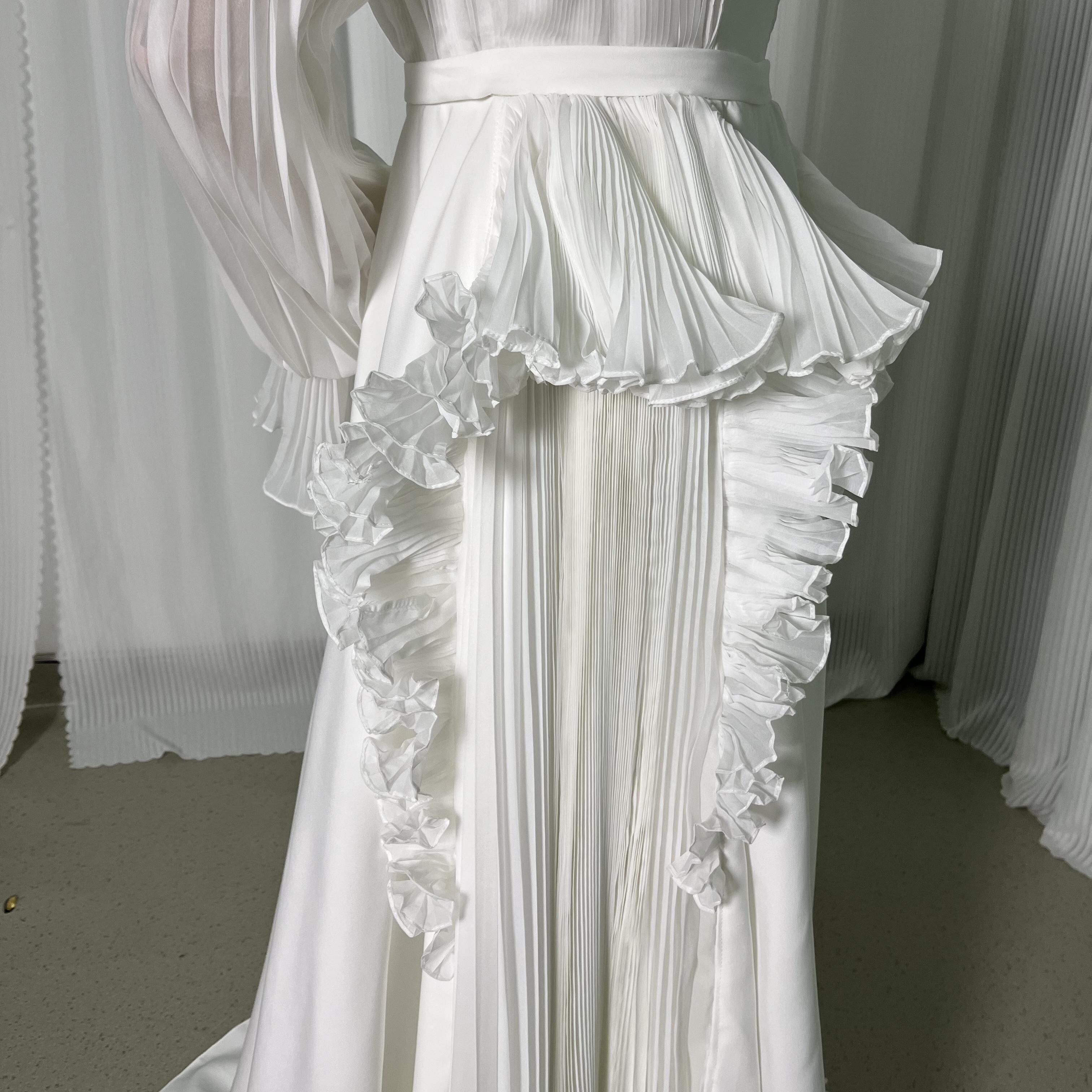 ウェディングドレス プリーツスカート ロングスリーブ デザイン感 大人っぽい 抜群のおしゃれ見え ブライダル