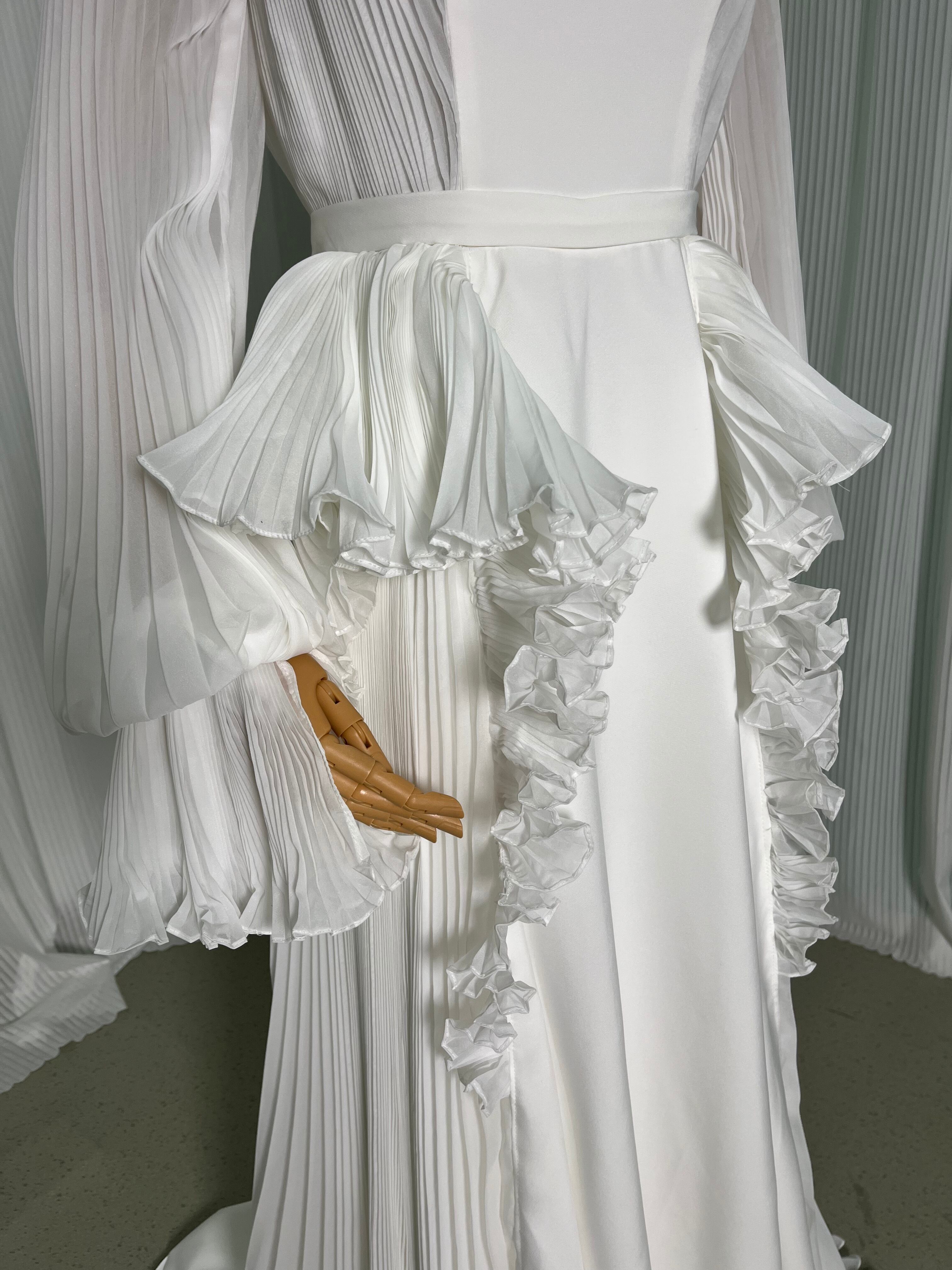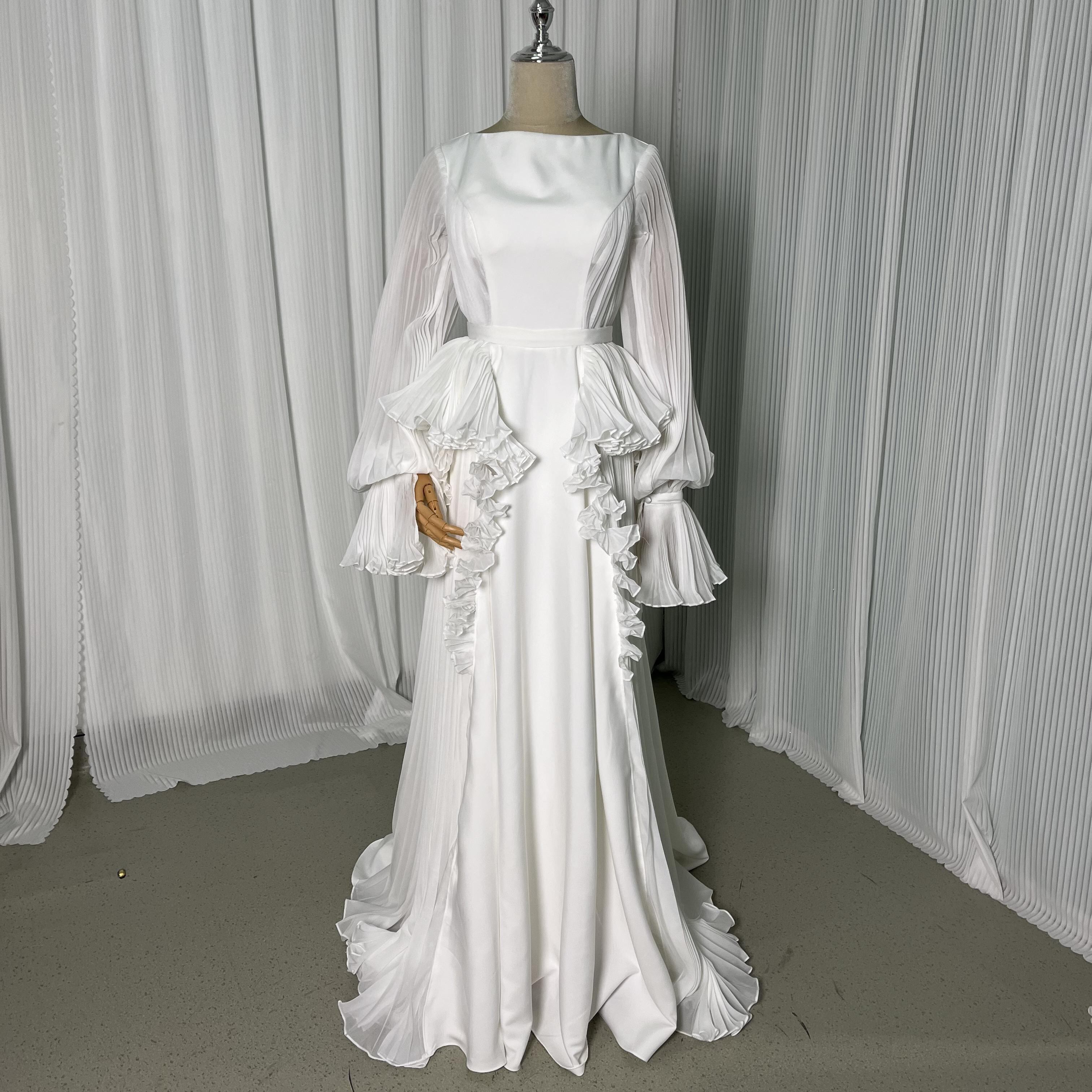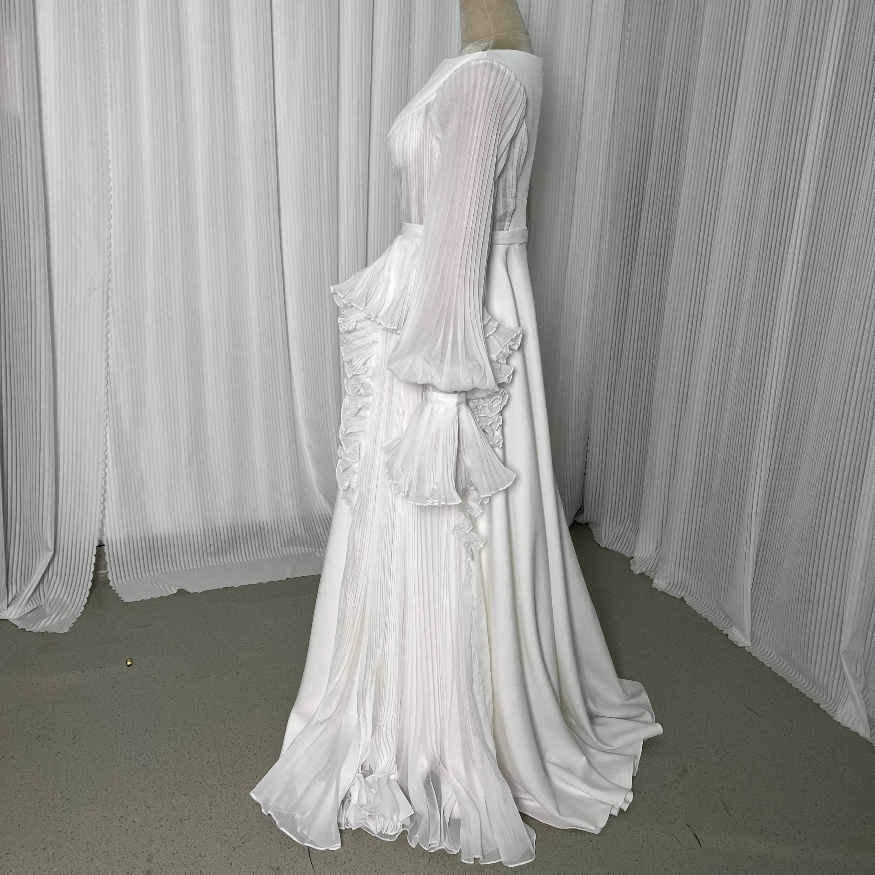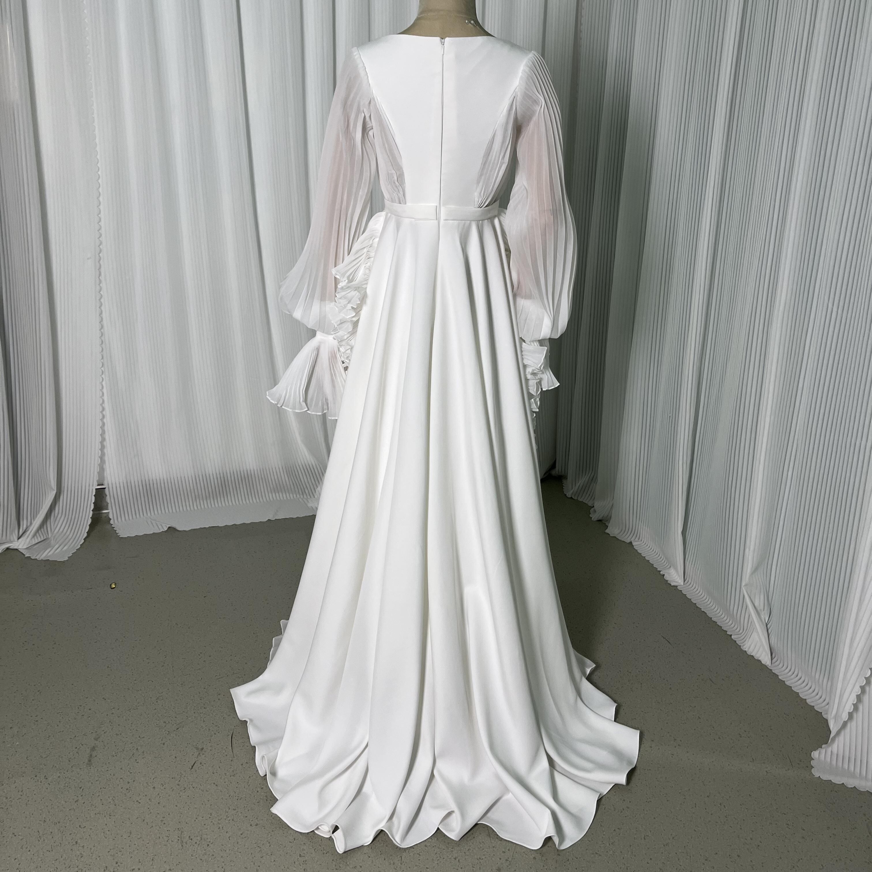 ウェディングドレス プリーツスカート ロングスリーブ デザイン感 大人っぽい 抜群のおしゃれ見え ブライダル