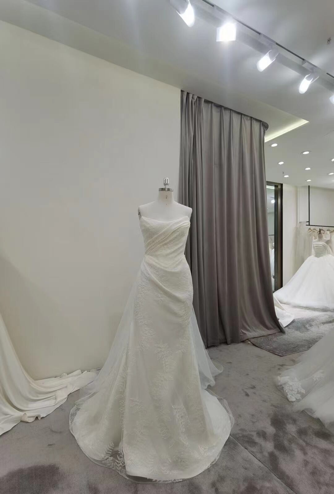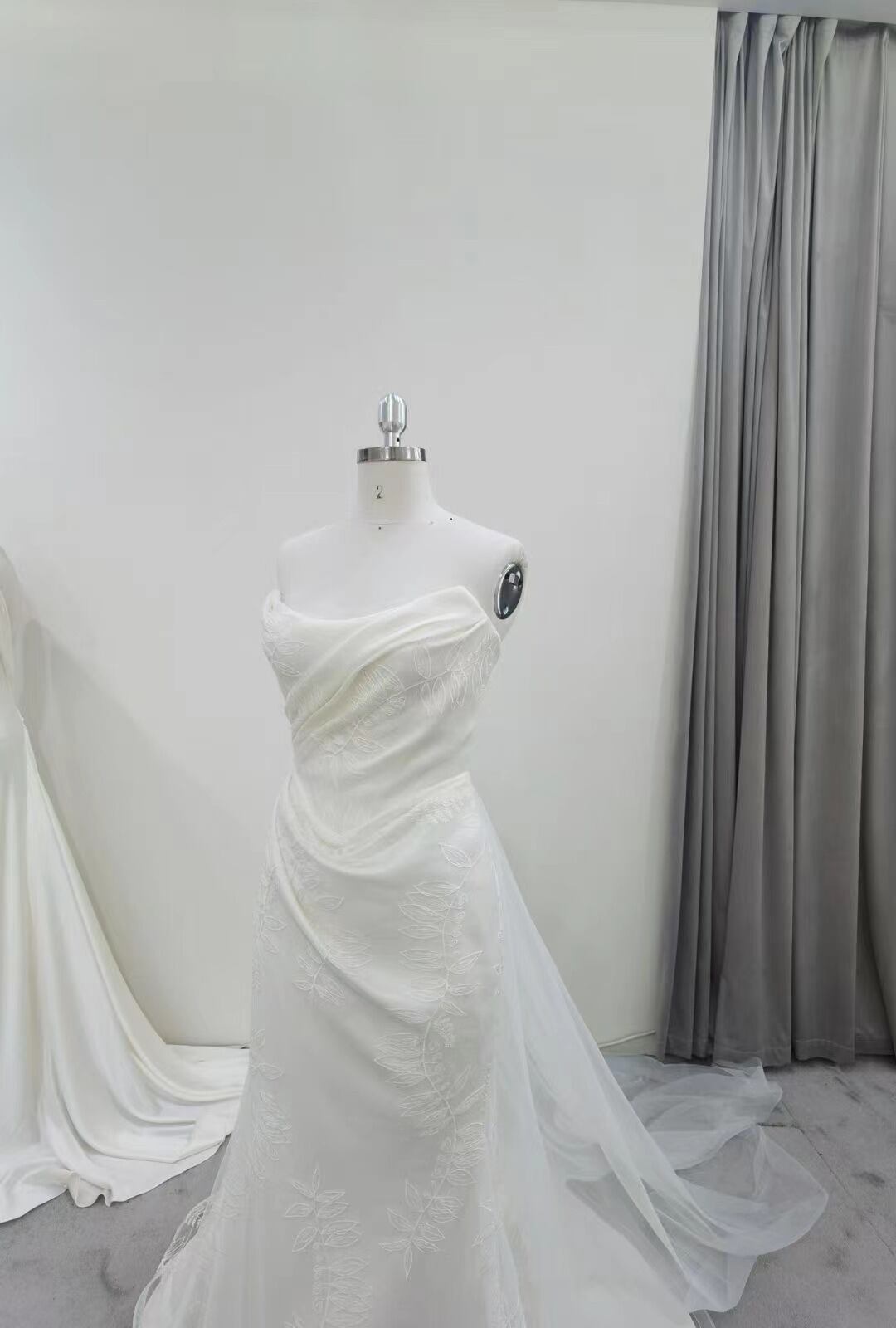 ウエディングドレス マーメイドライン ベアトップ リーフ刺繍 抜群のおしゃれ見え 細見えシルエット