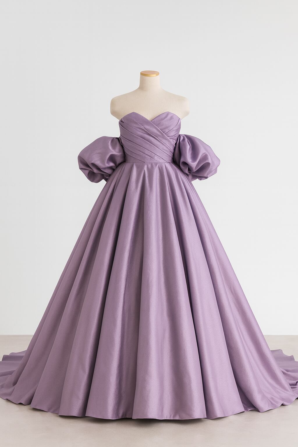 カラードレス パープル パフスリーブドレス 光沢サテン 細見えシルエット 抜群におしゃれ度が際立つ 結婚式