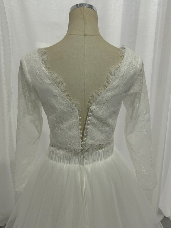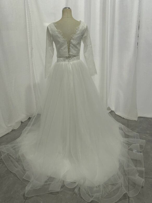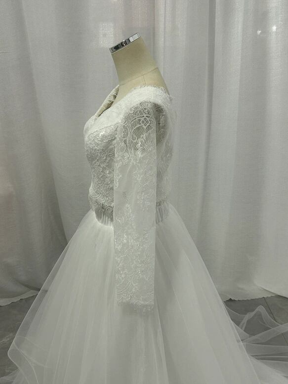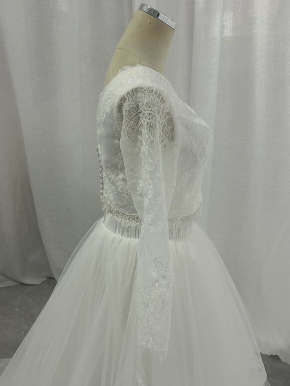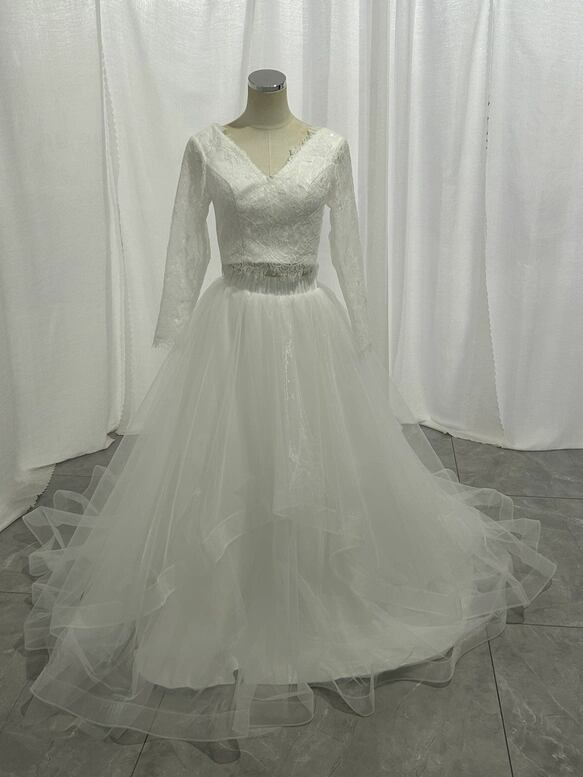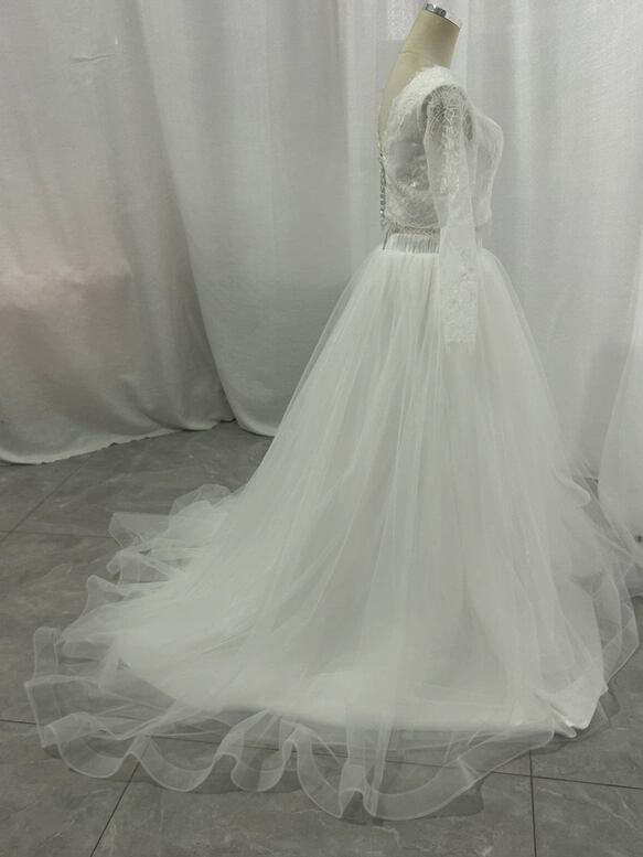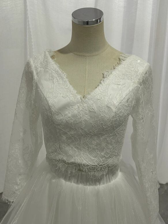 ウェディングドレス セパレート Vネック 長袖 大人っぽい エレガント スレンダーライン 二次会