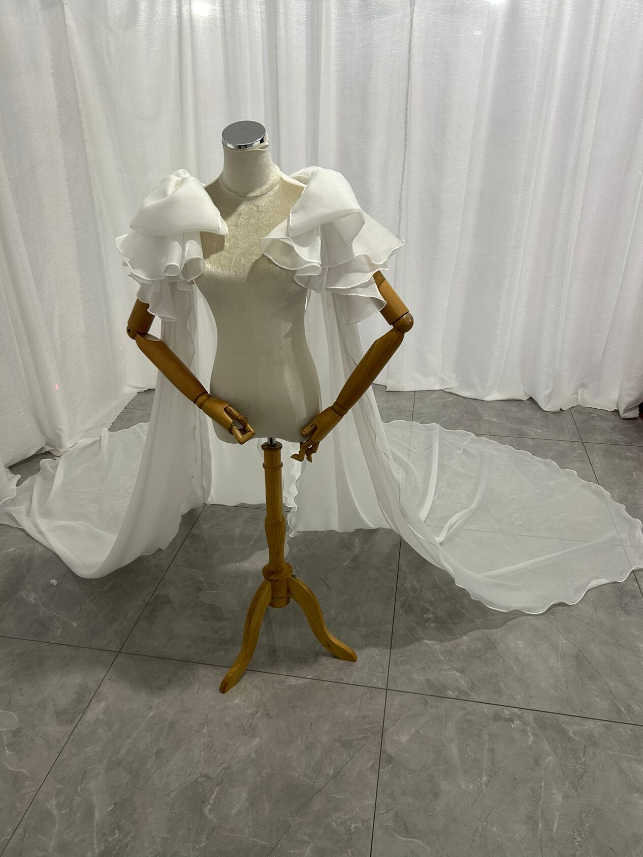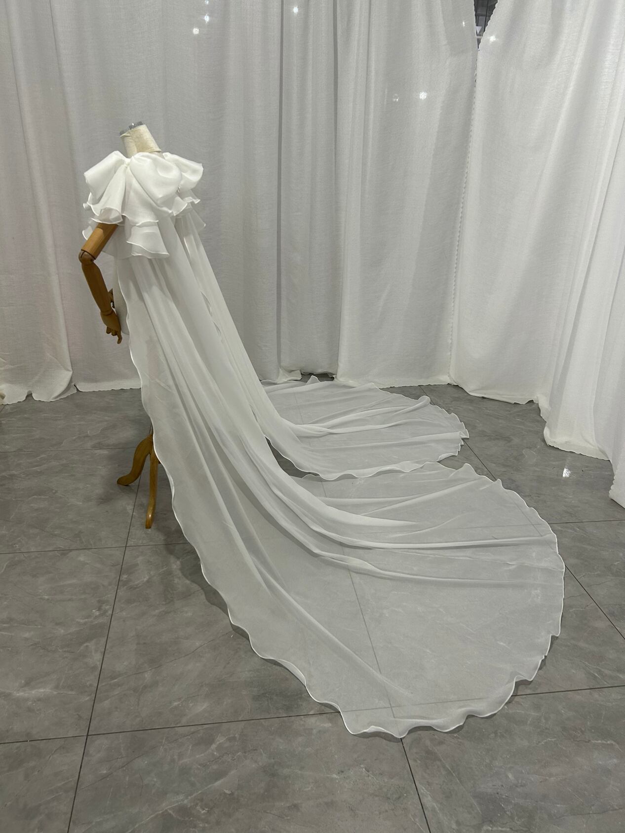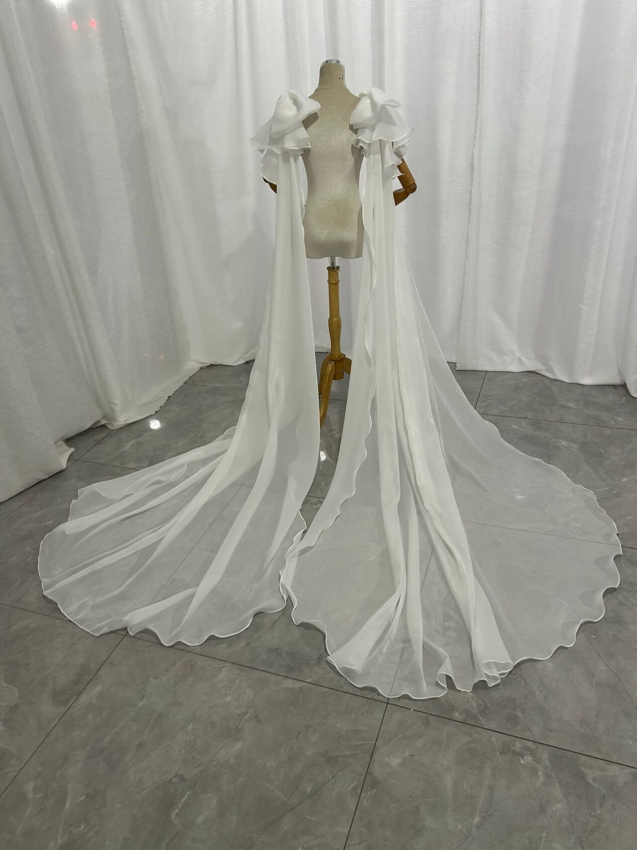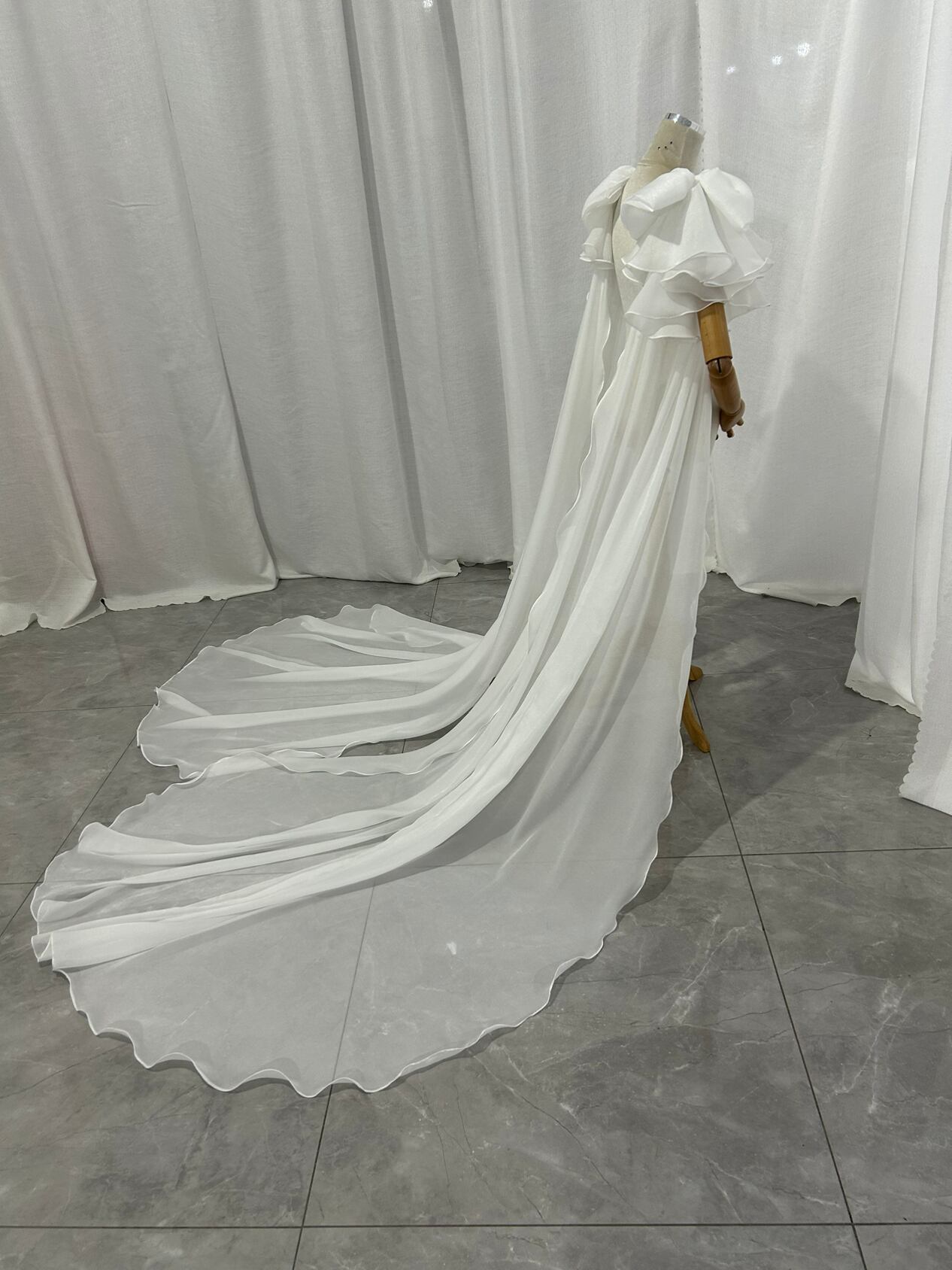 リボン ふわふわ袖 可愛い ふんわりシフォン ブライダル 前撮り 抜群のおしゃれ見え ウェディングドレス