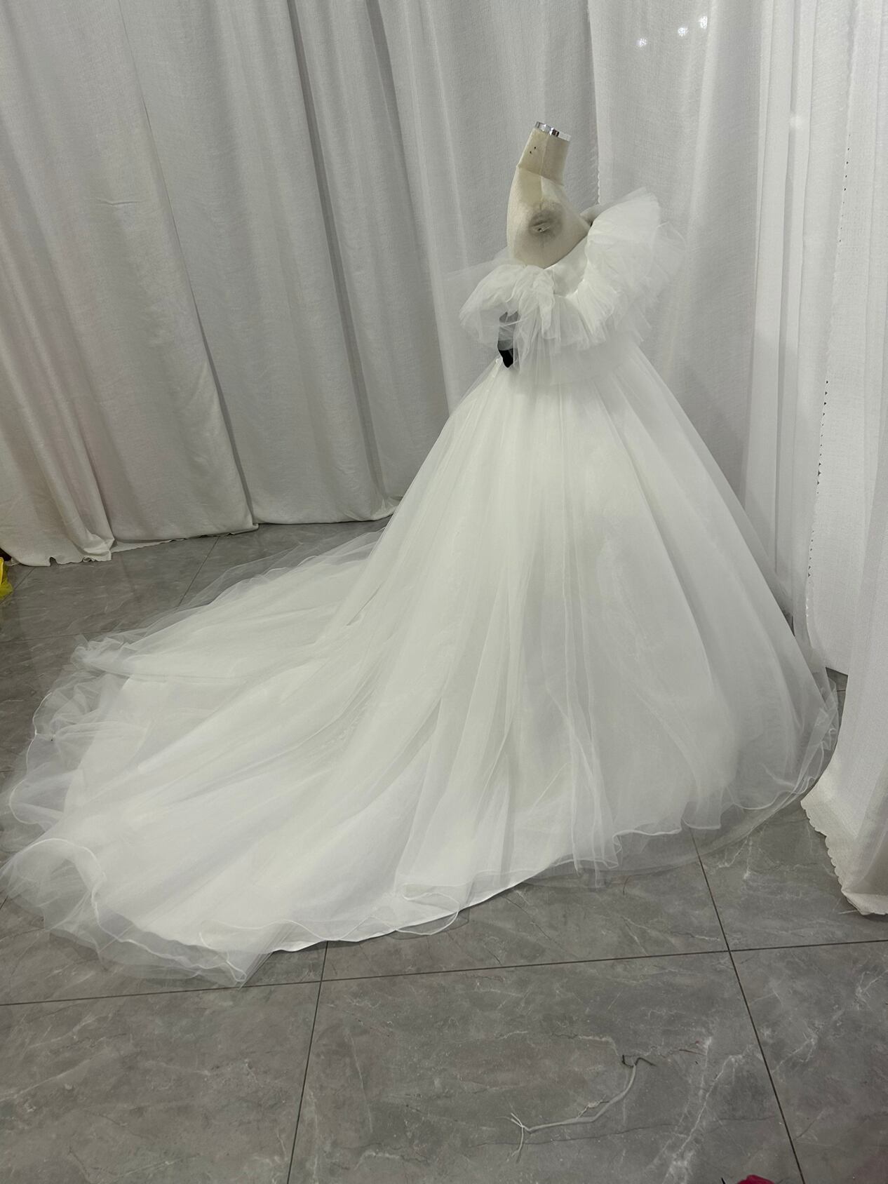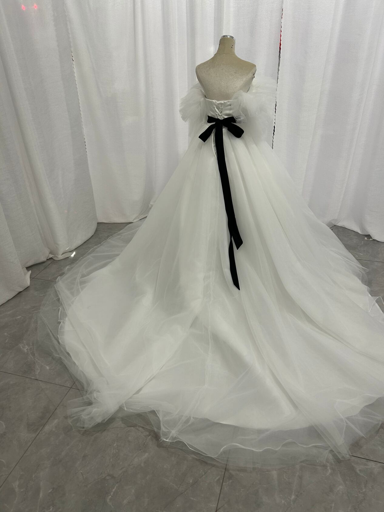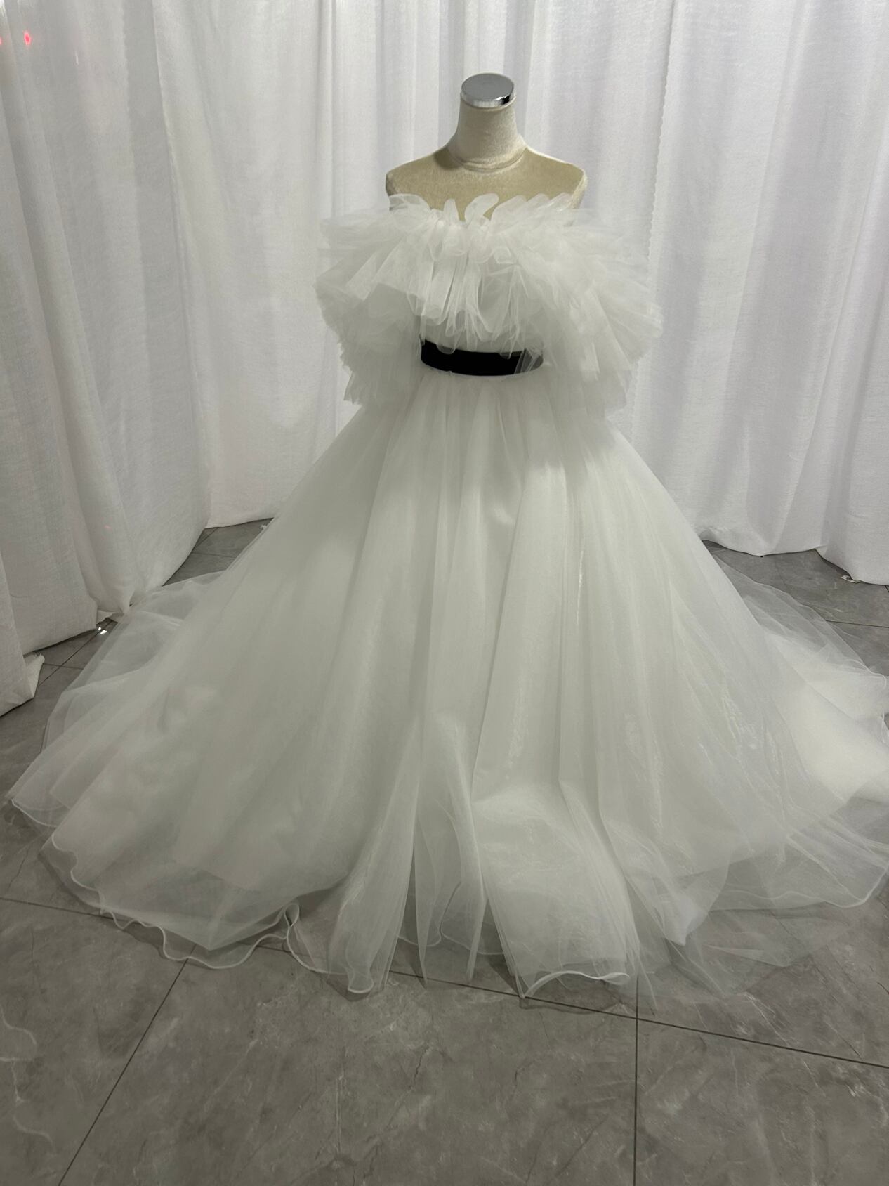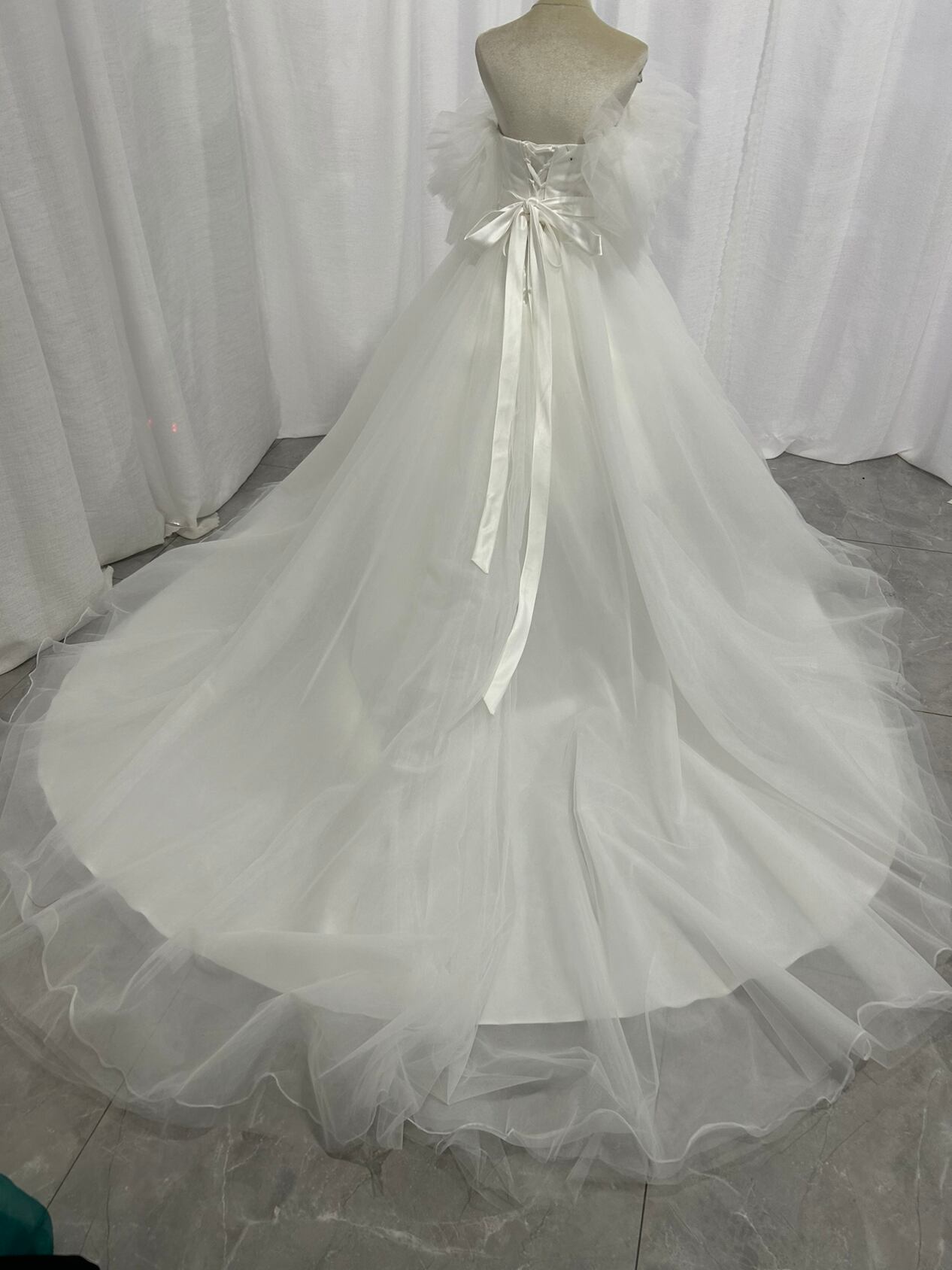 ウエディングドレス オフショルダー サッシュベルト オフホワイト 編み上げ ブライダル 花嫁
