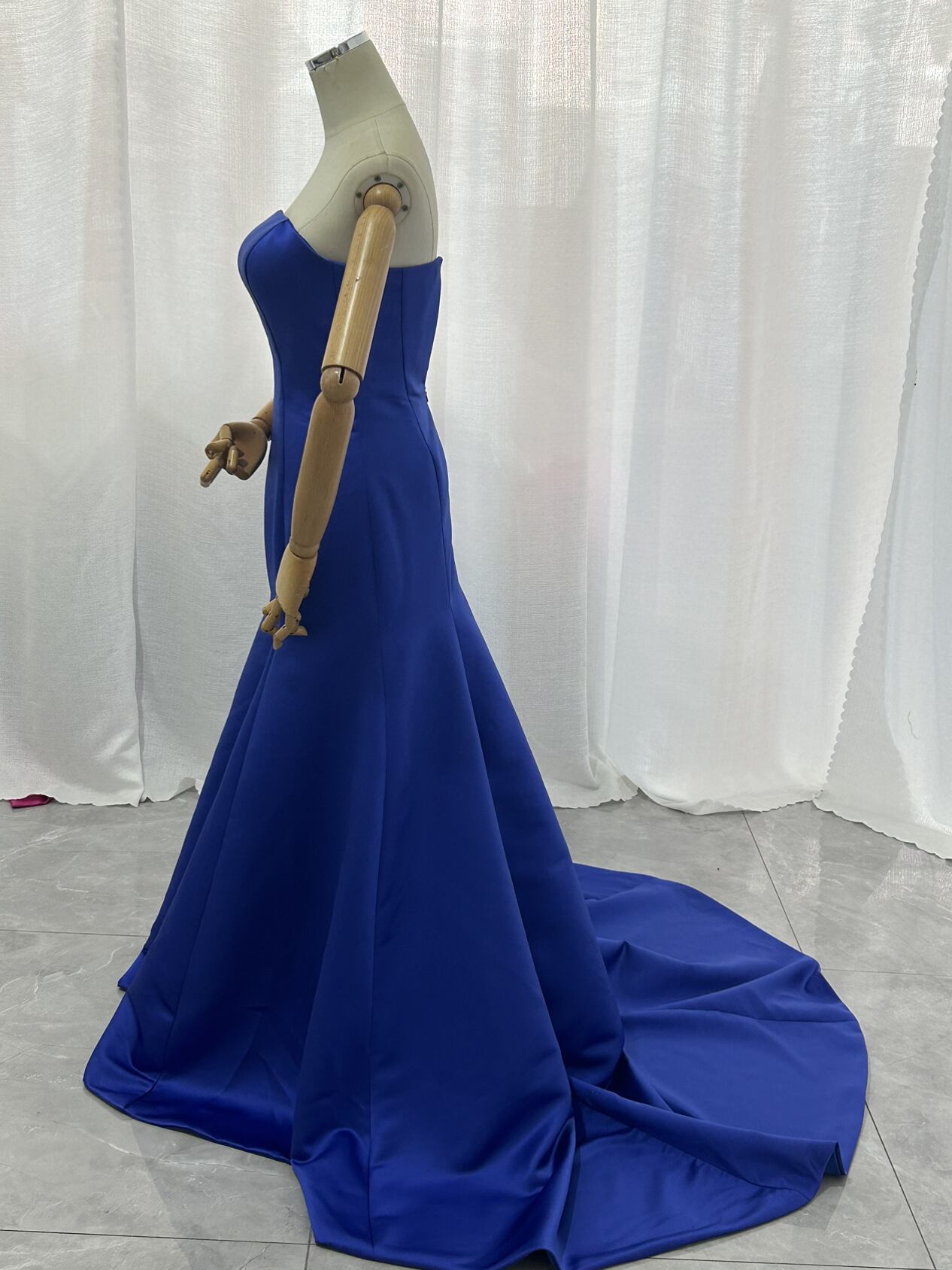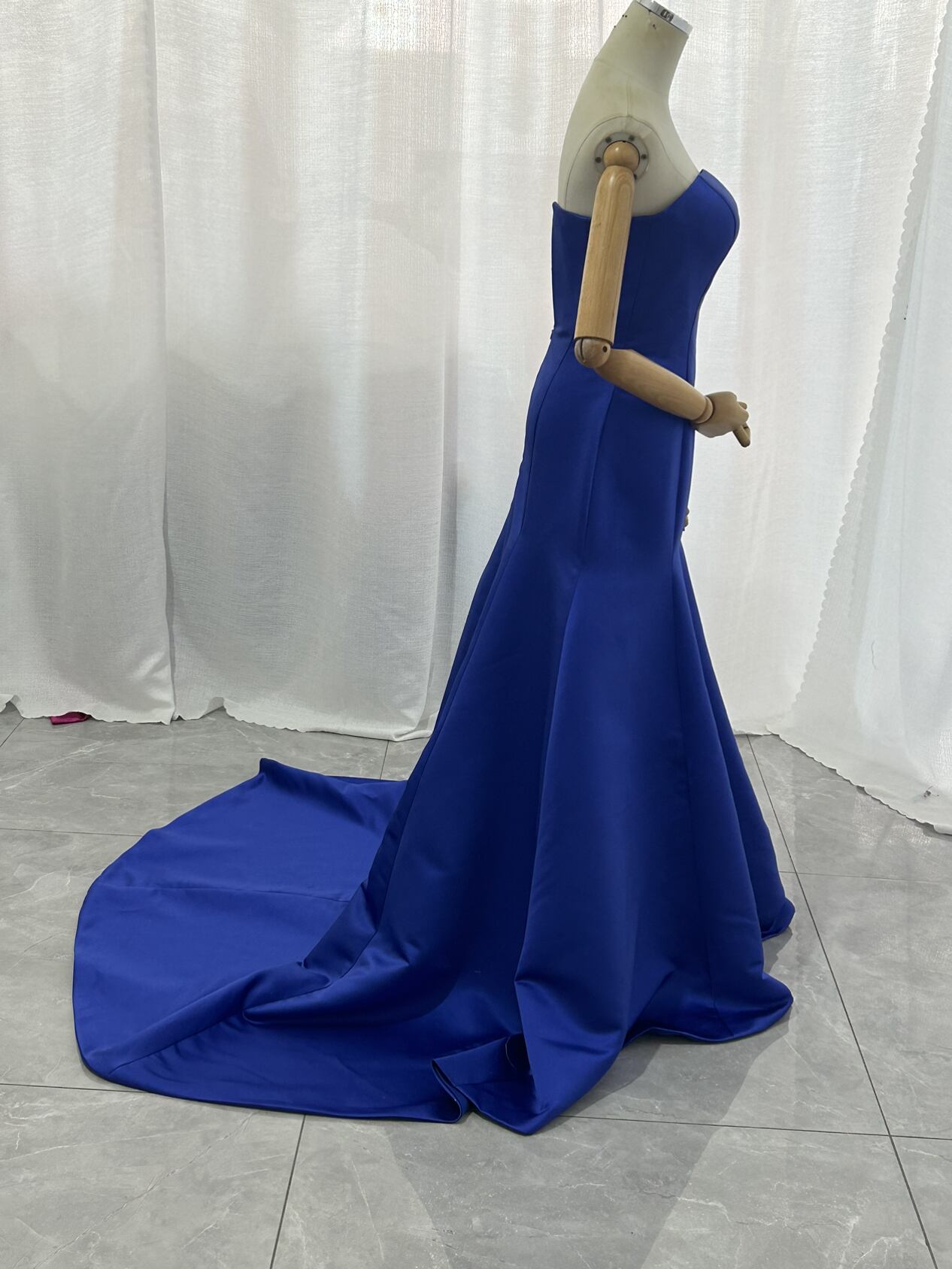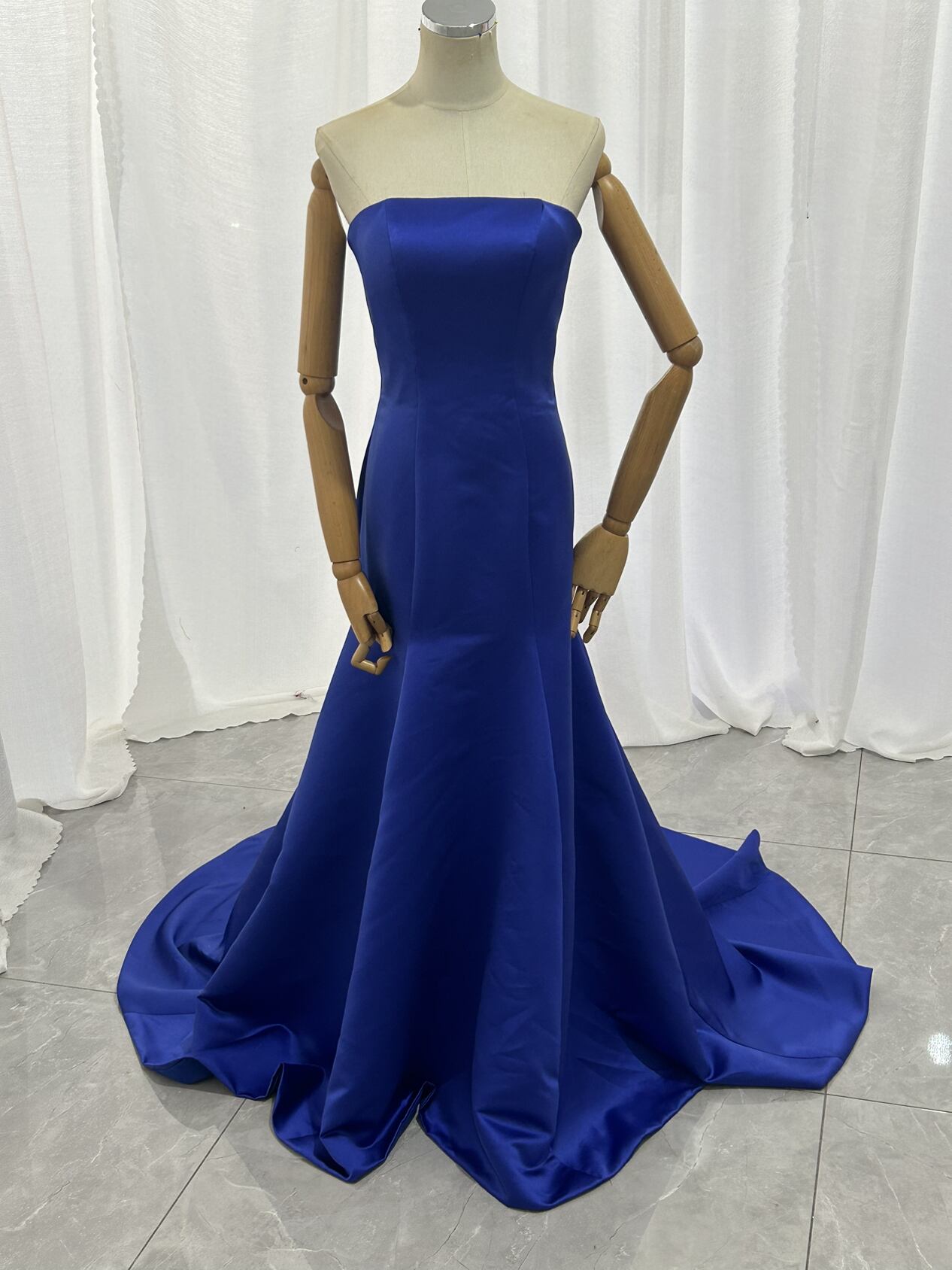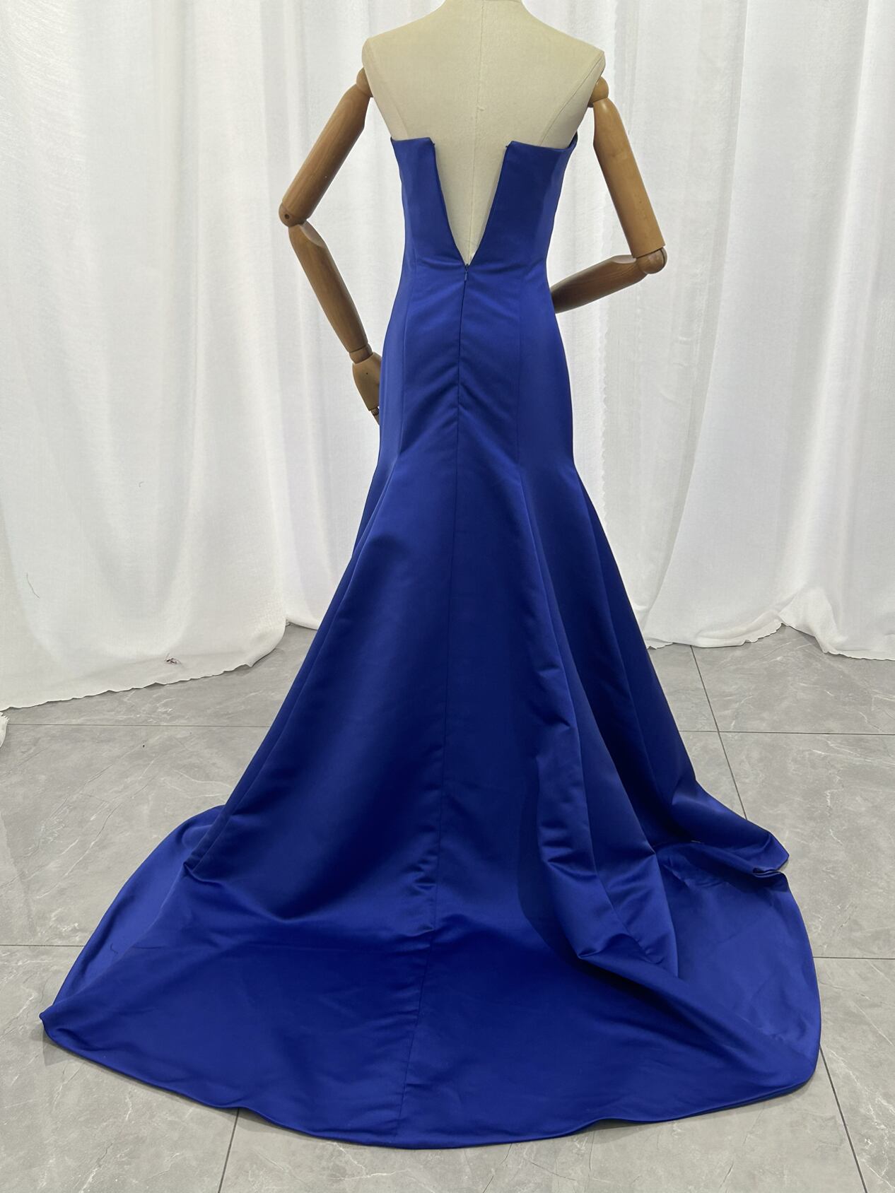 カラードレス マーメイドライン ブルー 光沢サテン ファスナー ビスチェドレス エレガント クラシカル