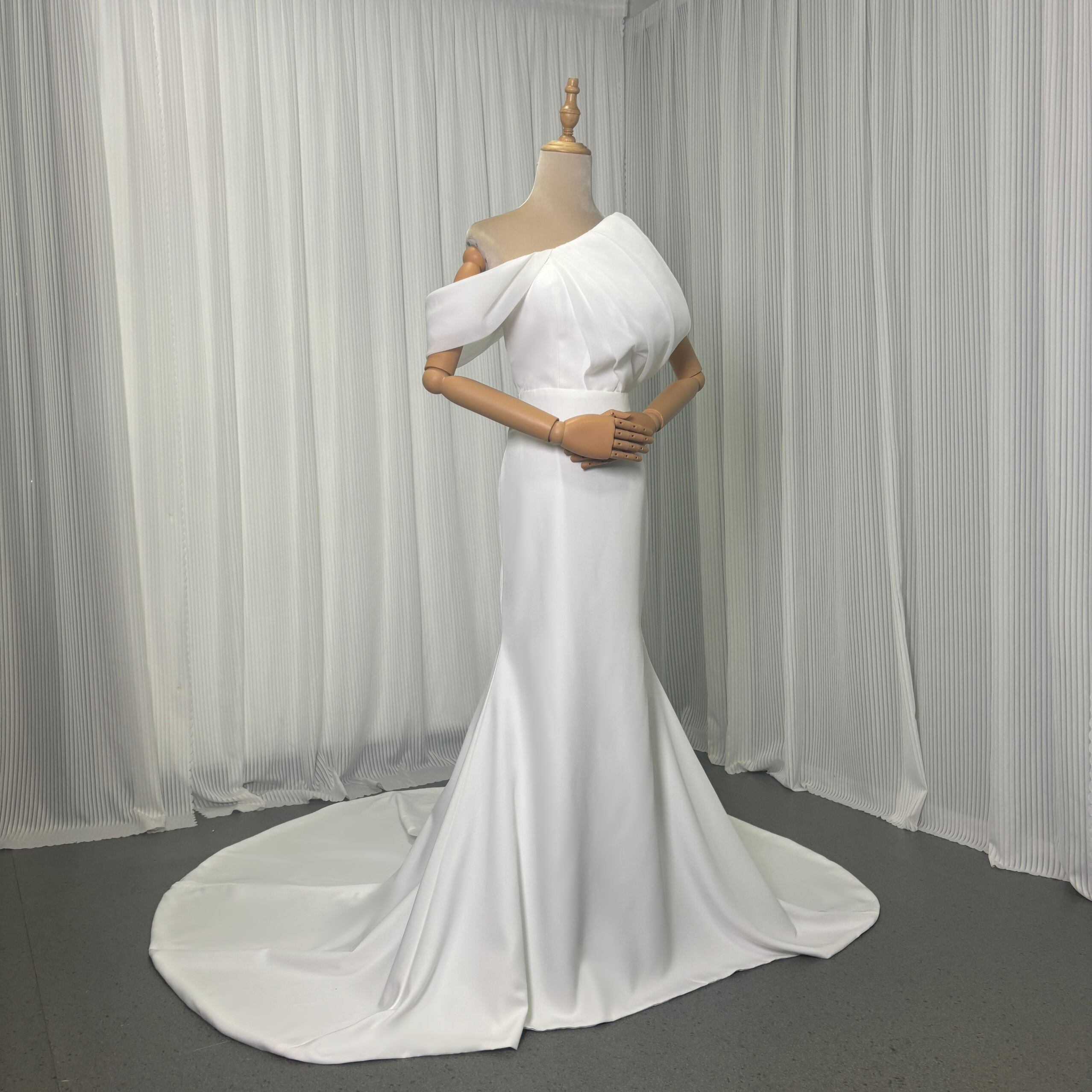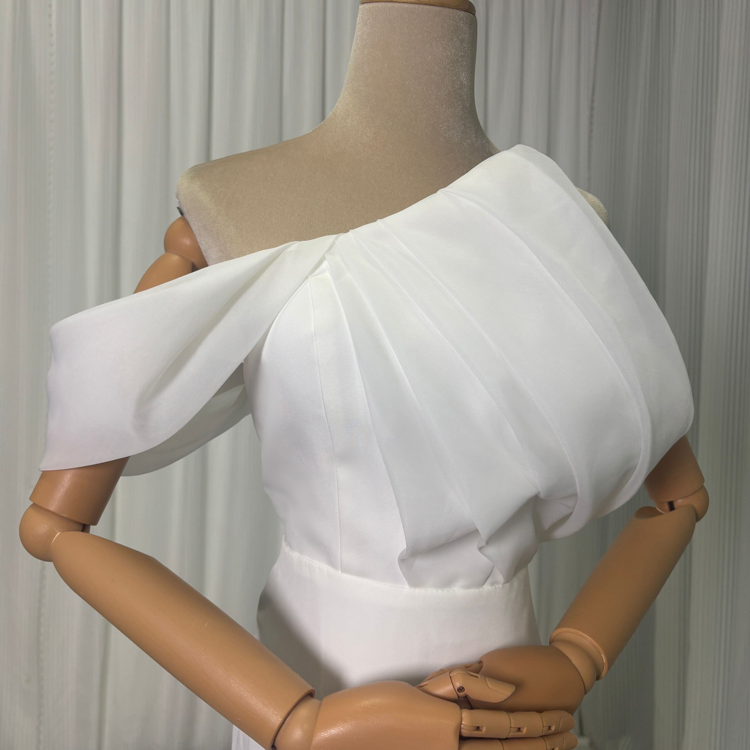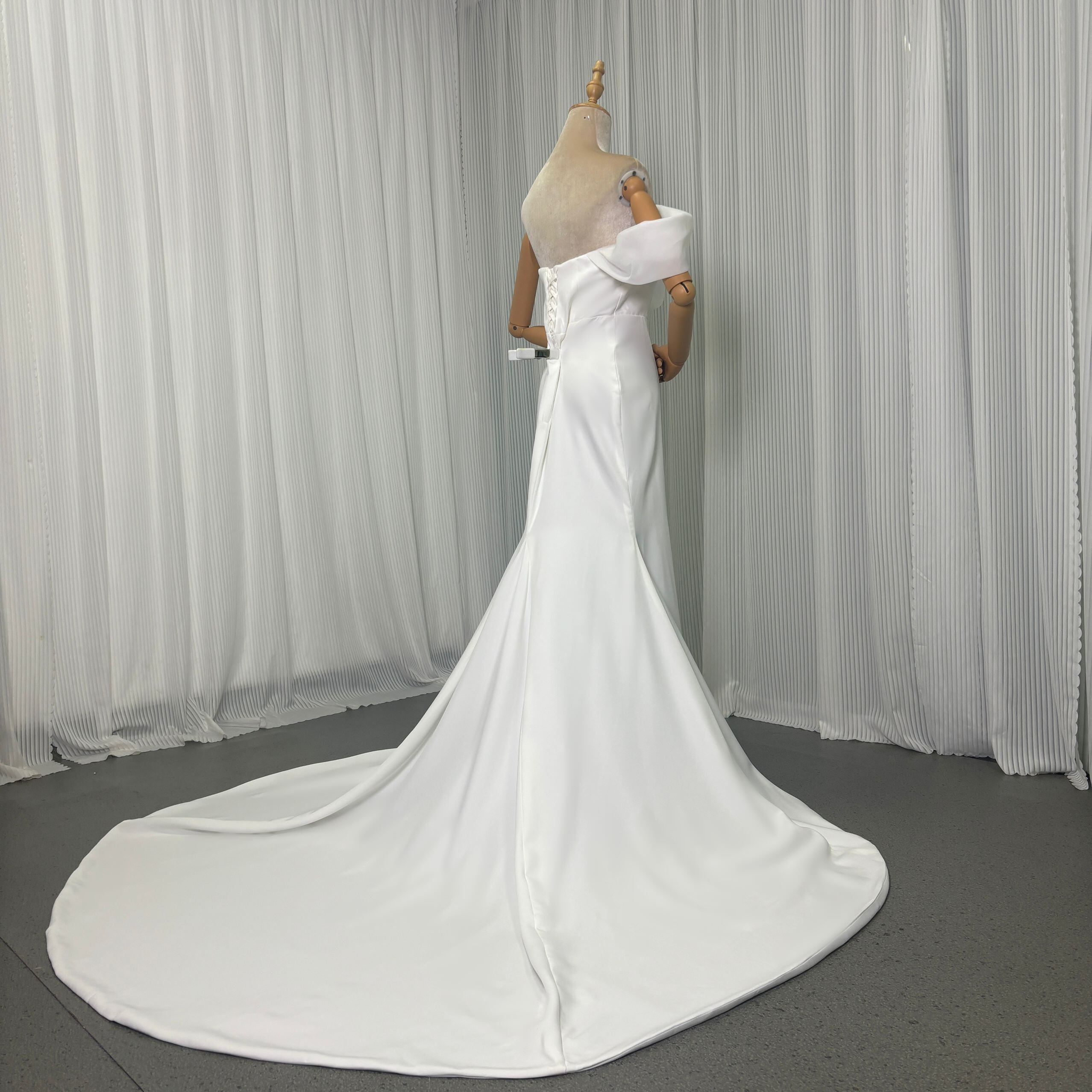 ウエディングドレス ワンショルダー マーメイドライン クレープ生地 ロングトレーン 結婚式