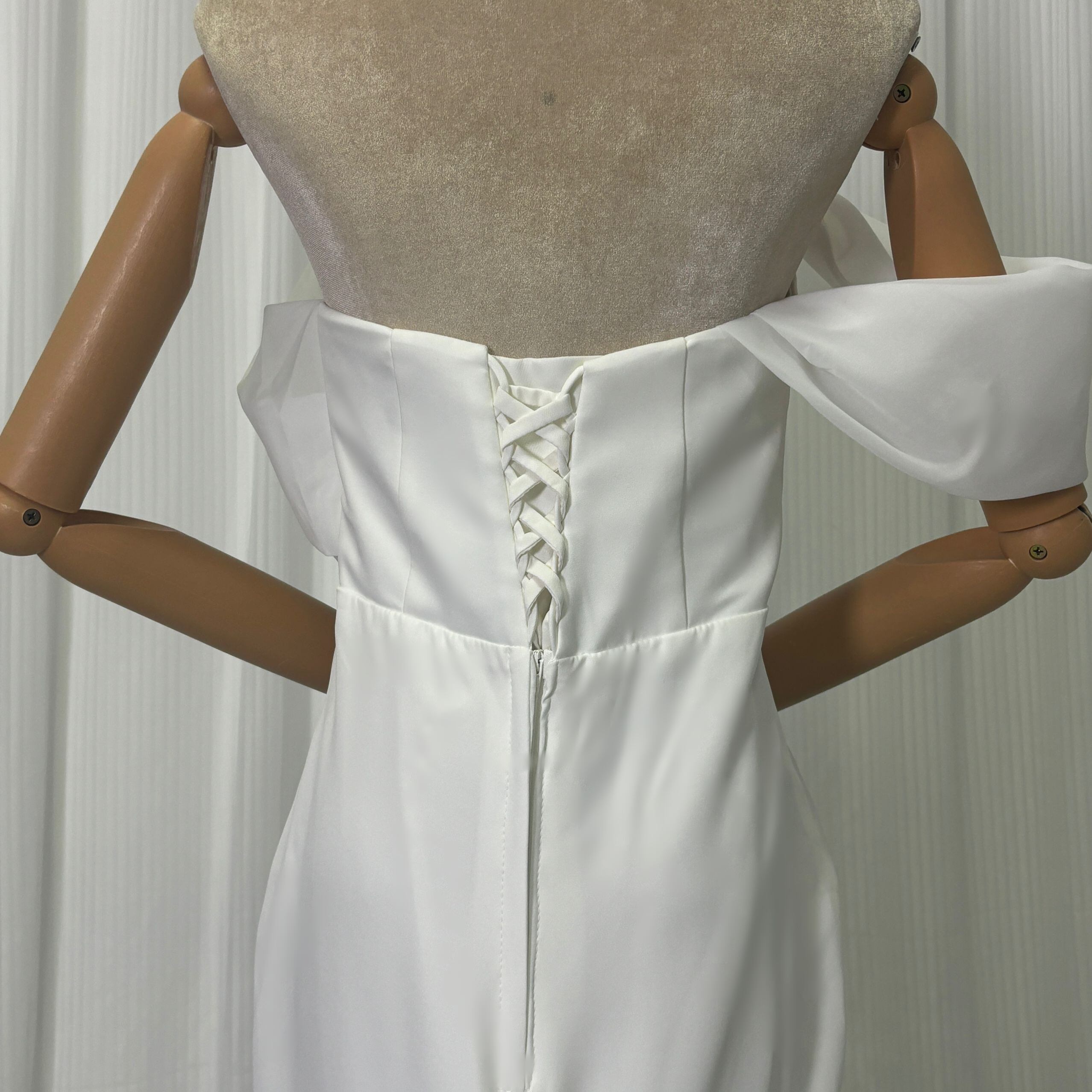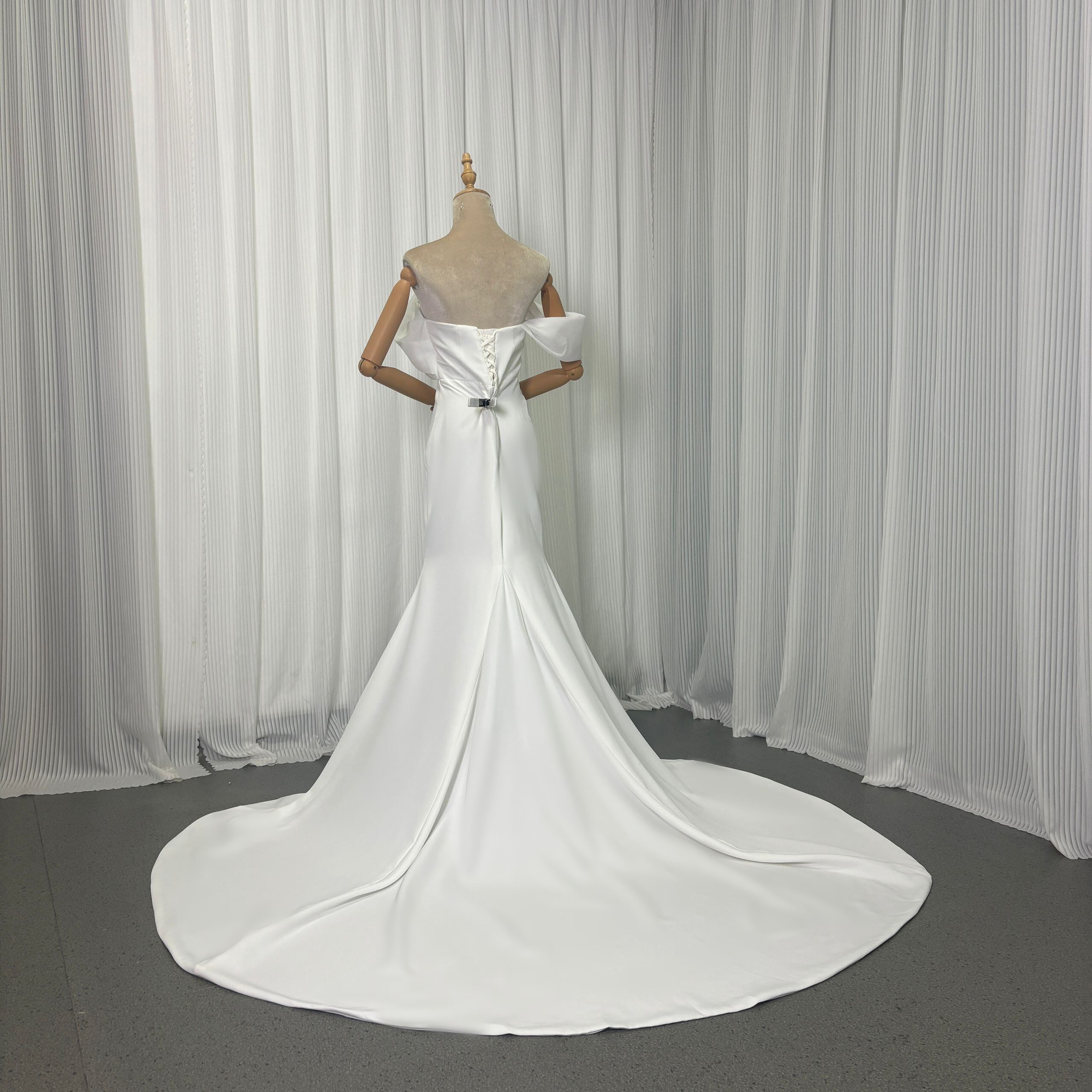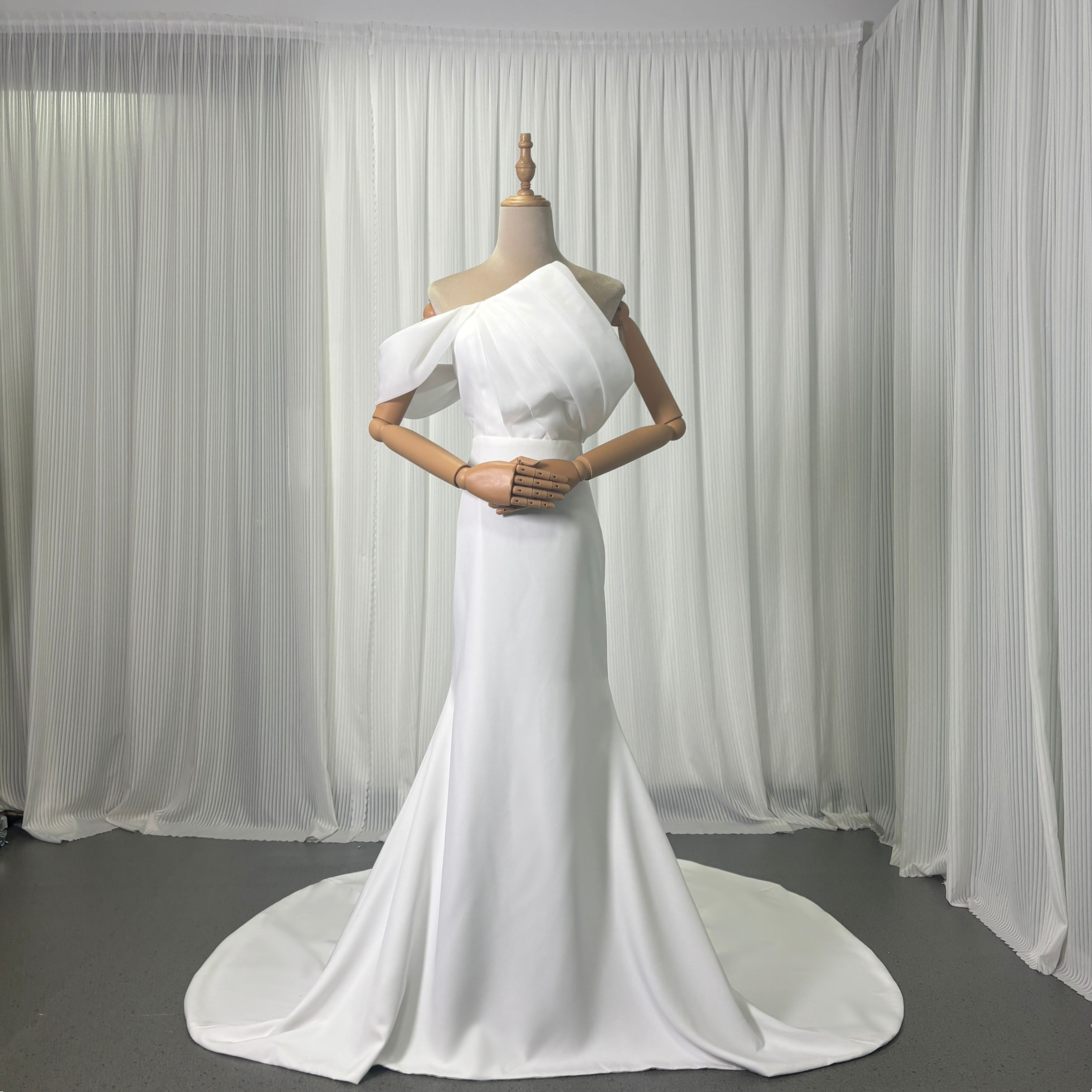 ウエディングドレス ワンショルダー マーメイドライン クレープ生地 ロングトレーン 結婚式