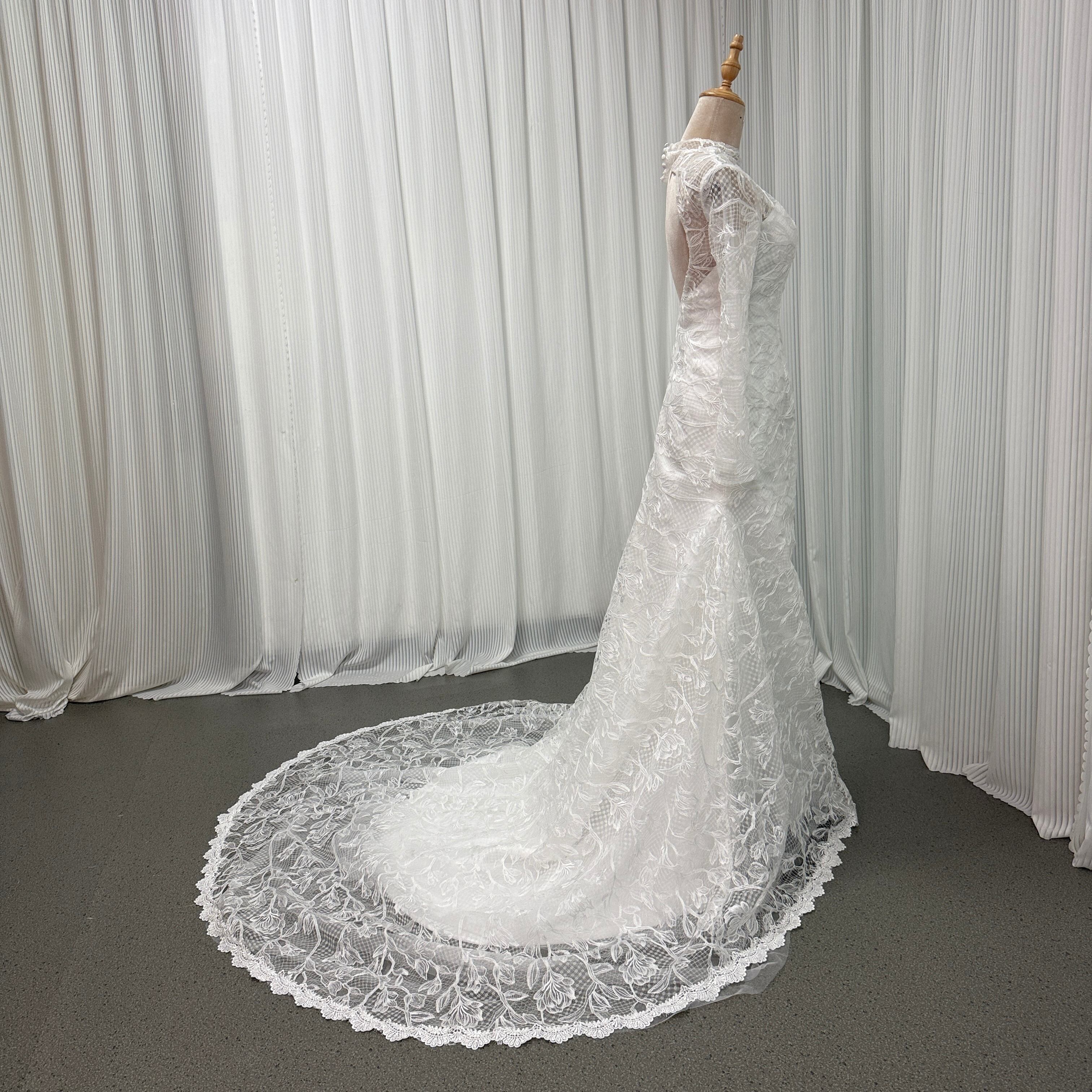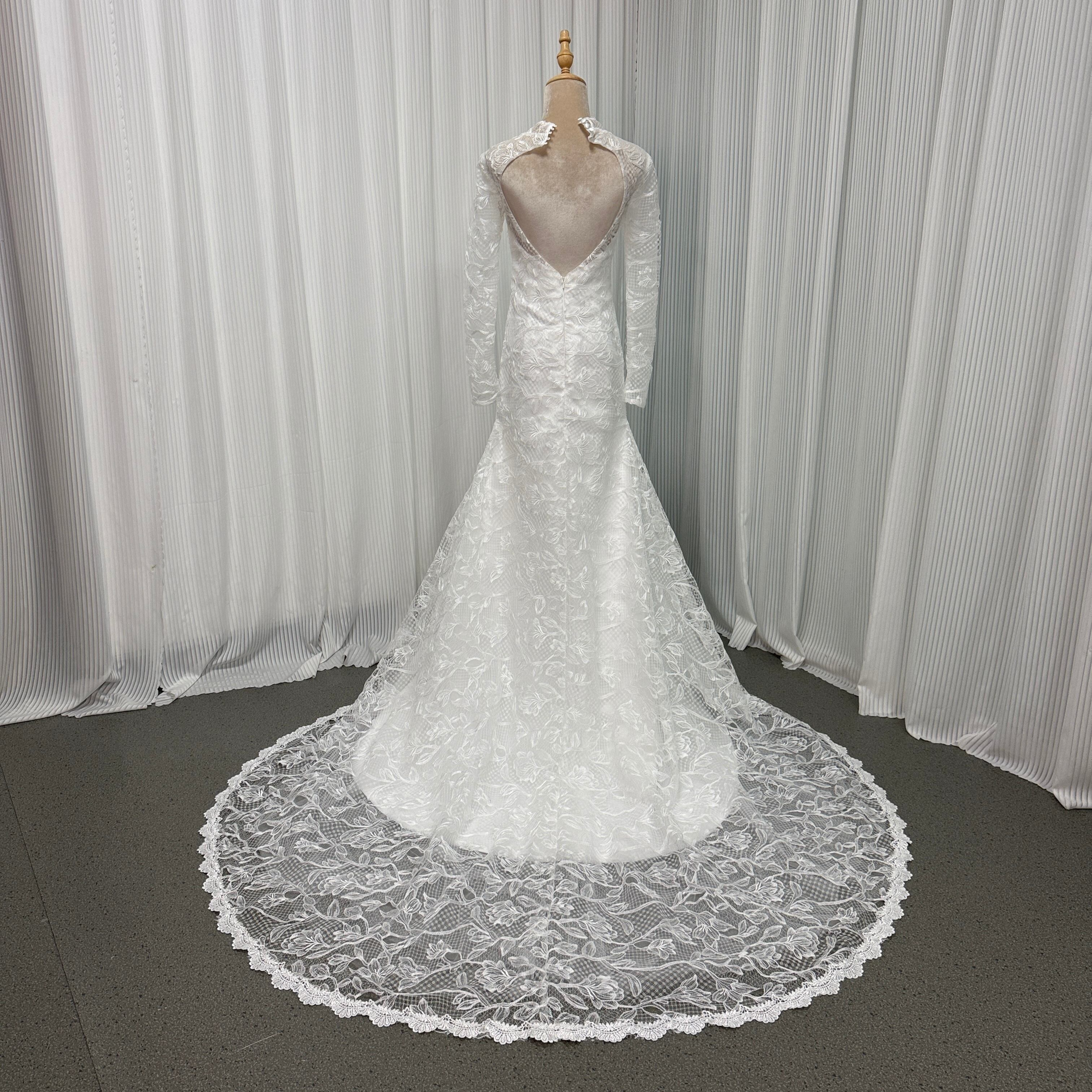 ウェディングドレス ロングスリーブ バックレス マーメイドライン 贅沢な総レース 結婚式/披露宴