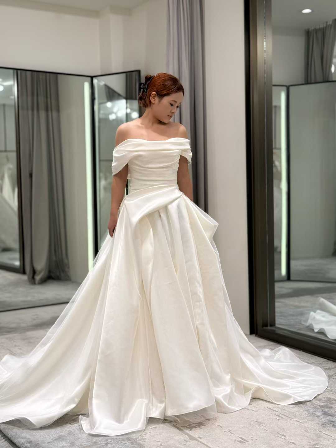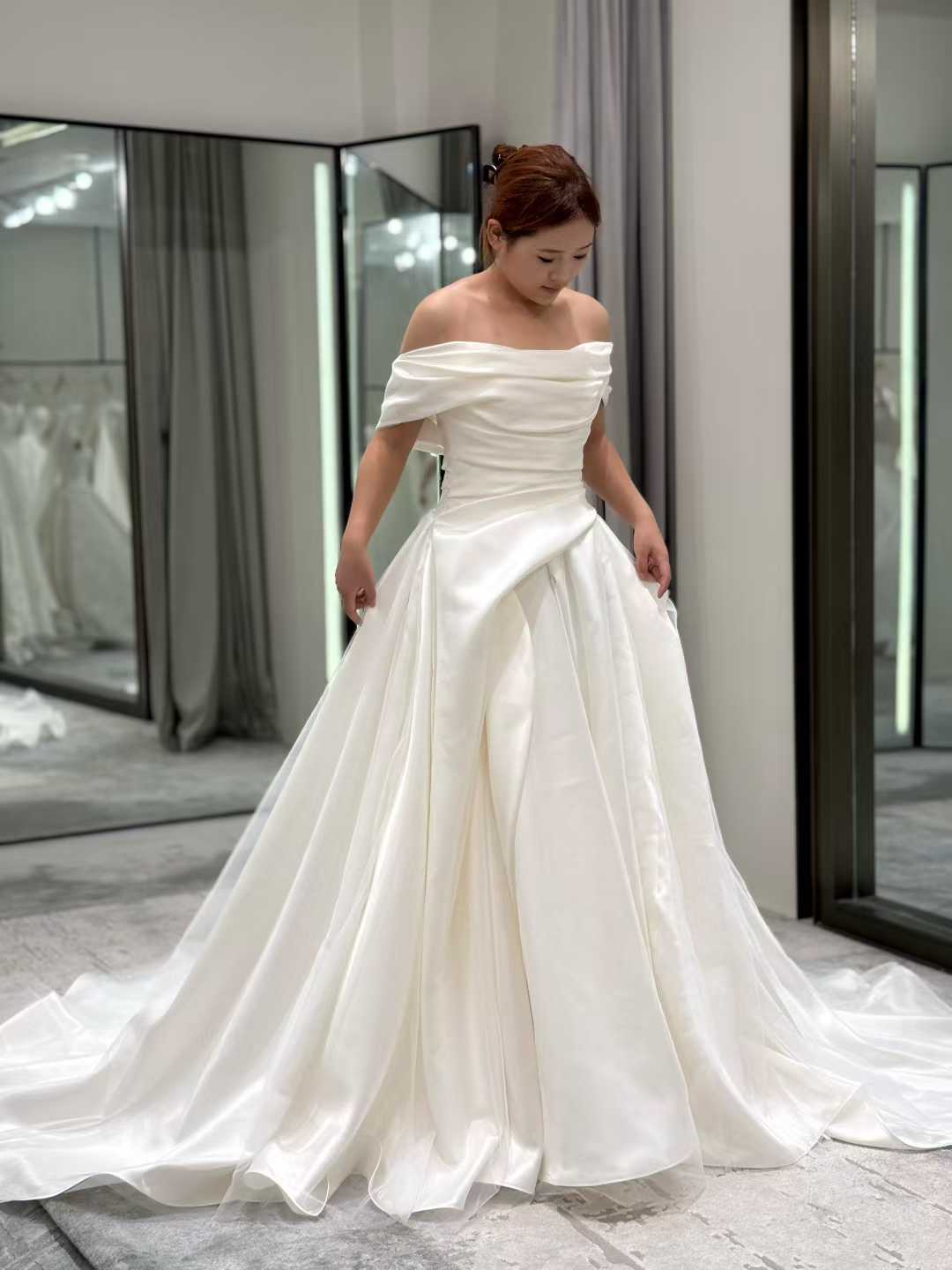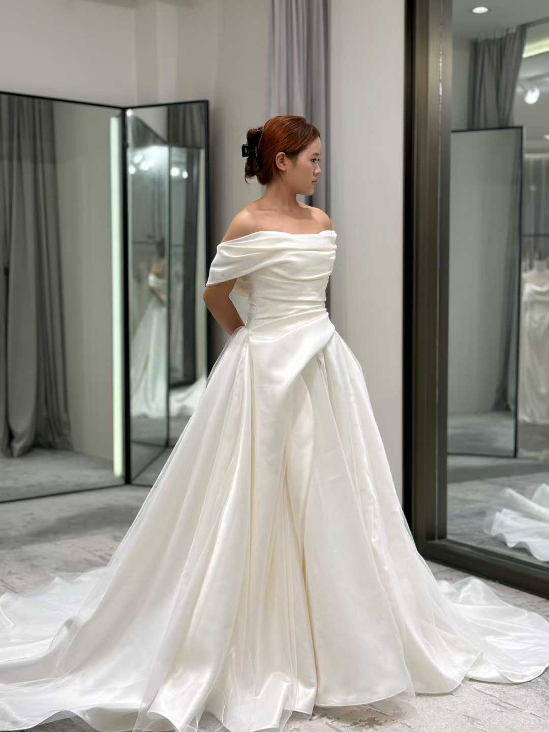 ウェディングドレス アシンメトリードレス オフショルダー ハンドドレープ 結婚式/披露宴