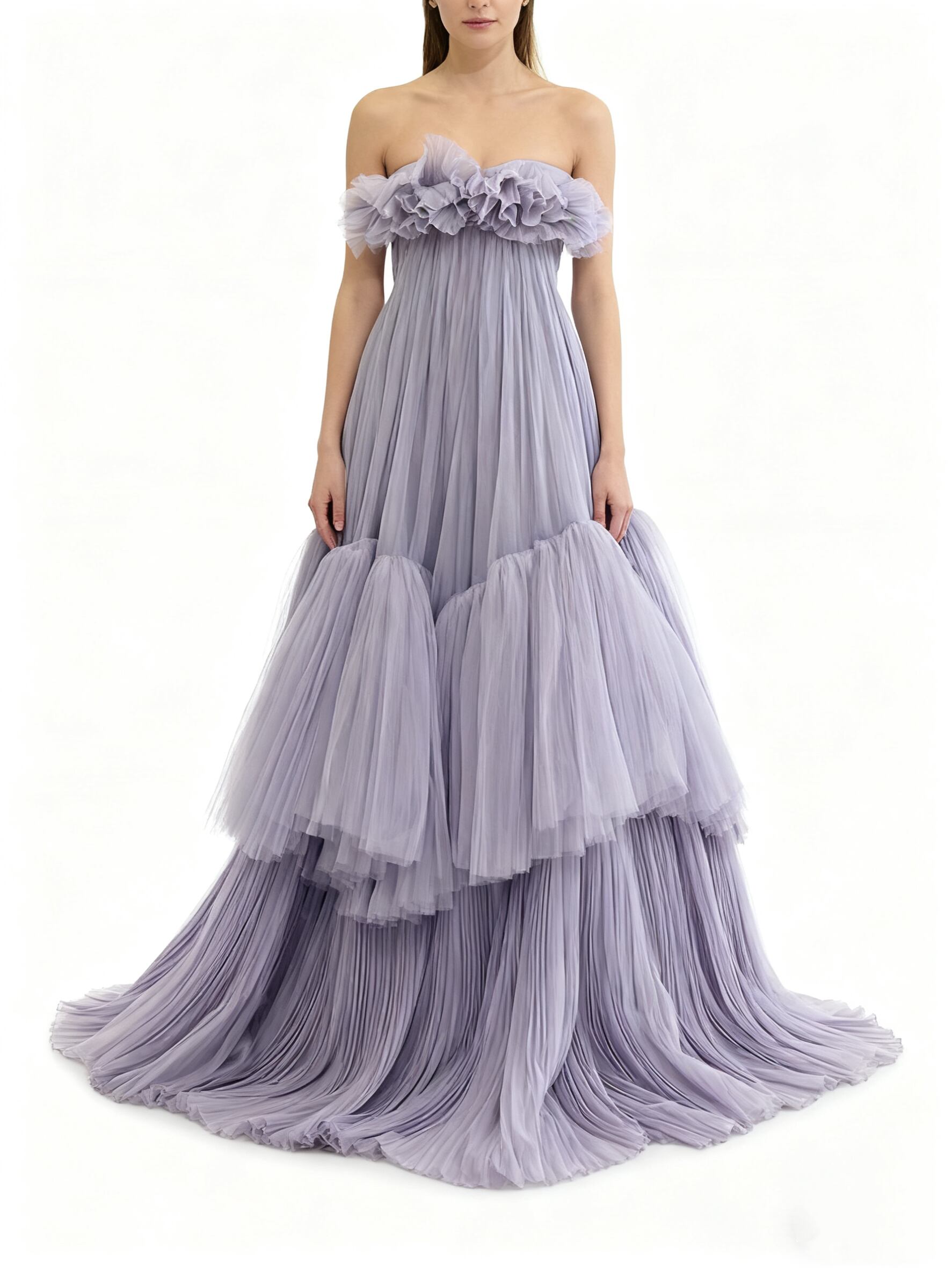 カラードレス パープル プリーツスカート アシンメトリードレス ビスチェドレス 抜群におしゃれ度が際立つ