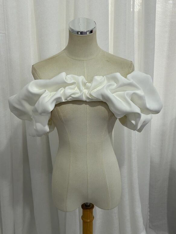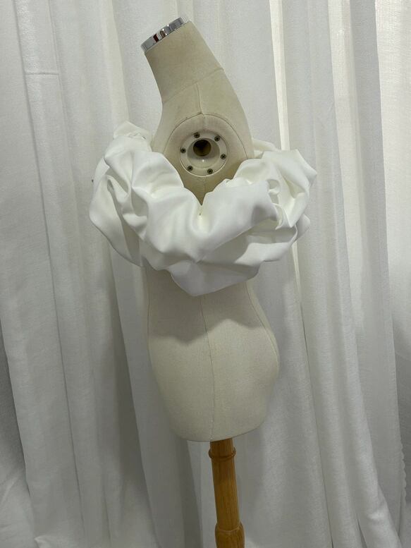 実例写真!取り外し可能なオフショルダーのみ 前撮り ラッフルフリル オフホワイト オーダーメイド可能