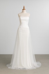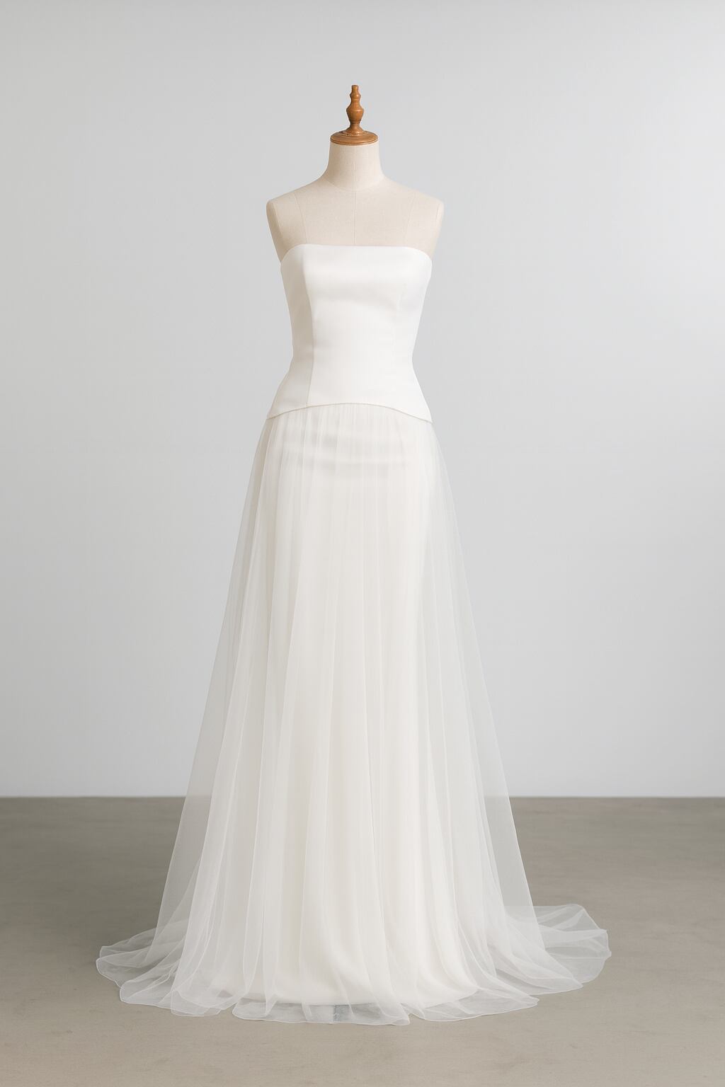 パーティードレス ビスチェドレス オフホワイト ソフトマーメイドライン チュールスカート Aライン