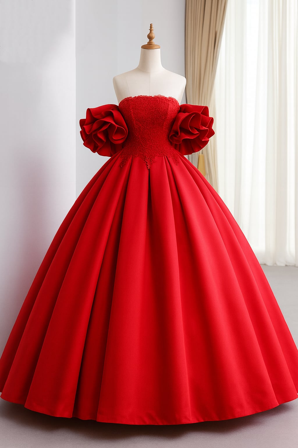 カラードレス フリル袖 ワインレッド 魅惑の花レース マット生地 結婚式 アンティーク色 花嫁 エレガント
