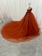 カラードレス テラコッタ色 ベアトップ サッシュベルト 結婚式 ブライダル エレガント オーガンジー 前撮り
