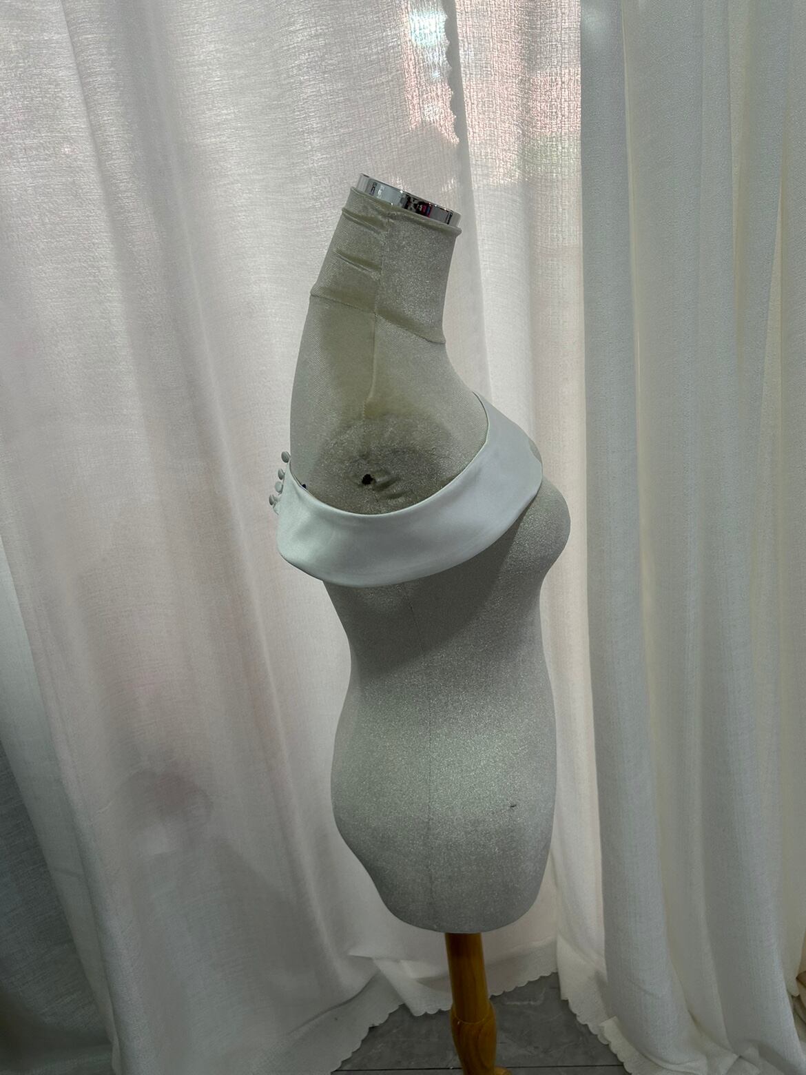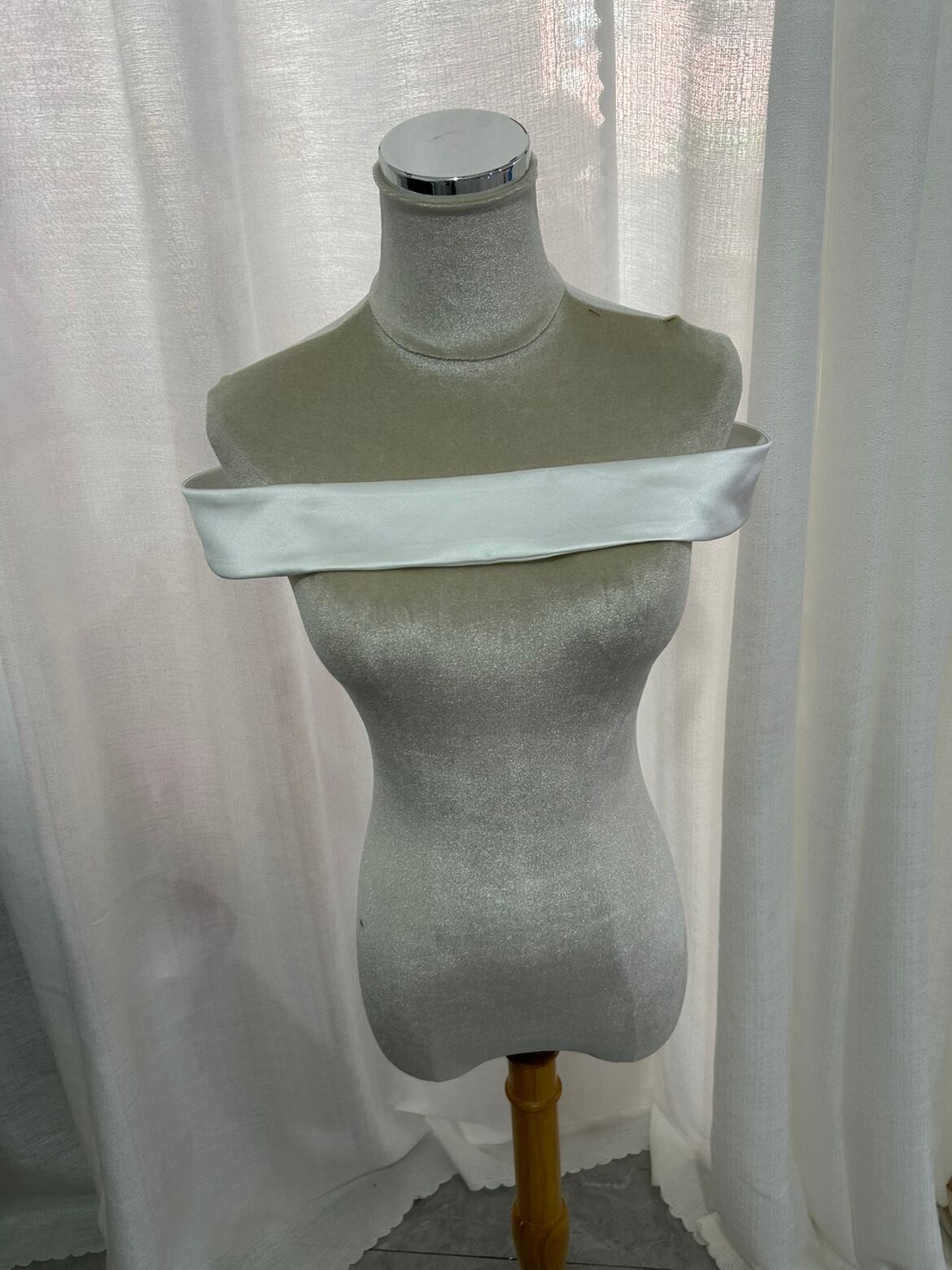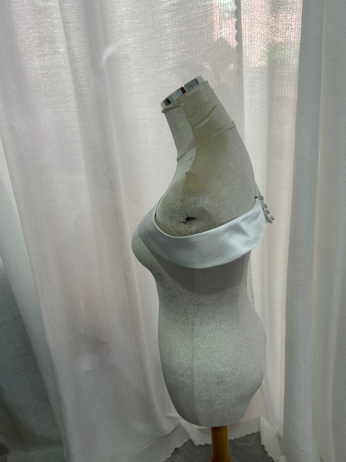 取り外し可能なオフショルダー くるみボタン 光沢サテン オフホワイト 色直し 花嫁/ウェディングドレス