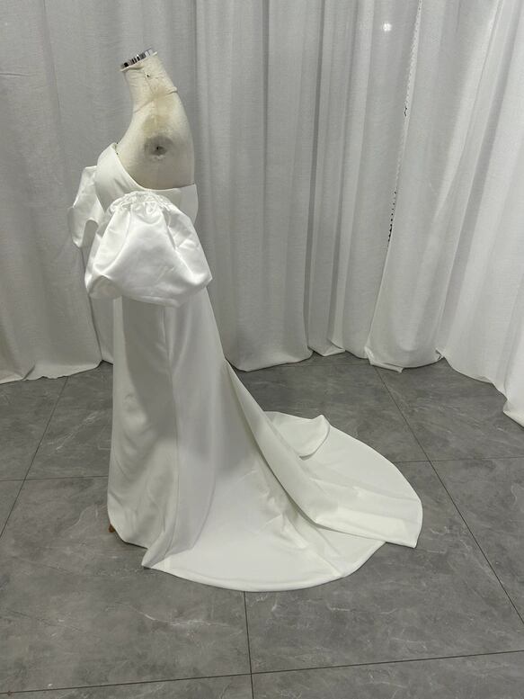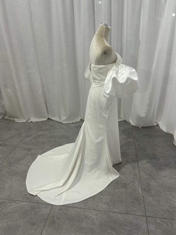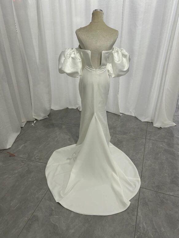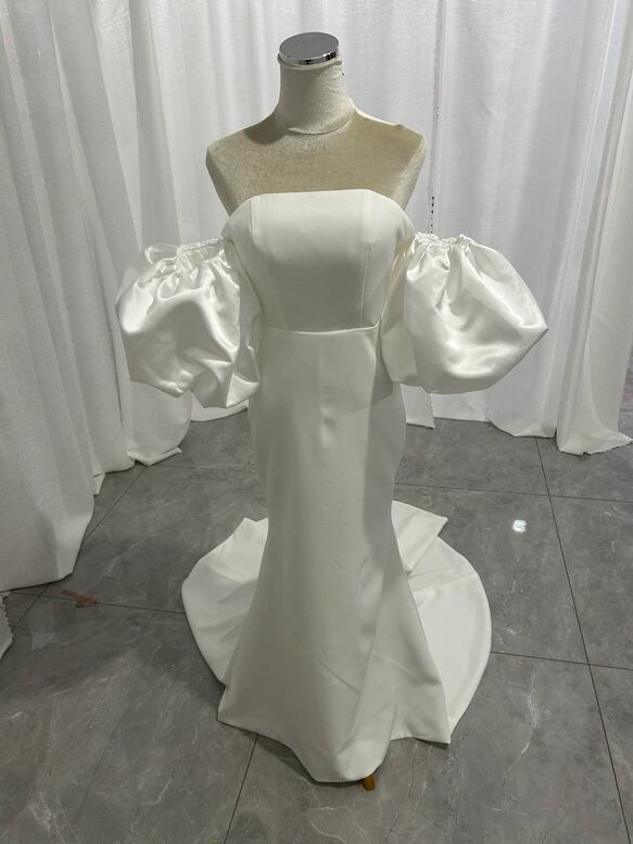 パーティードレス オフホワイト ベアトップ パフスリーブ マーメイドライン ファスナー 2次会/合コン