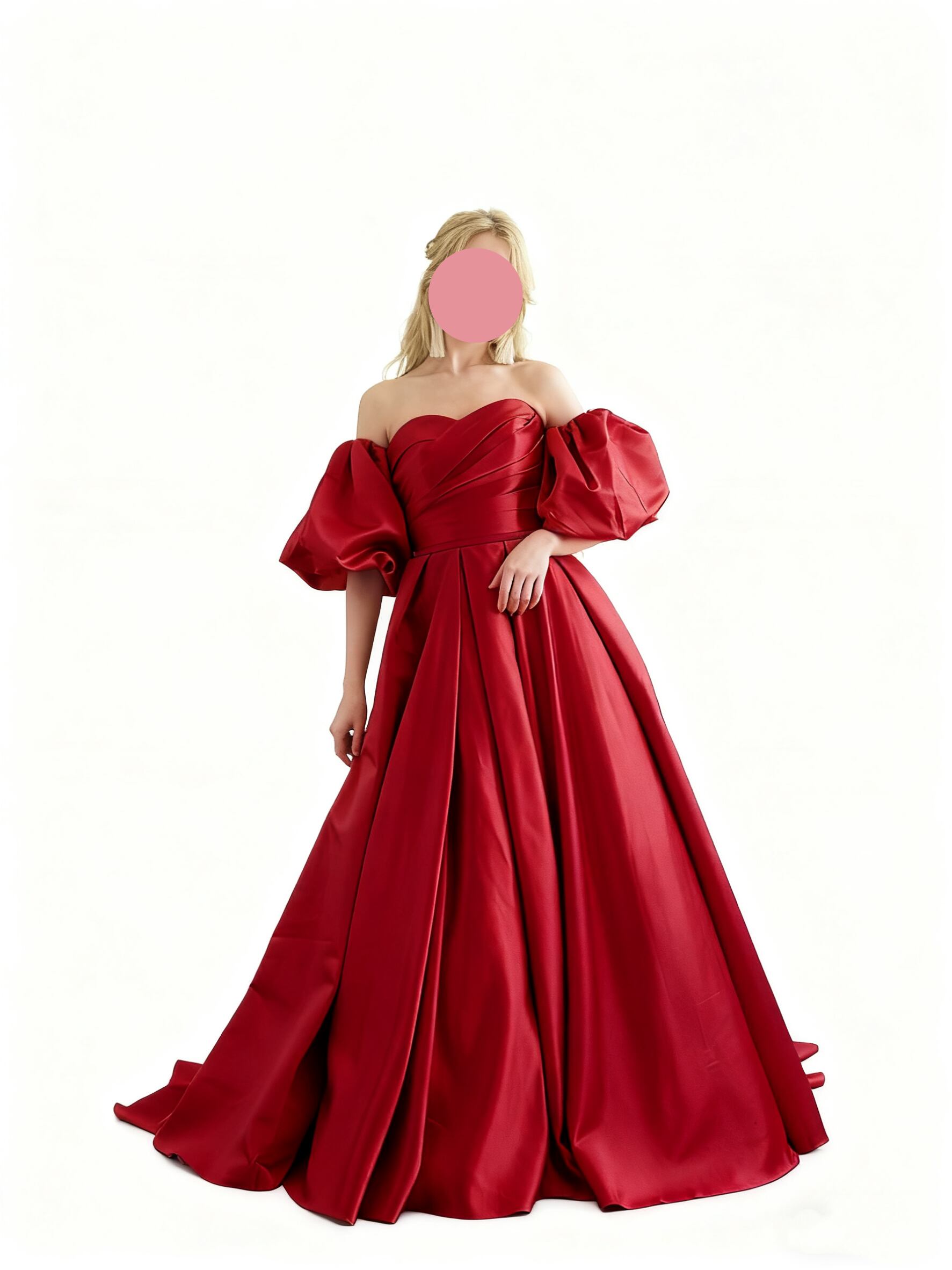 カラードレス パフスリーブドレス Aライン ボルドー色 結婚式 スリット スレンダーライン
