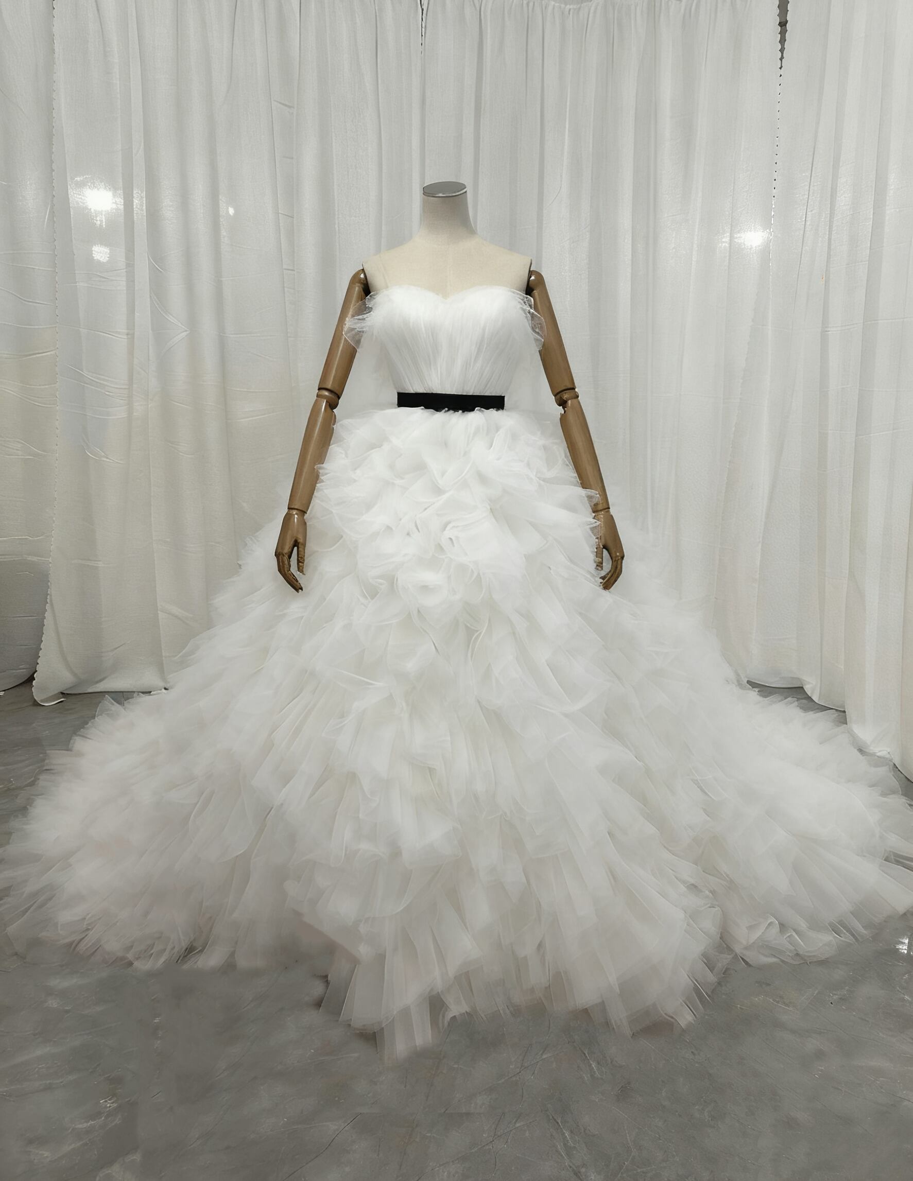 ウェディングドレス ビスチェドレス サッシュベルト もこもこドレス オフホワイト 結婚式/披露宴