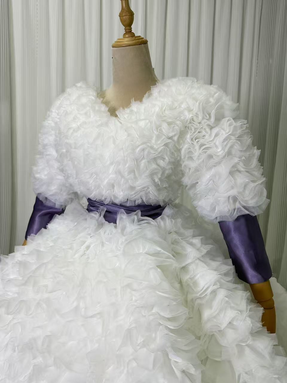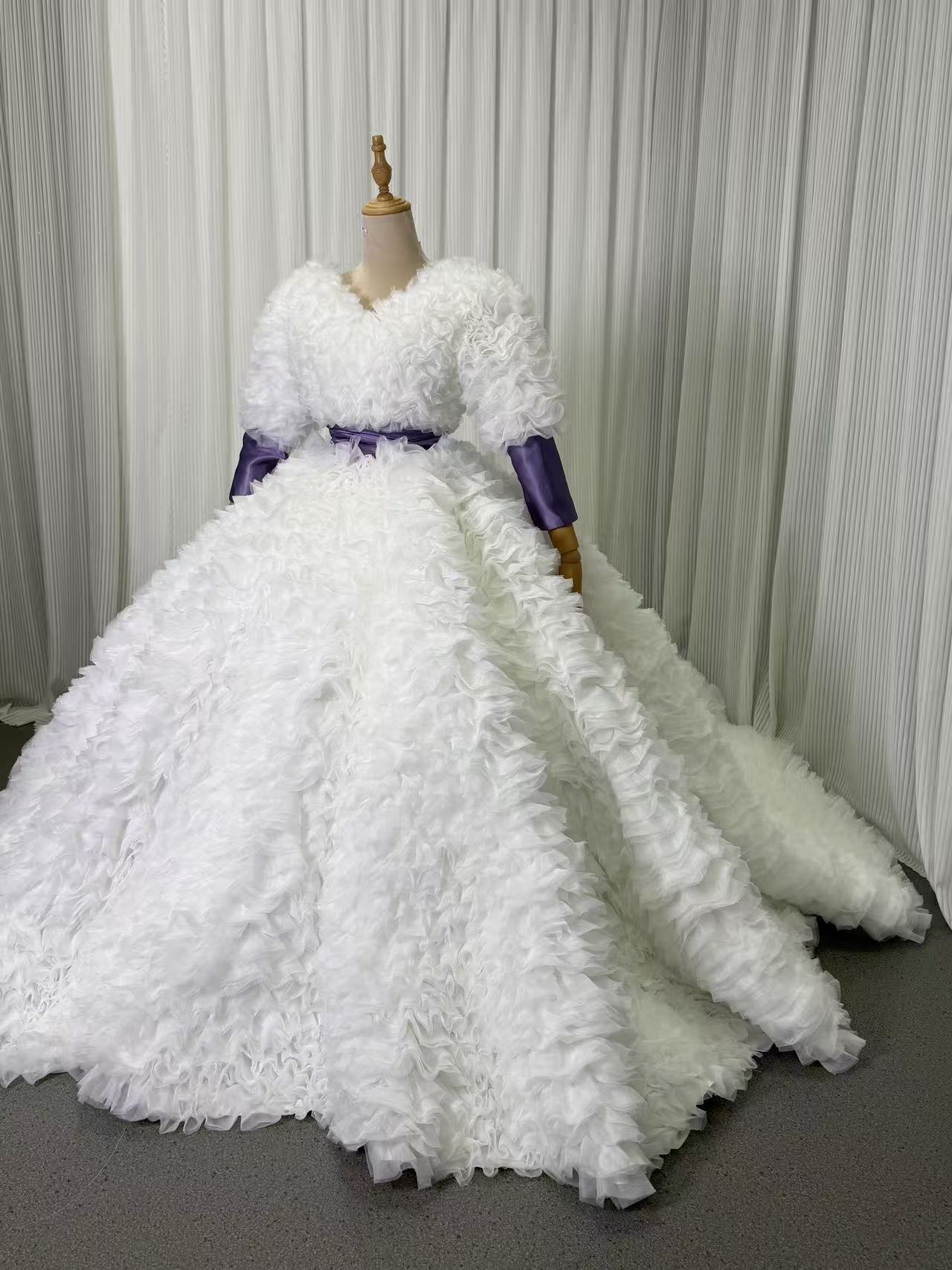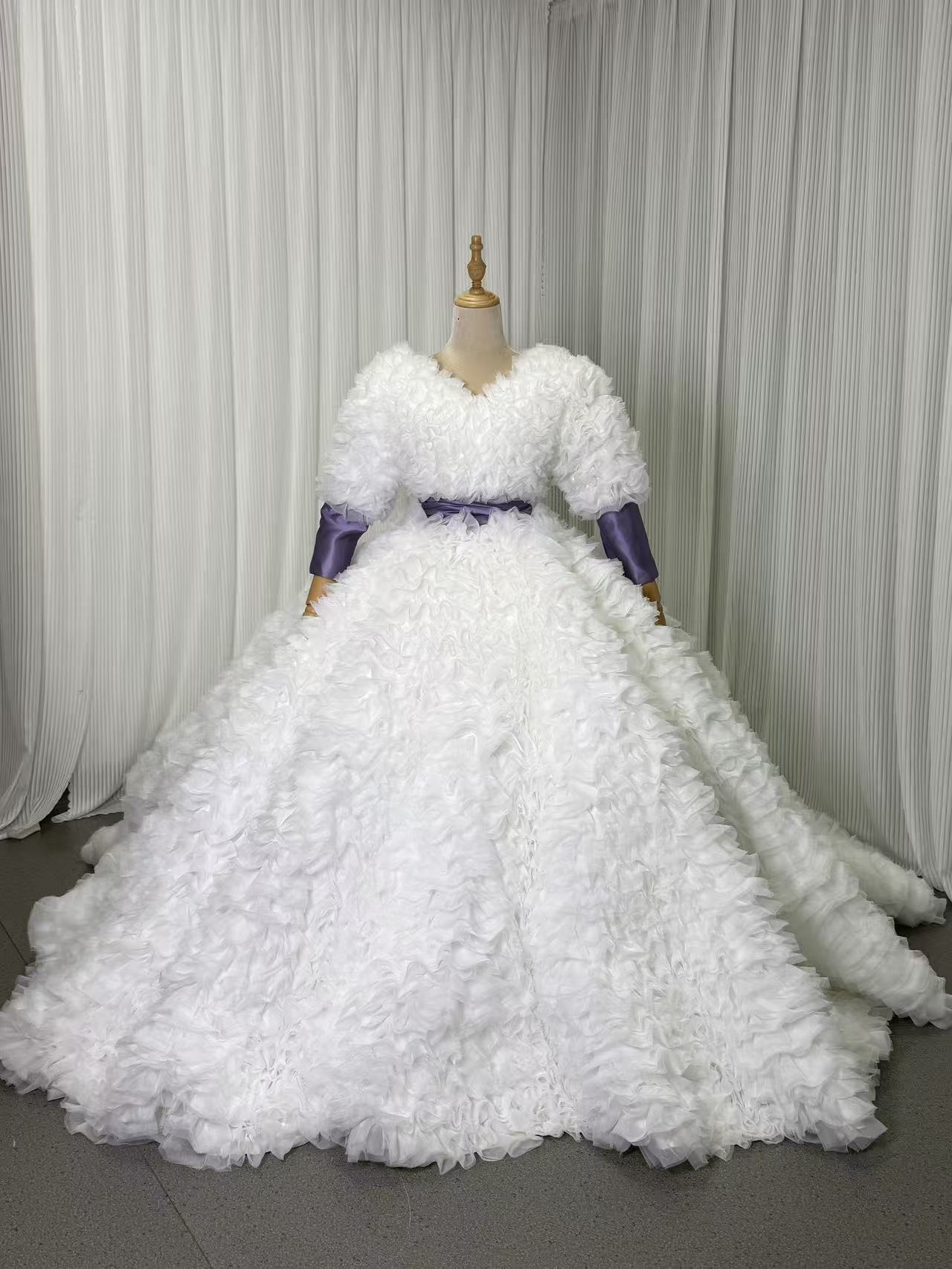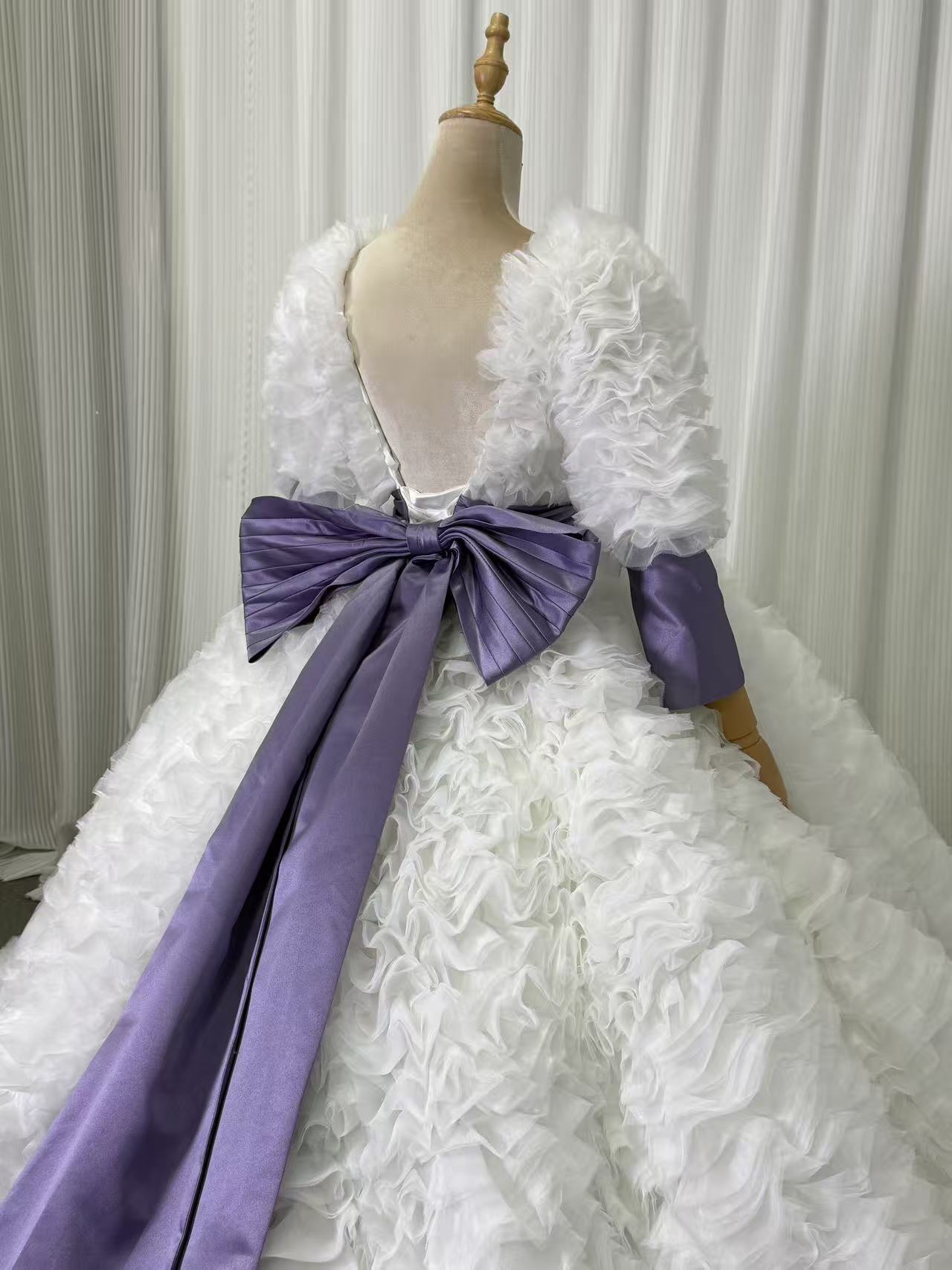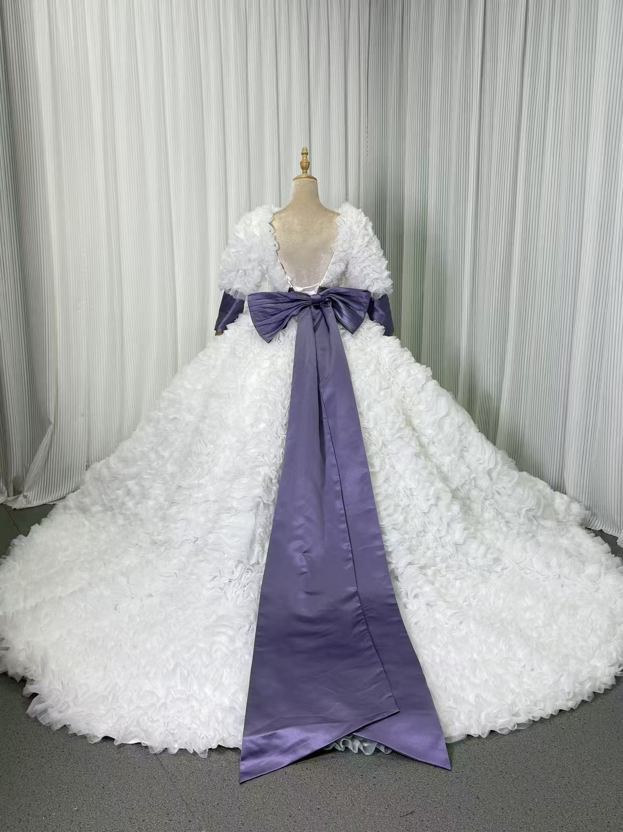 ウェディングドレス ロングスリーブ もこもこドレス ふっくら柔らかなバックリボン 背中見せ プリンセスライン