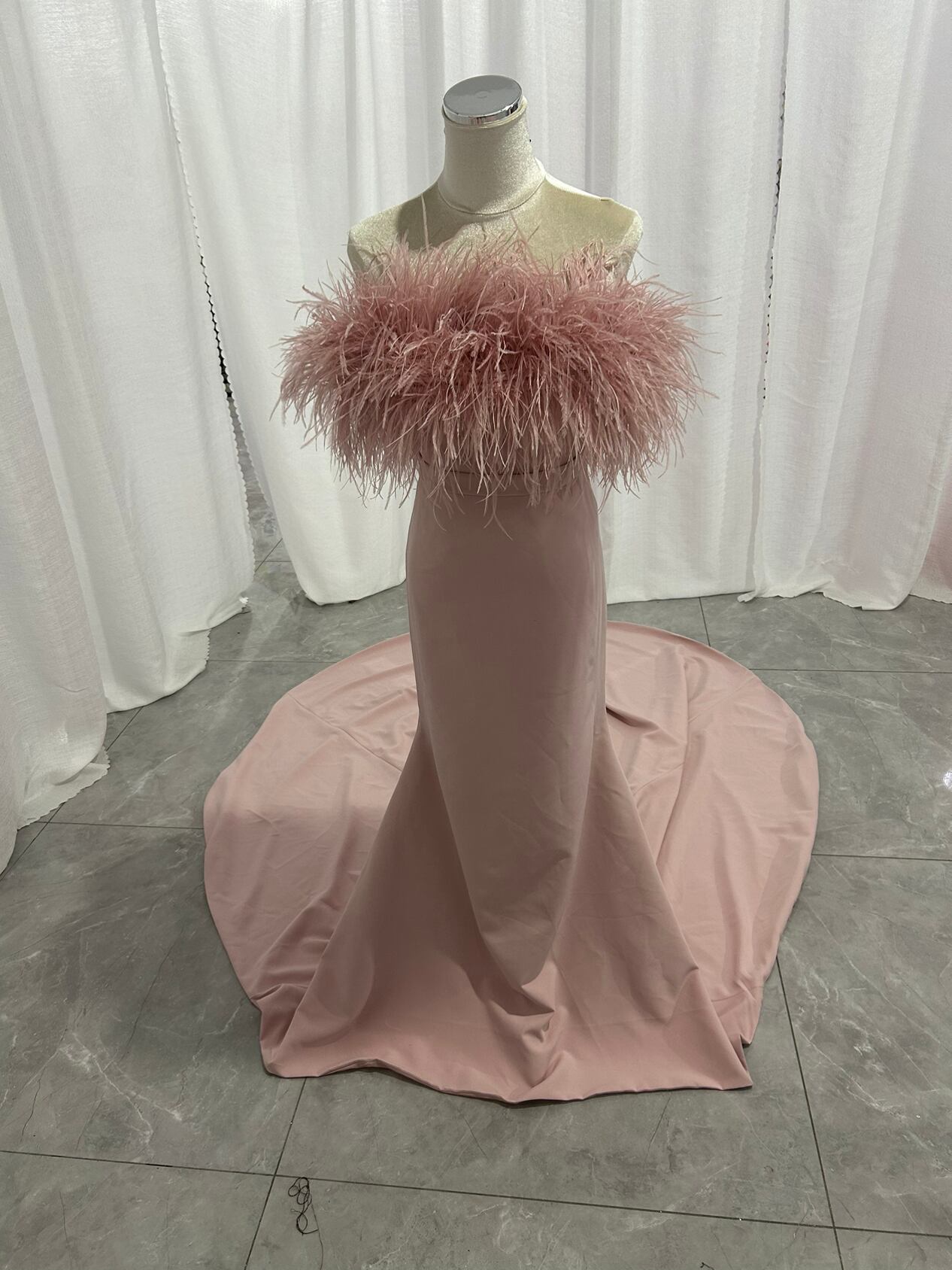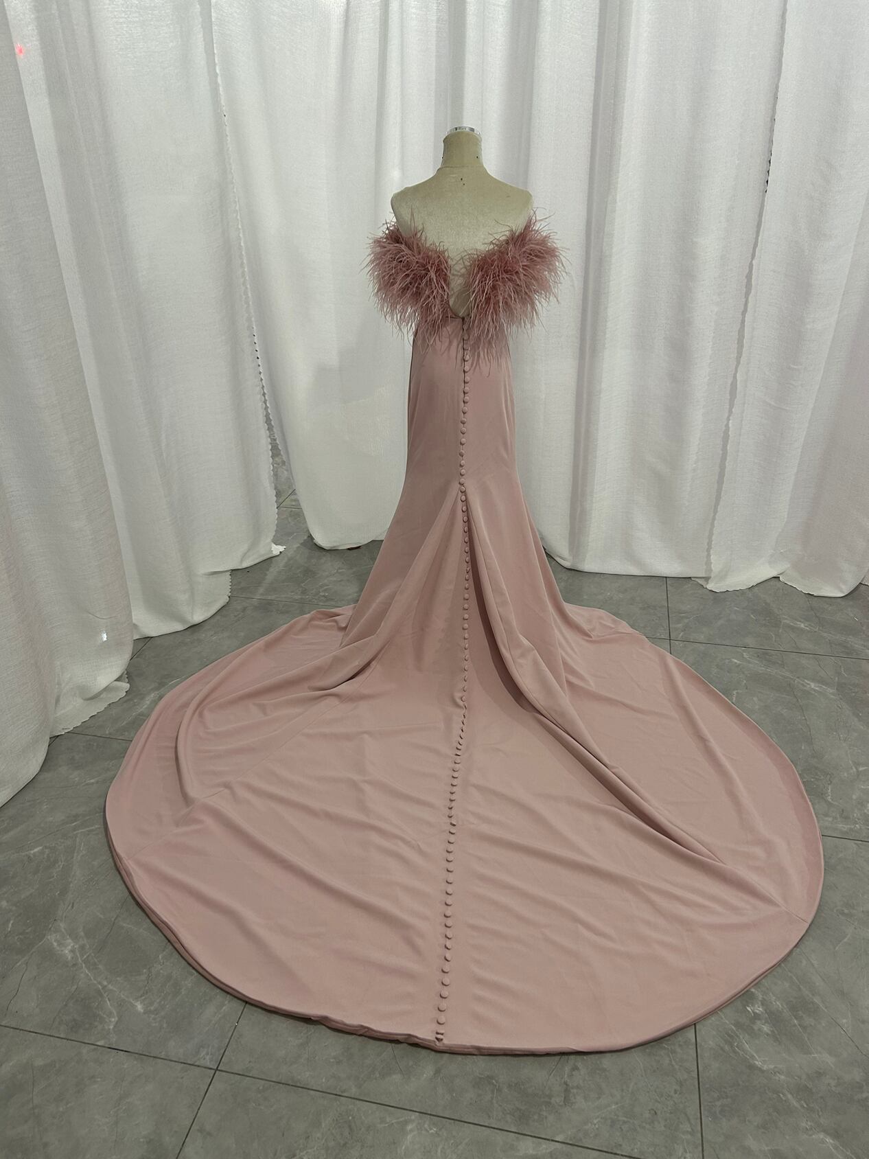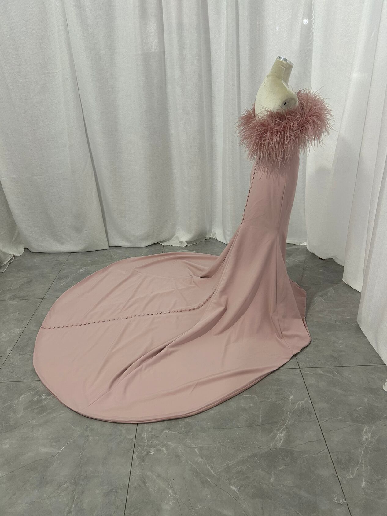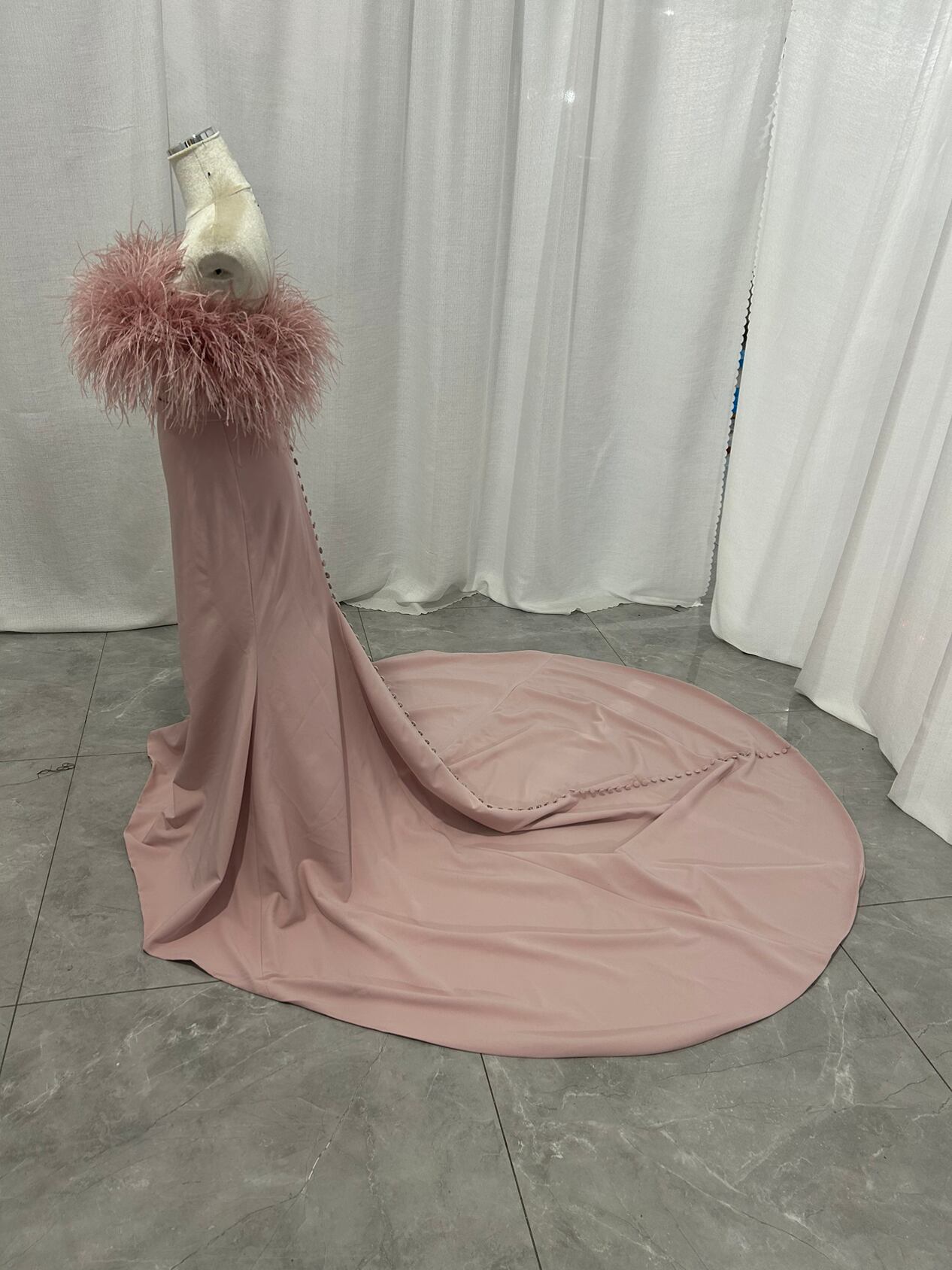 オーストリッチ カラードレス ピンク クレープ生地 ベアトップ くるみボタン 披露宴/結婚式