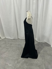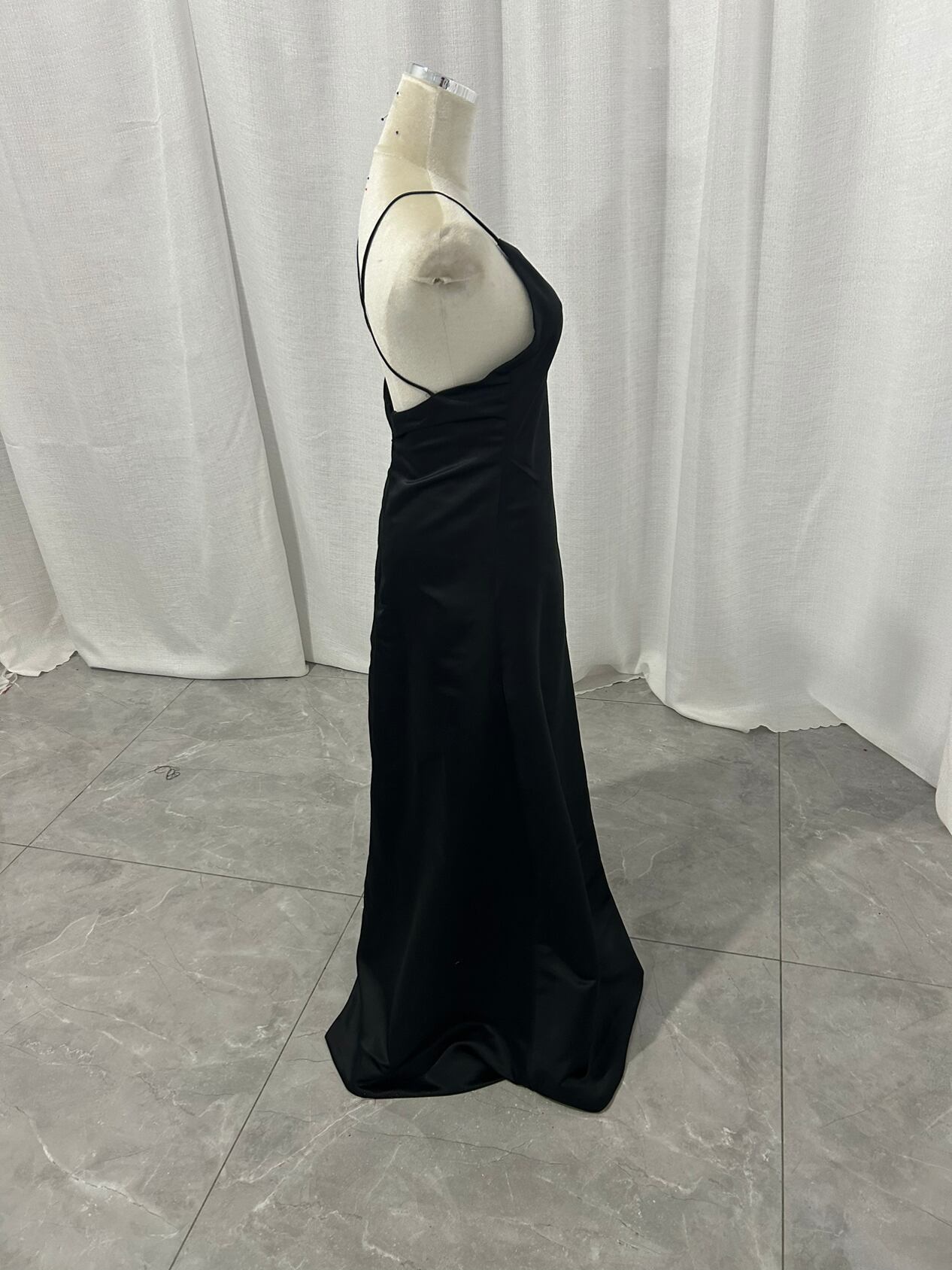 パーティードレス キャミソール ミニマリズム 背中見せ ブラック 光沢サテン 床付く 前撮り