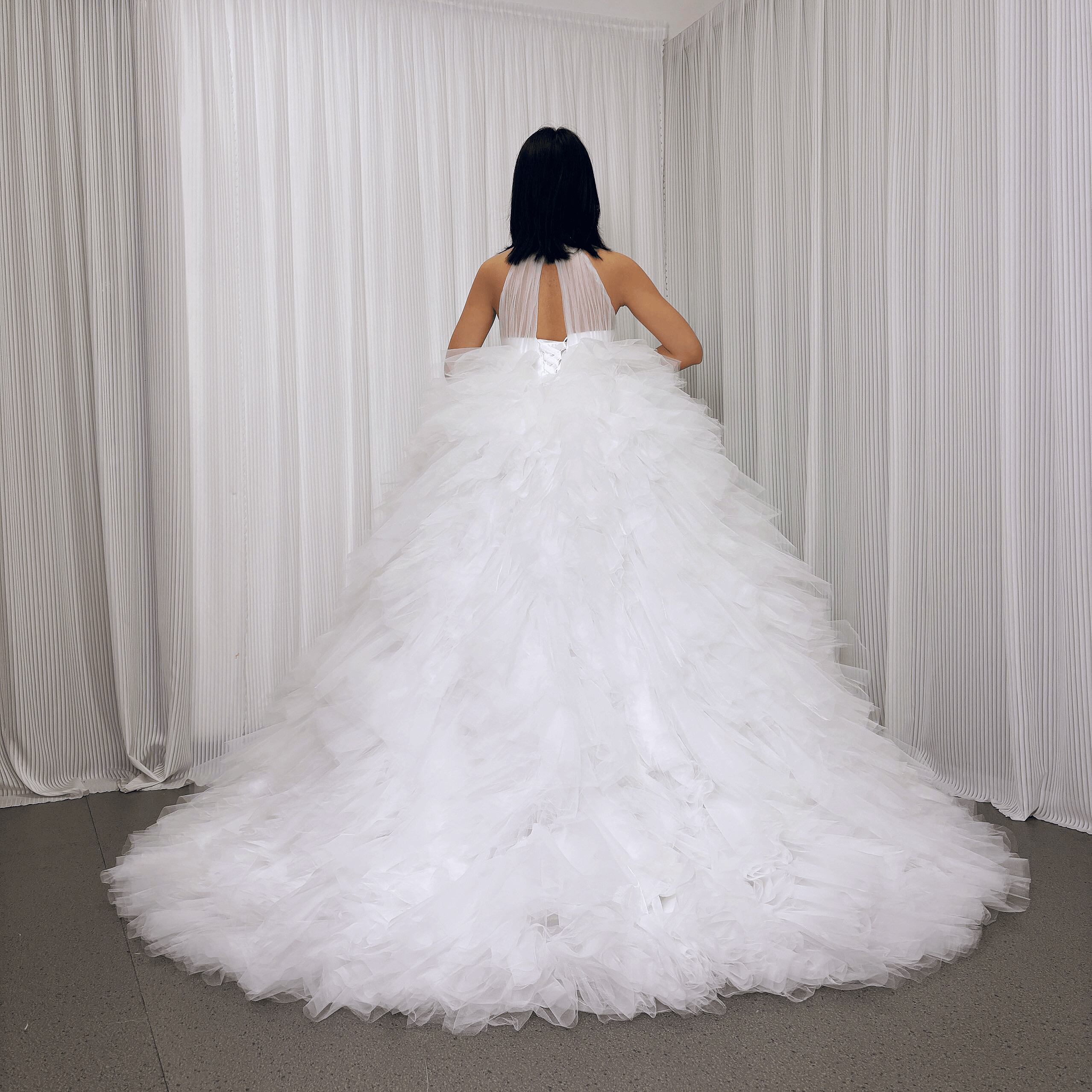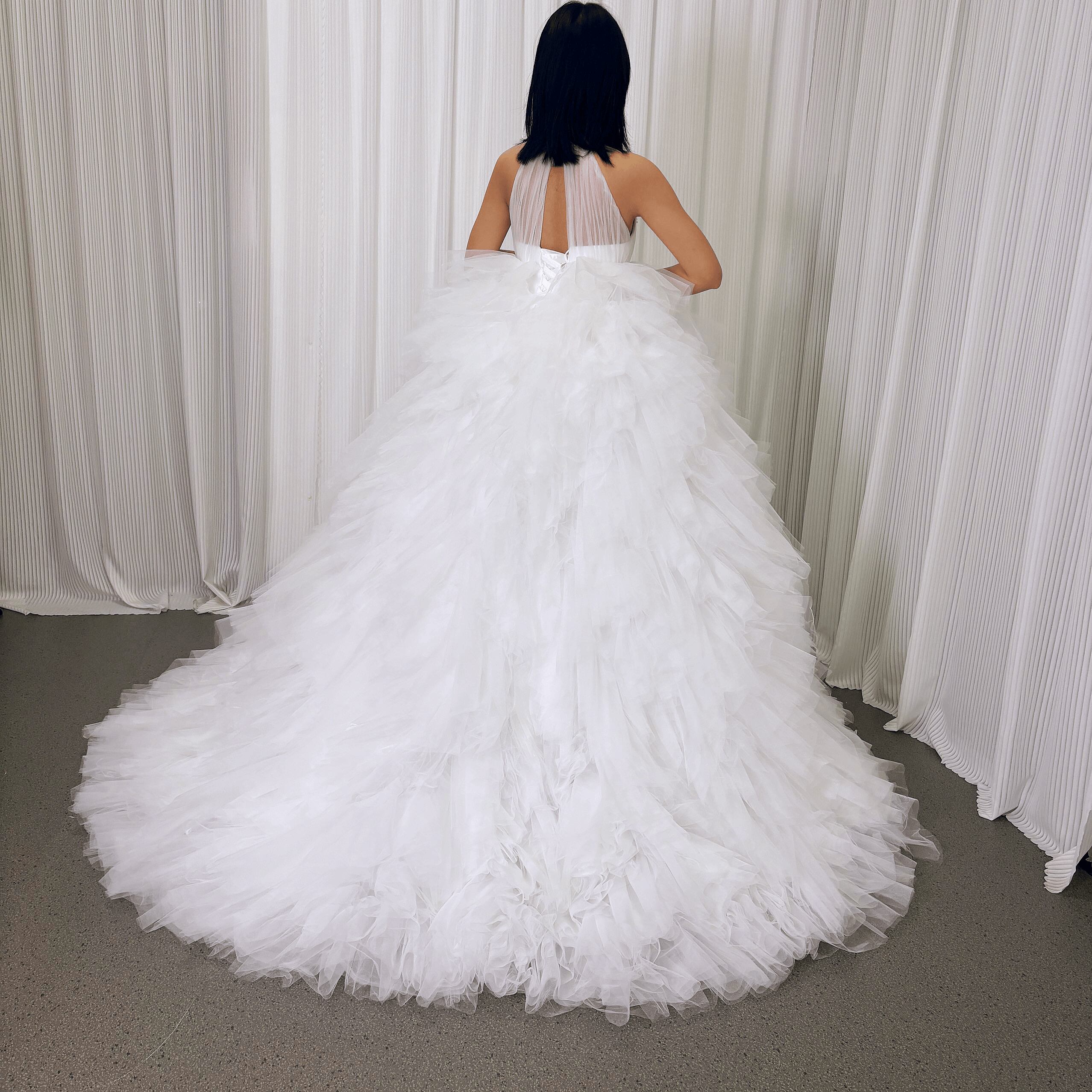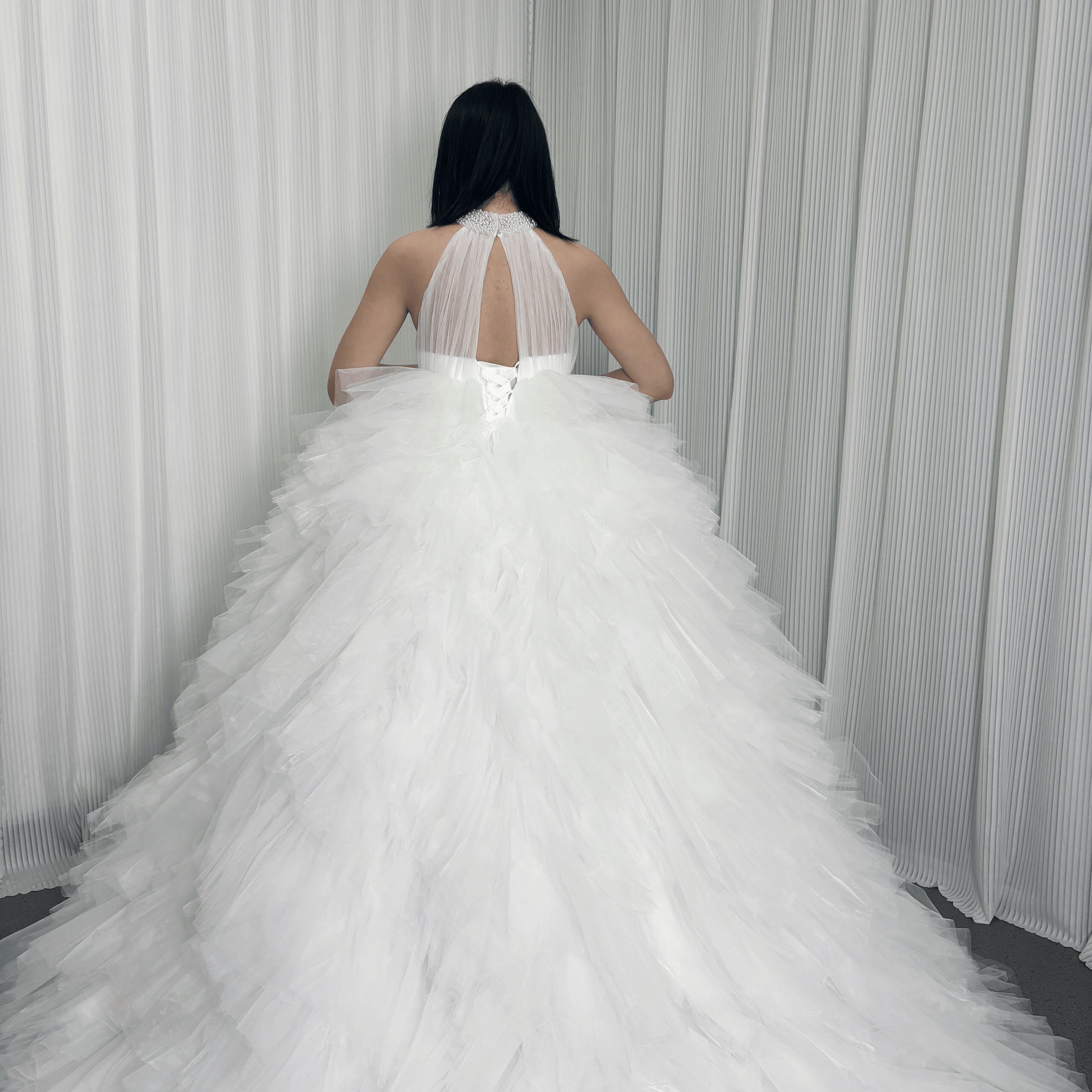 ウェディングドレス アメスリ パール もこもこドレス プリンセスライン ソフトチュール 花嫁 ノースリーブ