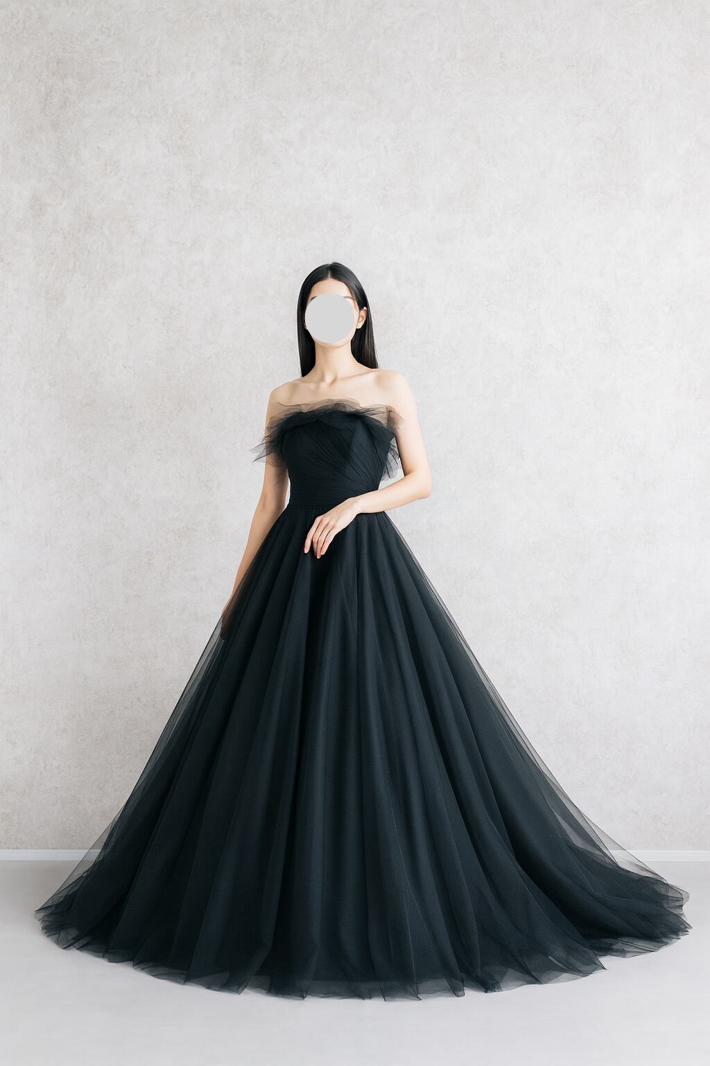 カラードレス ブラック スレンダーライン ビスチェドレス チュールスカート 優雅なシルエット 前撮り