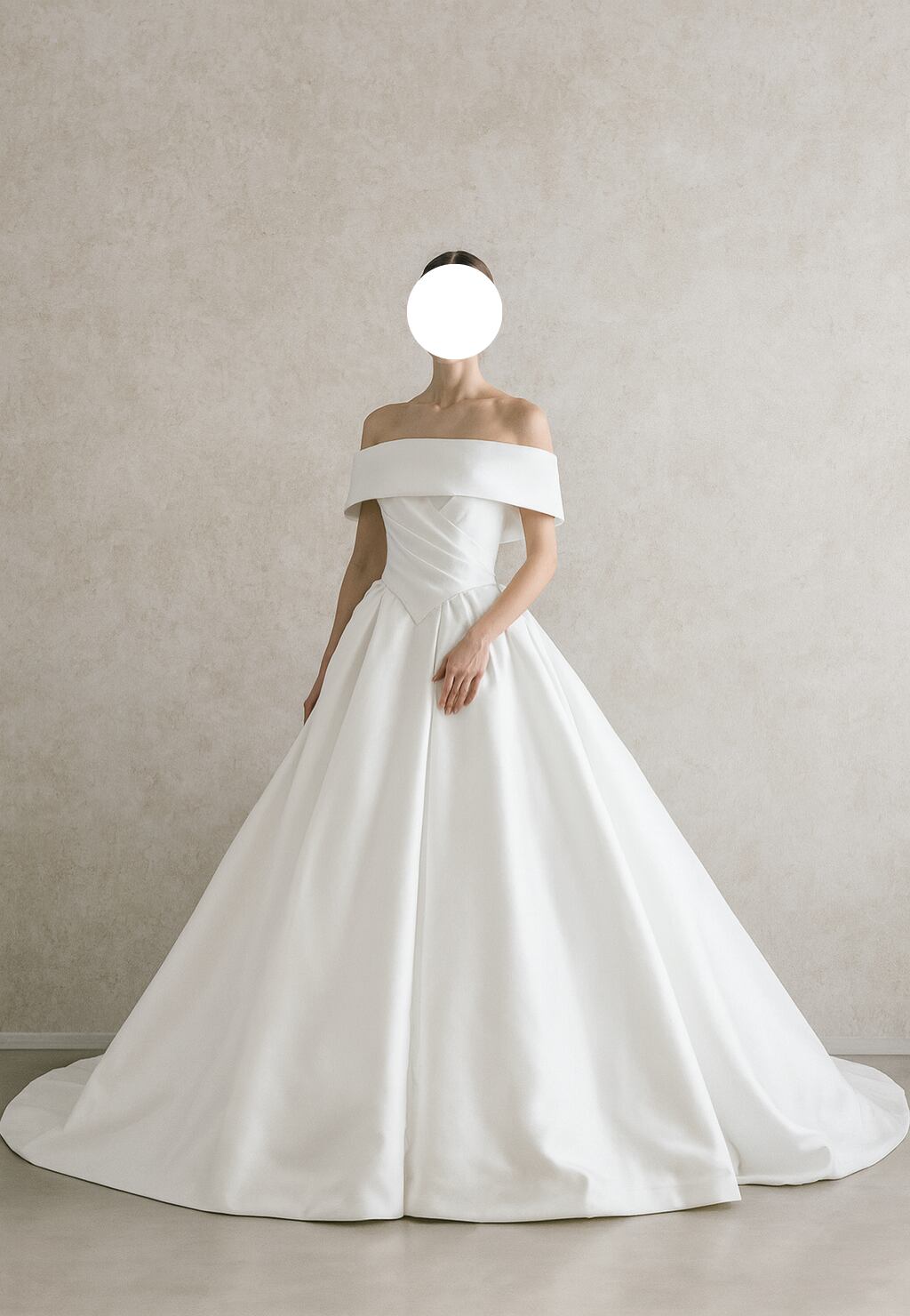ウェディングドレス オフショルダー マット生地 スレンダーライン オフホワイト フレアスカート 結婚式/披露宴 エレガント