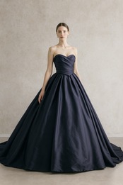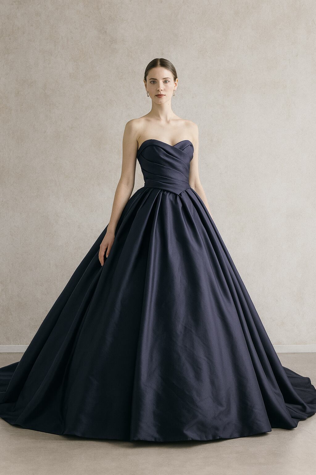 カラードレス ネイビー ベアトップ スレンダーライン エレガント ハンドドレープ 結婚式/披露宴 アンティークなドレス