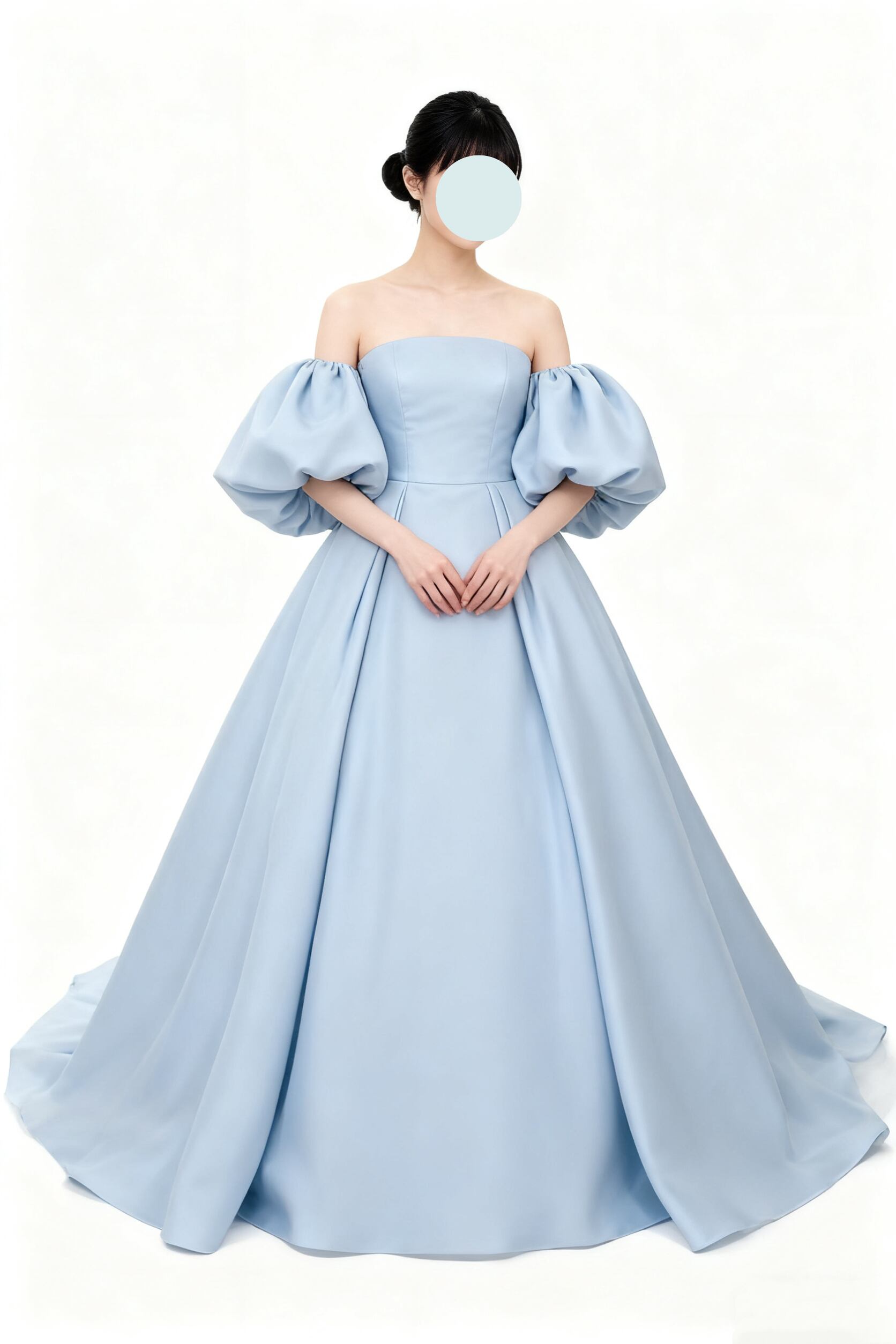 カラードレス ブルー パフスリーブドレス スレンダーライン 前撮り ブライダル