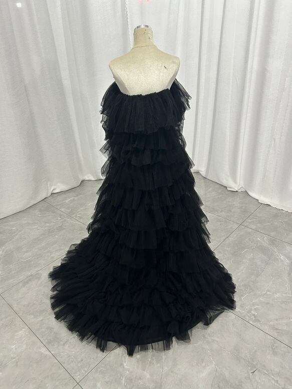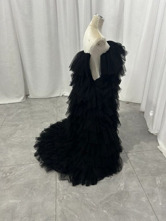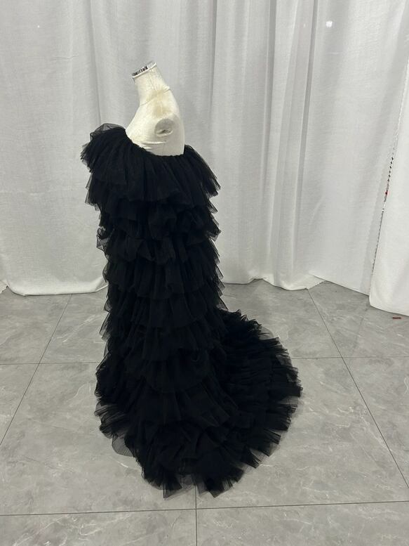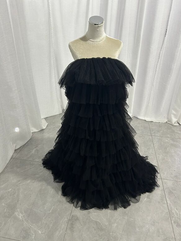 韓国風 黒 カラードレス ソフトチュール もこもこドレス サッシュベルト フレアスカート 花嫁