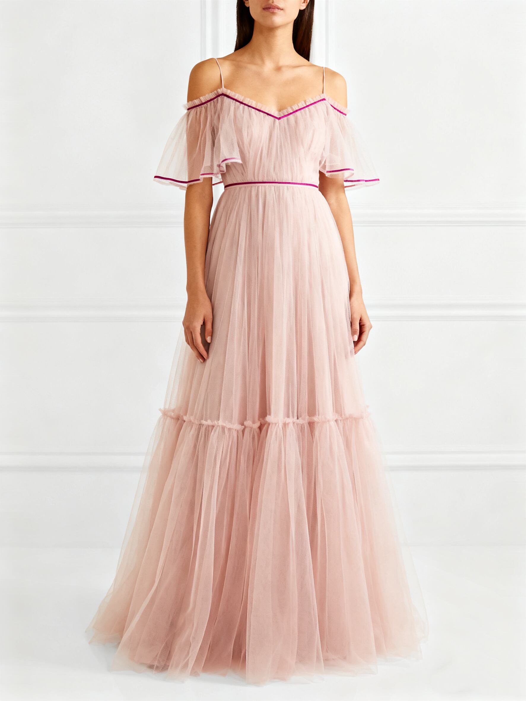 カラードレス キャミソール オフショルダー ピンク ロング スレンダーライン ブライズメイド 前撮り ピアノ演奏会