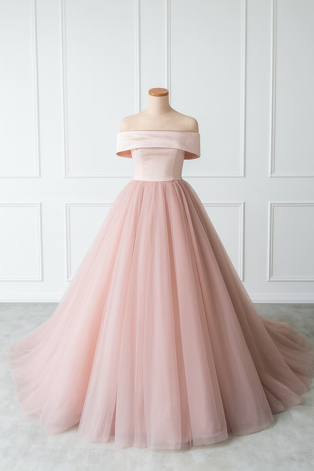 カラードレス オフショルダー ピンク フレアスカート プリンセスライン スレンダーライン 花嫁 ロングドレス