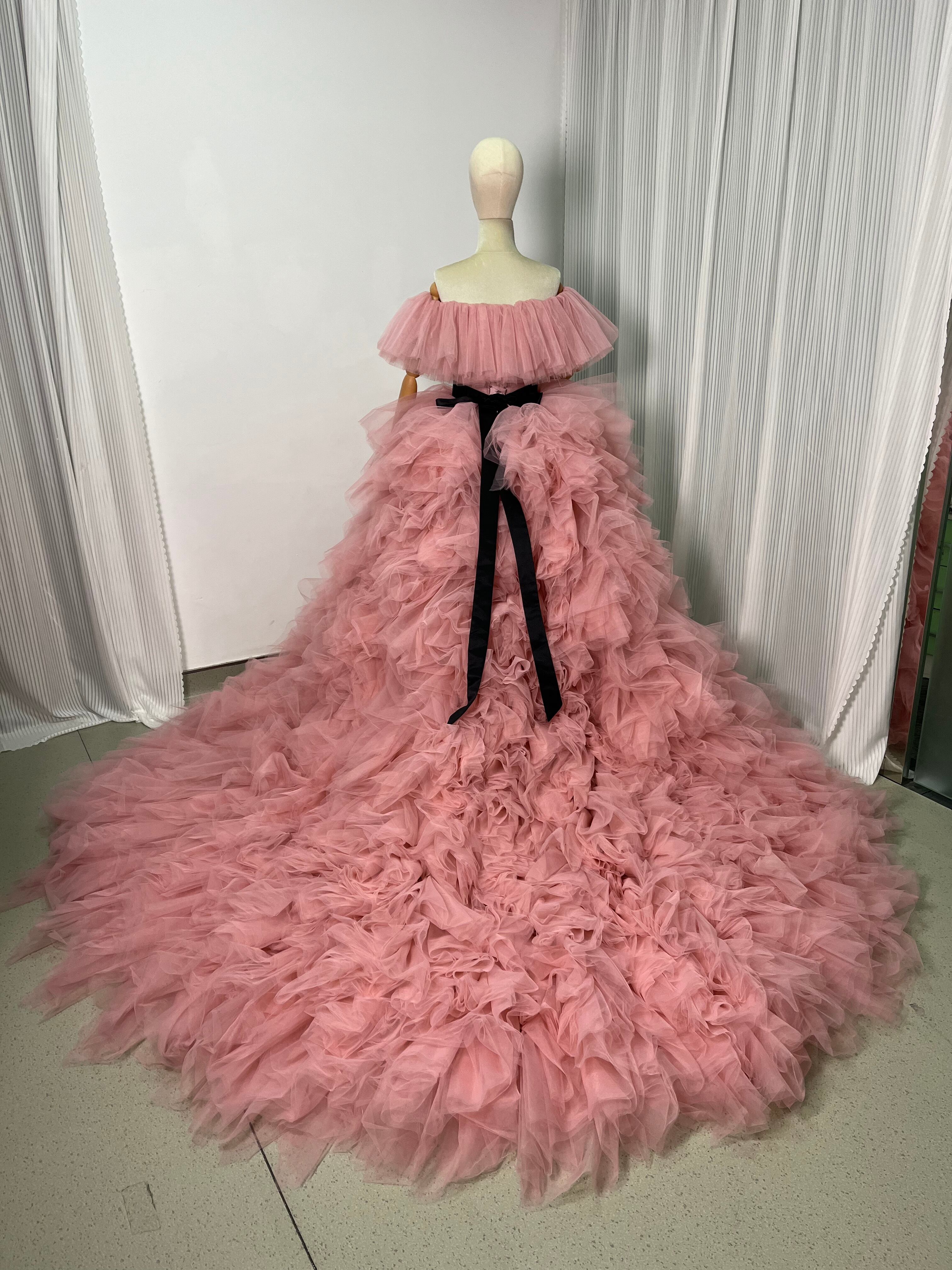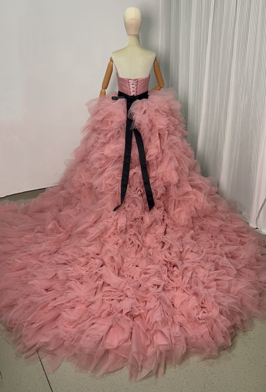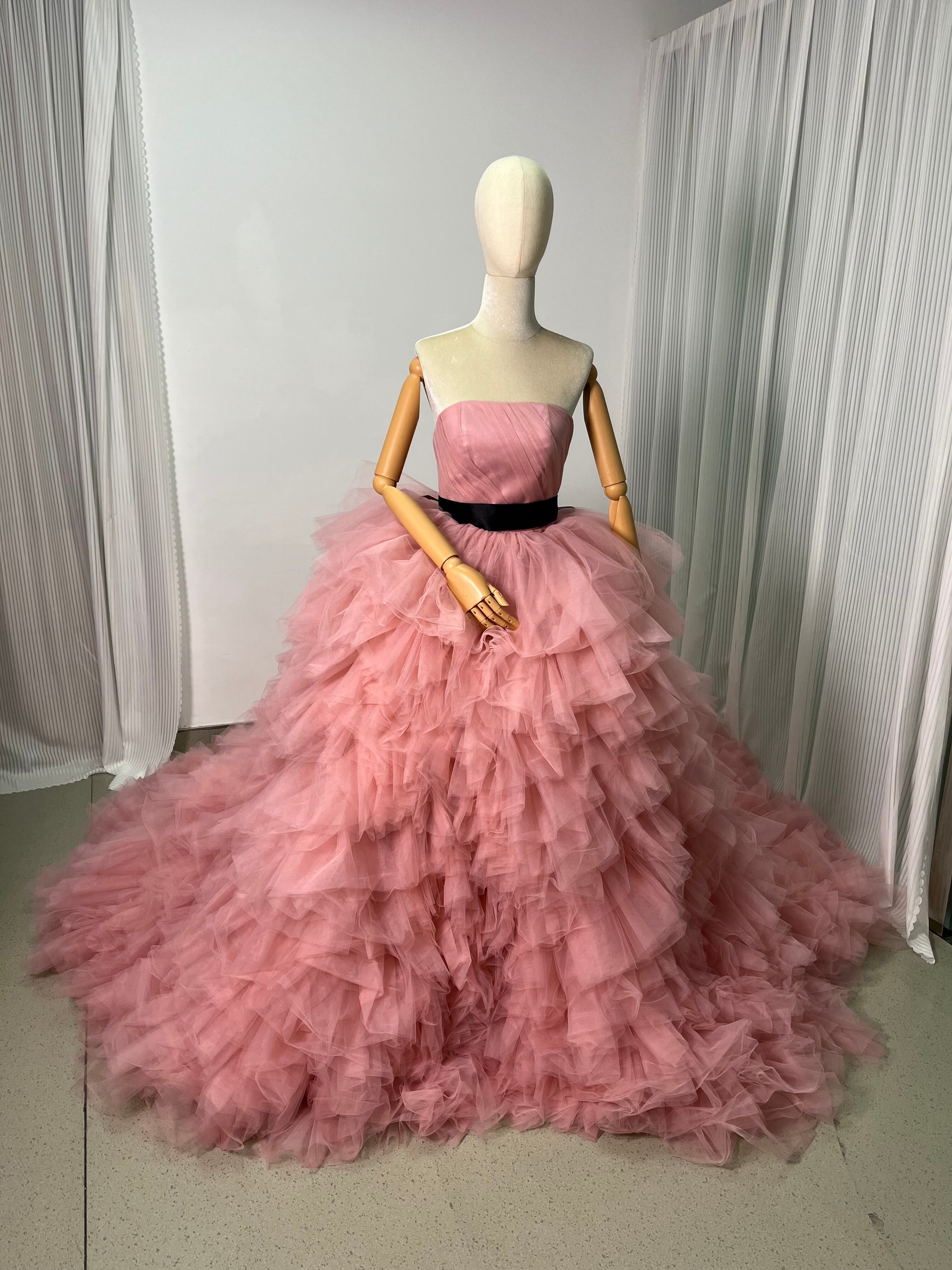 カラードレス ピンクソフィア 取り外しオフショルダー ふわふわドレス 抜群のおしゃれ見え 目立つ 前撮り 花嫁