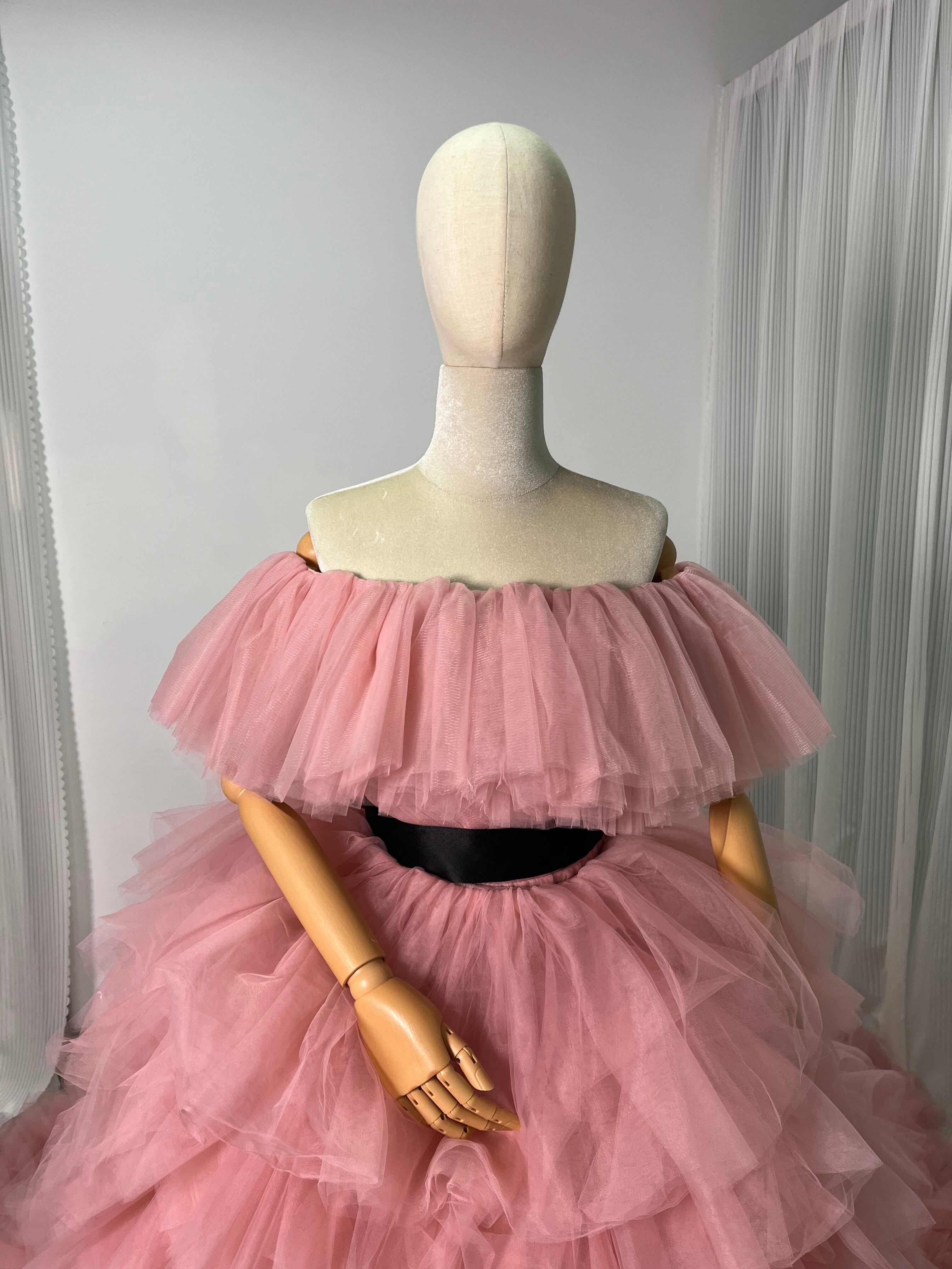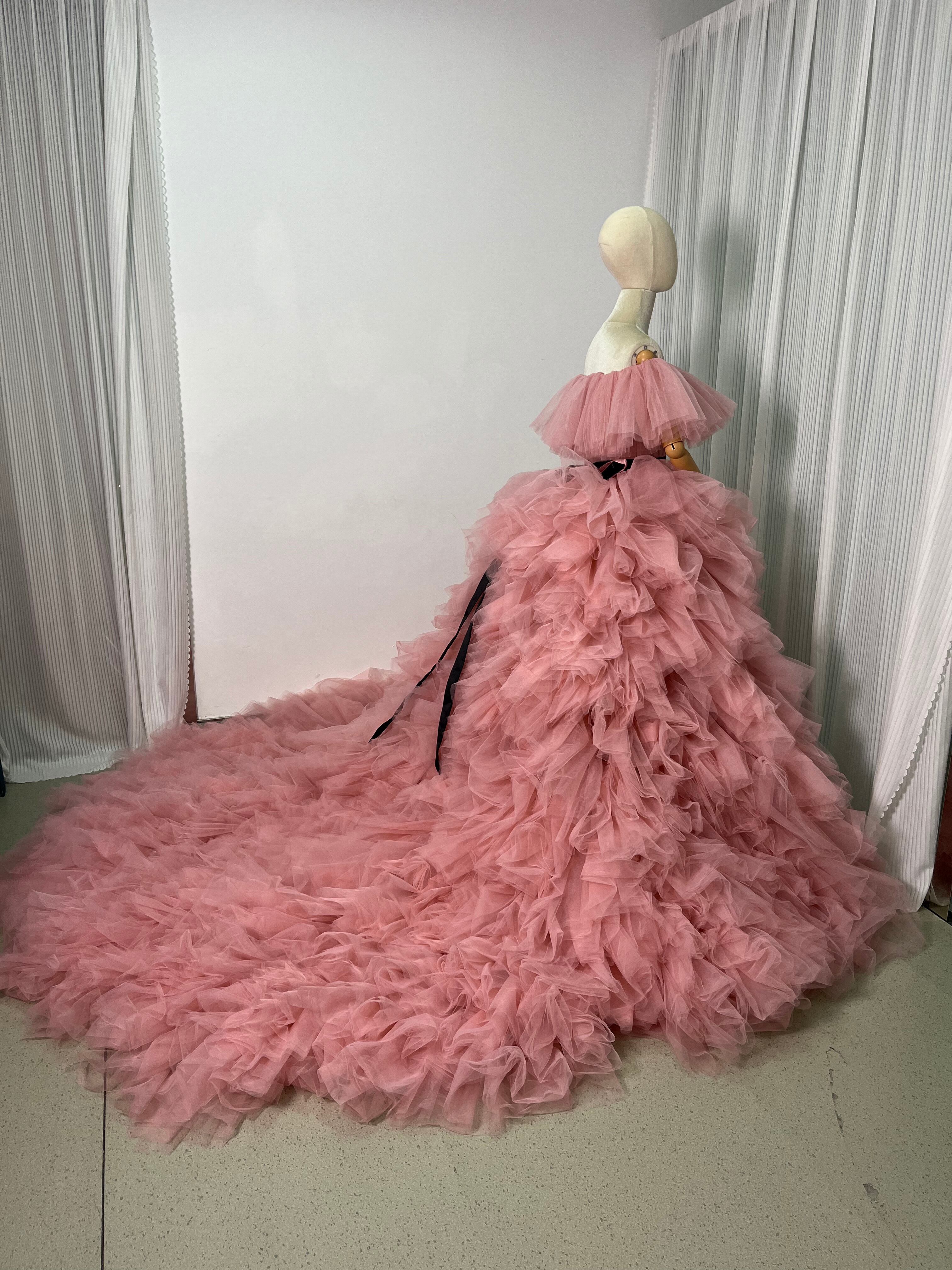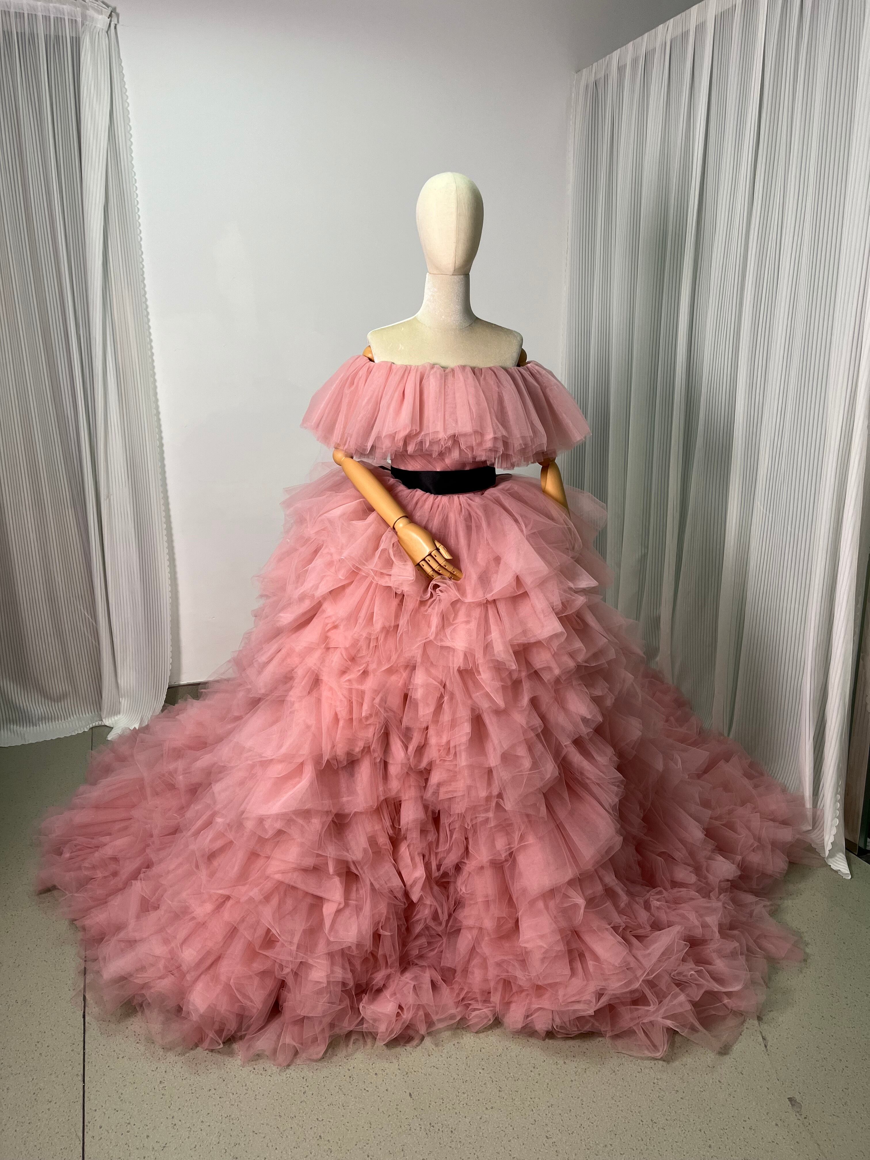 カラードレス ピンクソフィア 取り外しオフショルダー ふわふわドレス 抜群のおしゃれ見え 目立つ 前撮り 花嫁